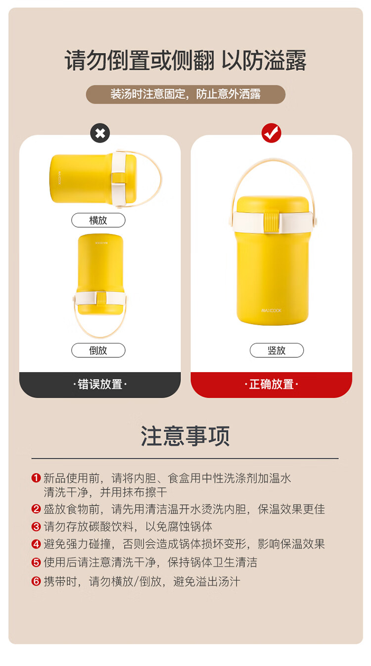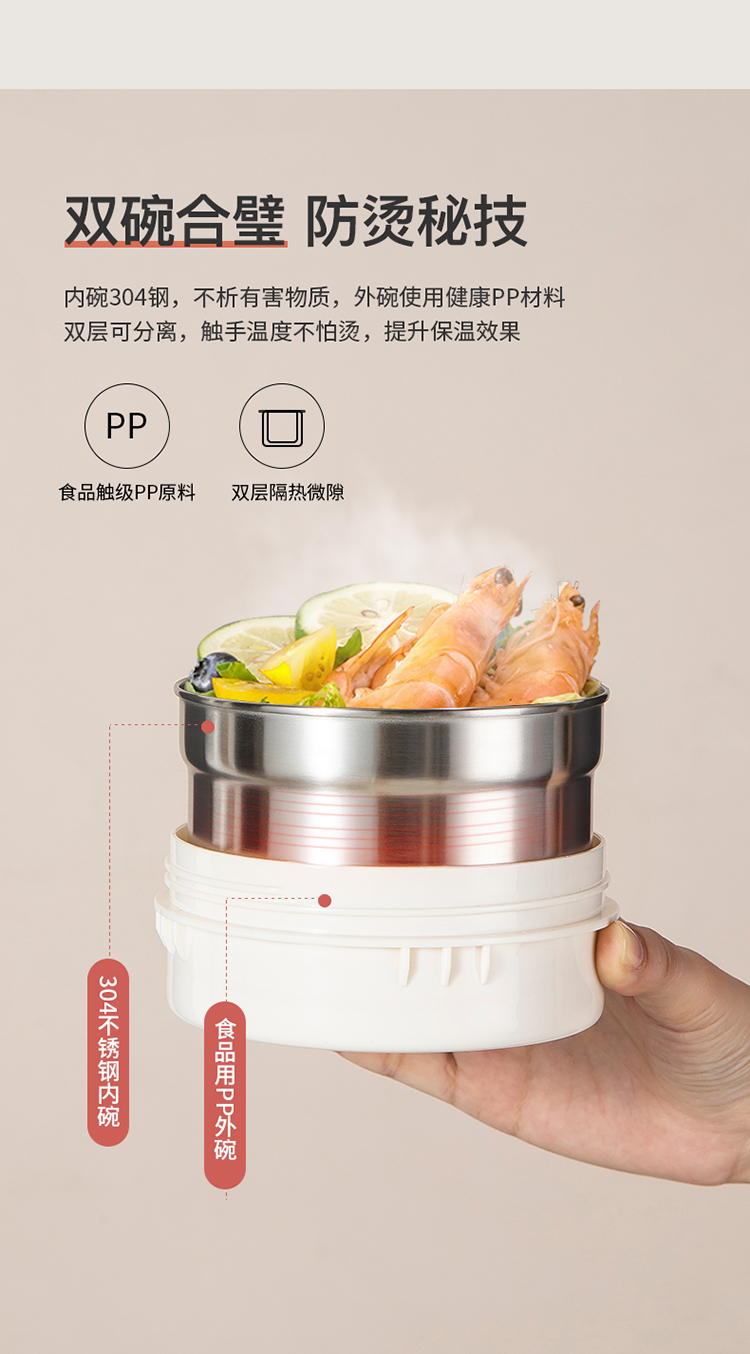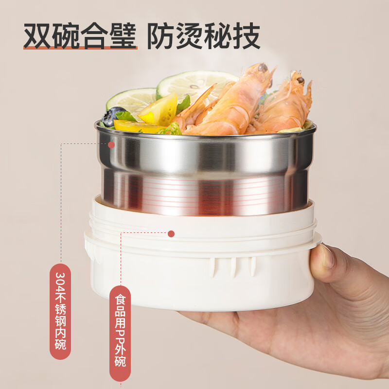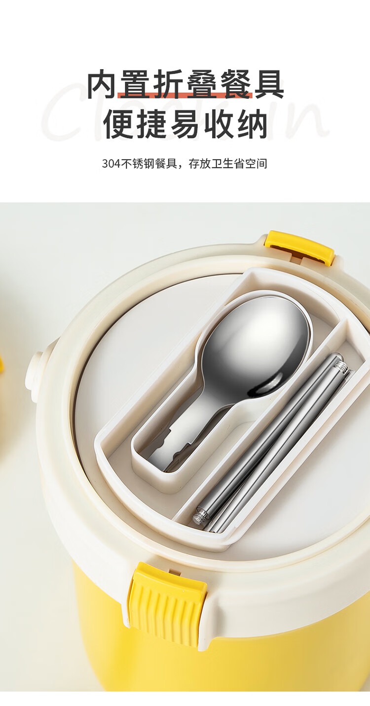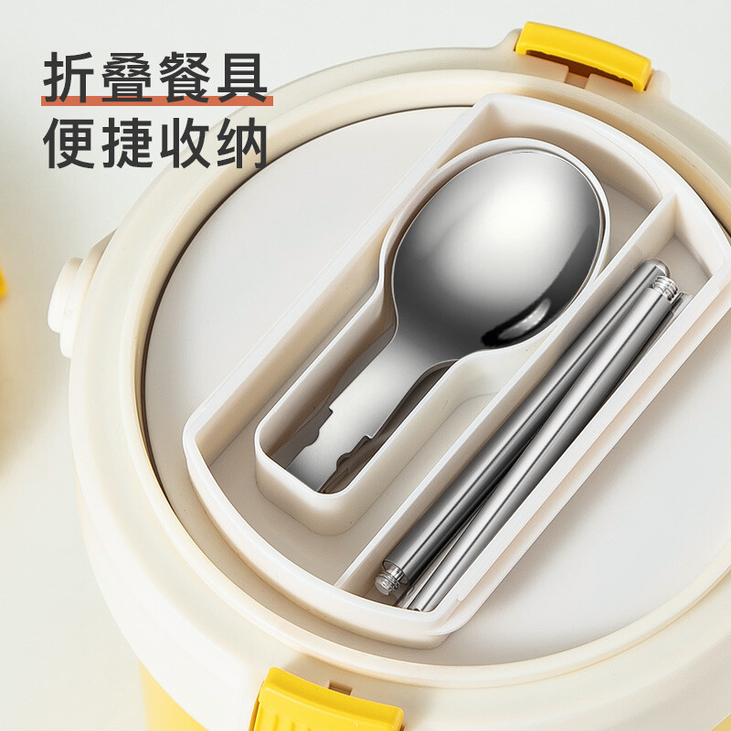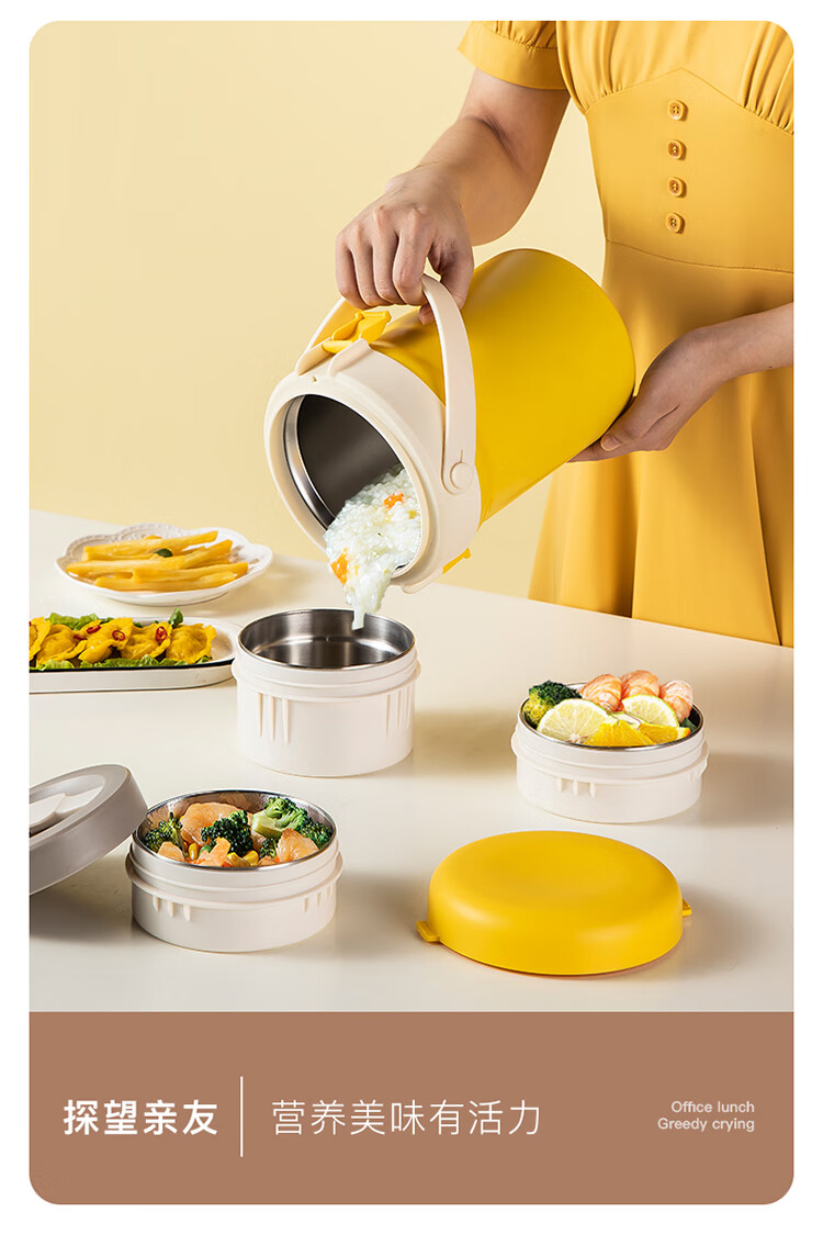 美厨(MAXCOOK)保温饭盒提锅 304不锈钢真空保温桶 多层分格成人学生便当盒保温汤桶餐盒 【珍珠白1.6L】配餐具 MCTG0942 自营