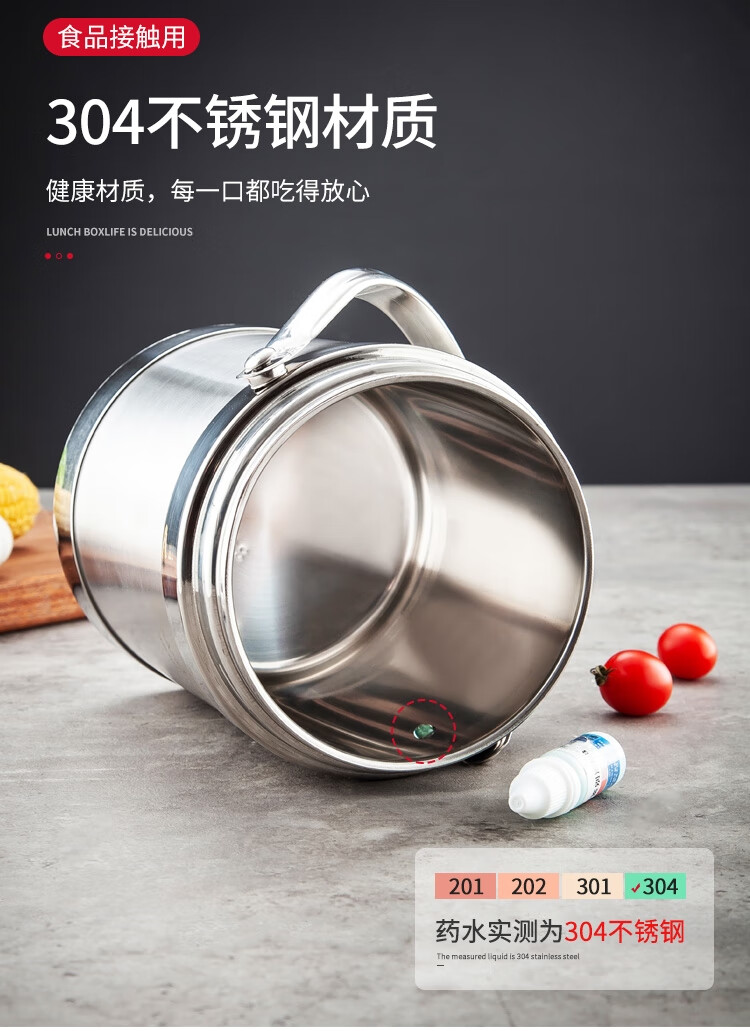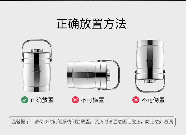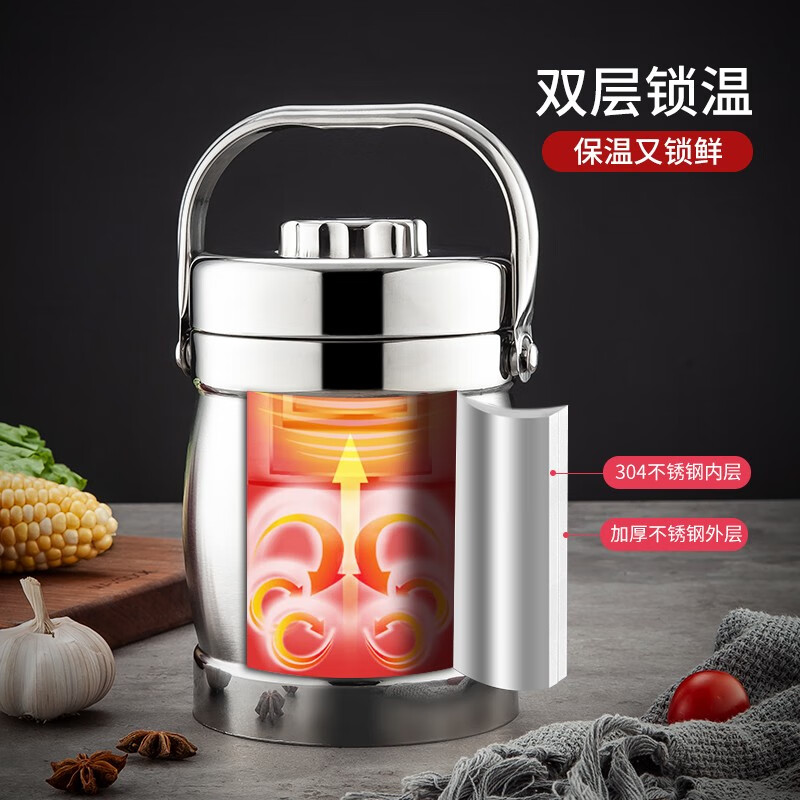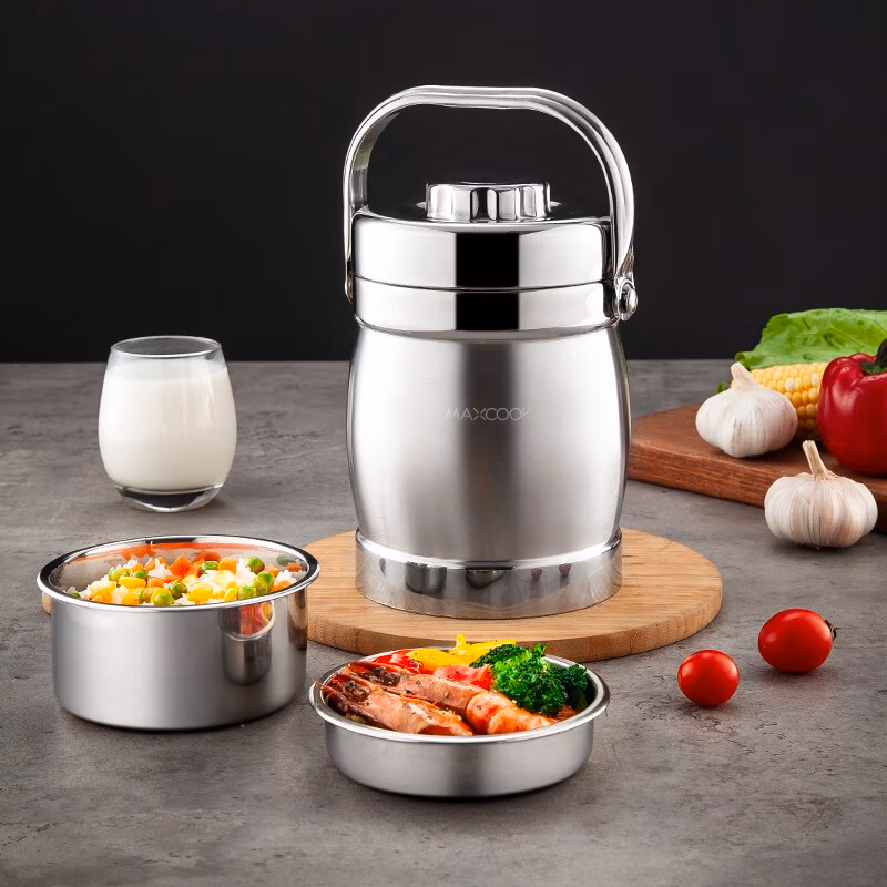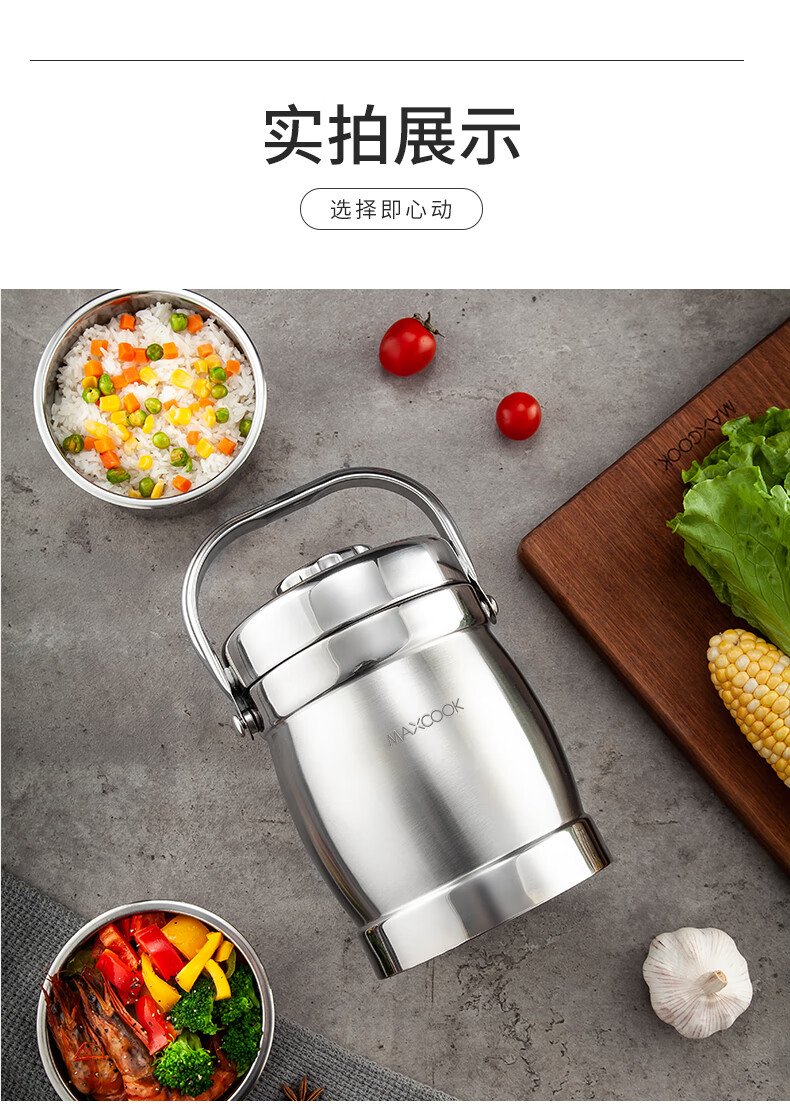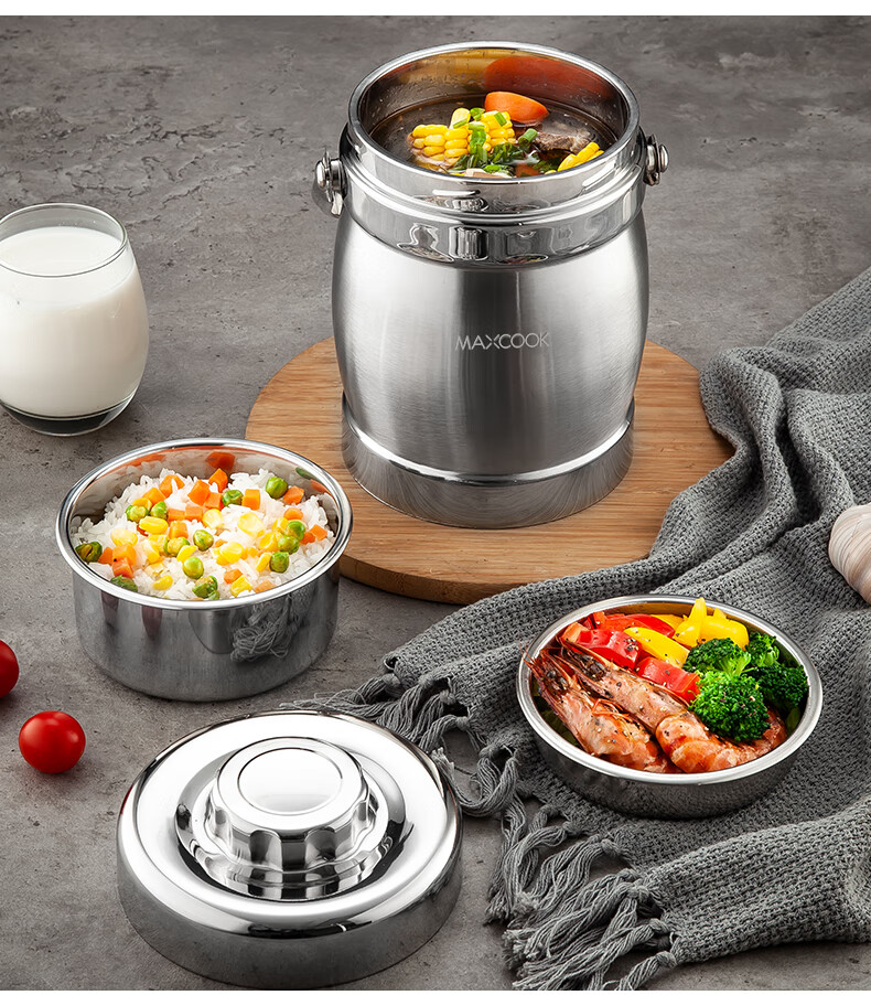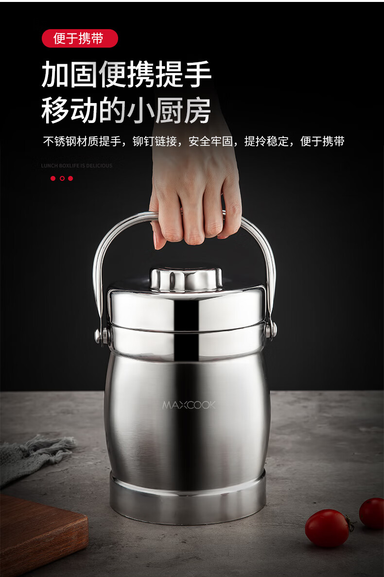 美厨(maxcook)304不锈钢保温提锅饭盒 1.5L 双层鼓形 MCST-1.5 自营