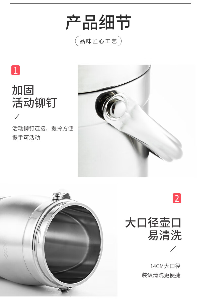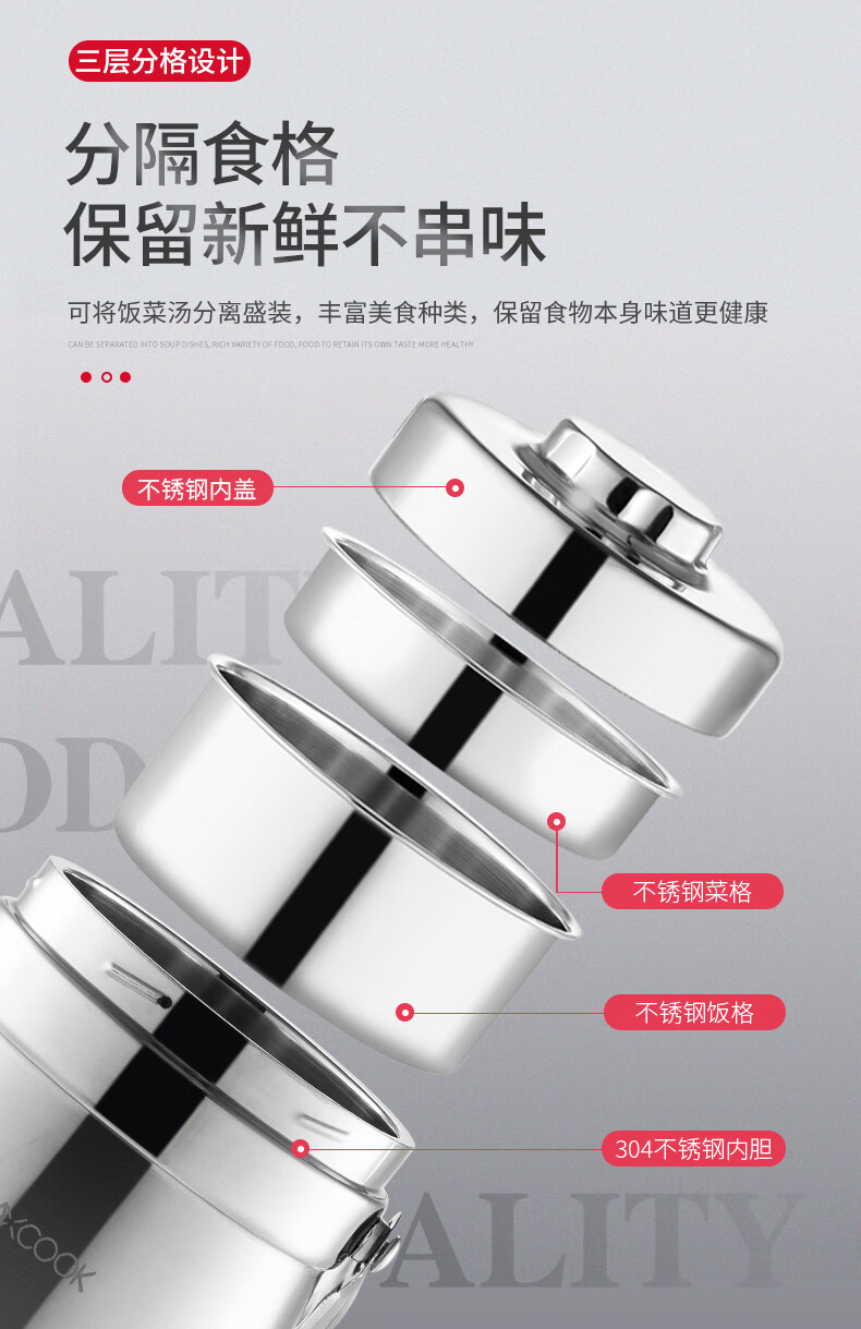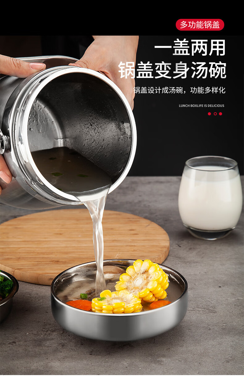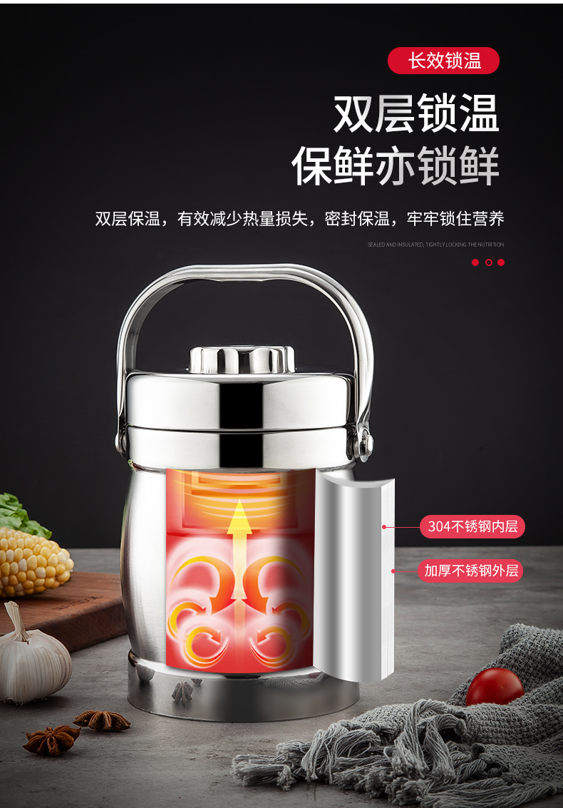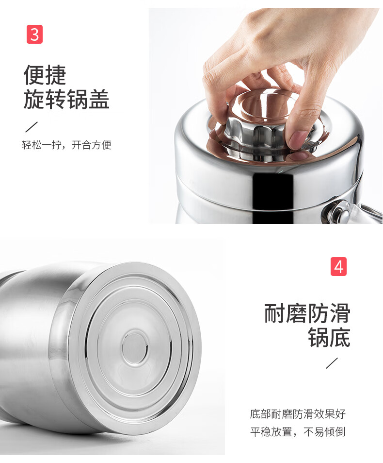 美厨(maxcook)304不锈钢保温提锅饭盒 1.5L 双层鼓形 MCST-1.5 自营