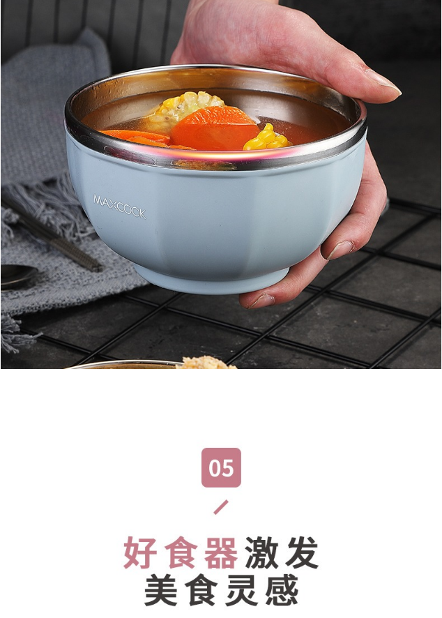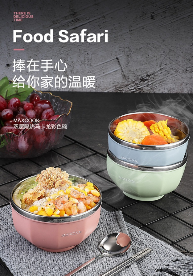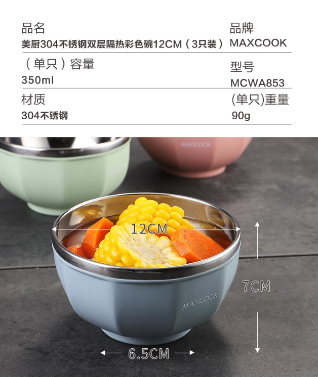 美厨(MAXCOOK)304不锈钢汤碗饭碗面碗 双层隔热 3只装用彩色碗12CM 12CM MCWA853 自营