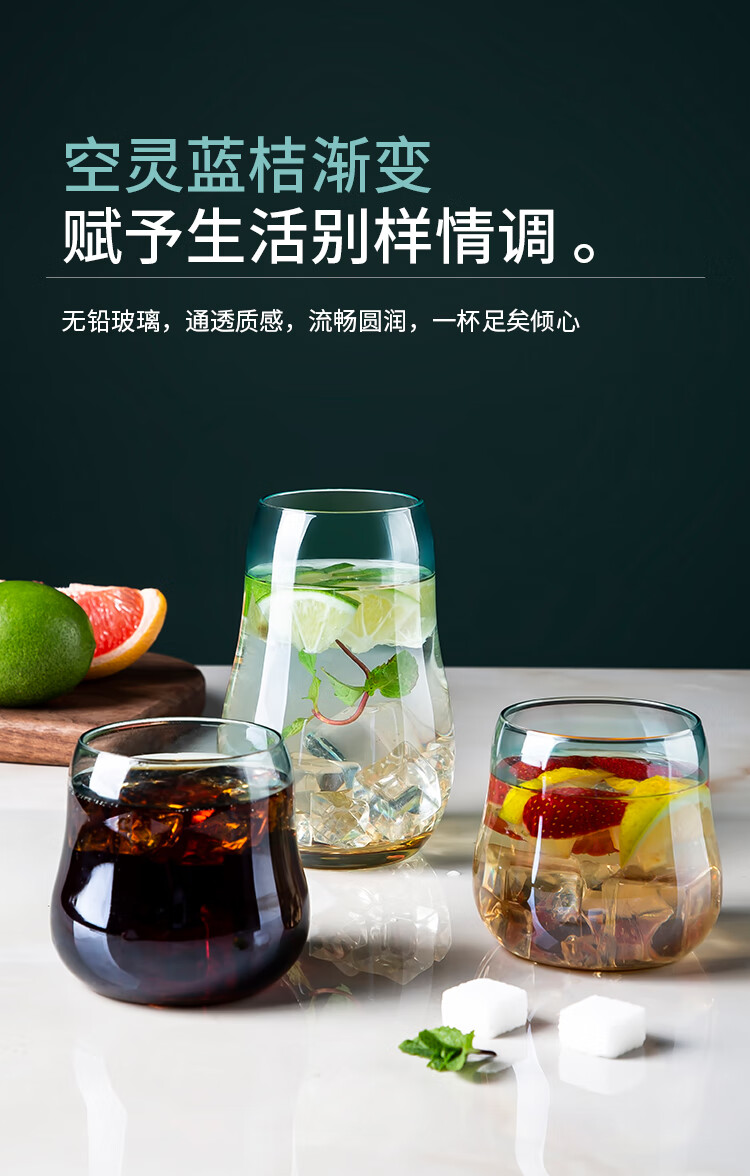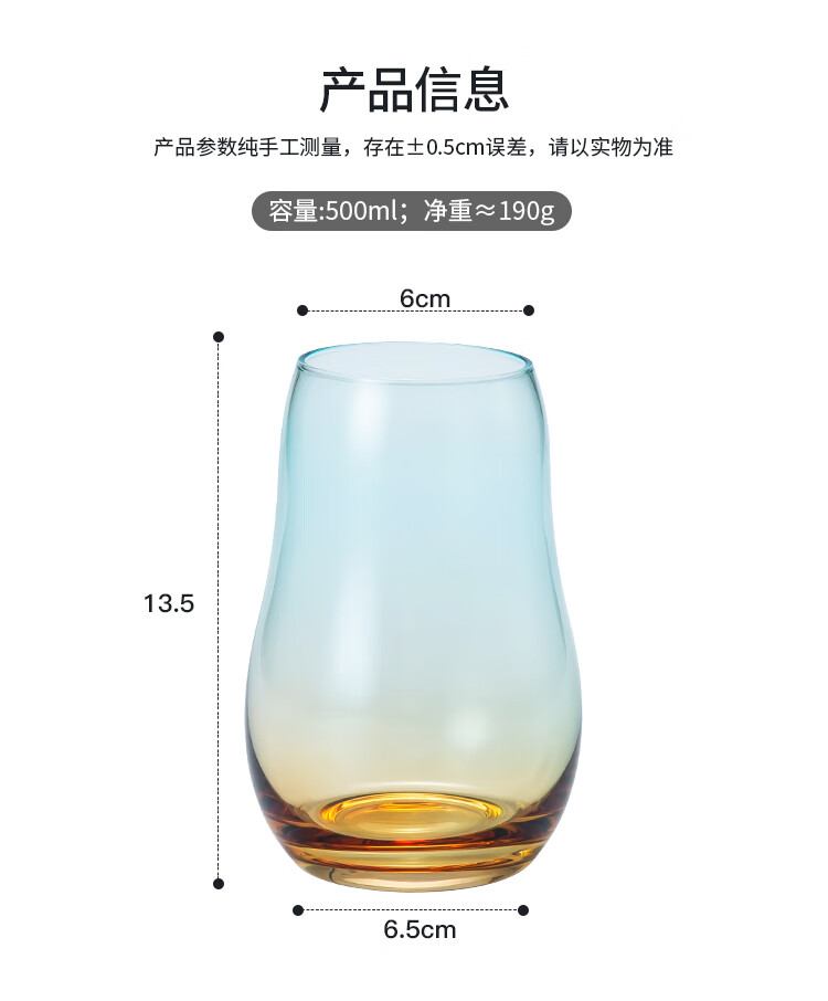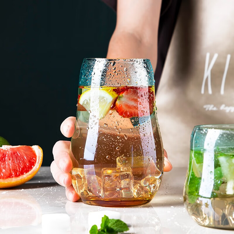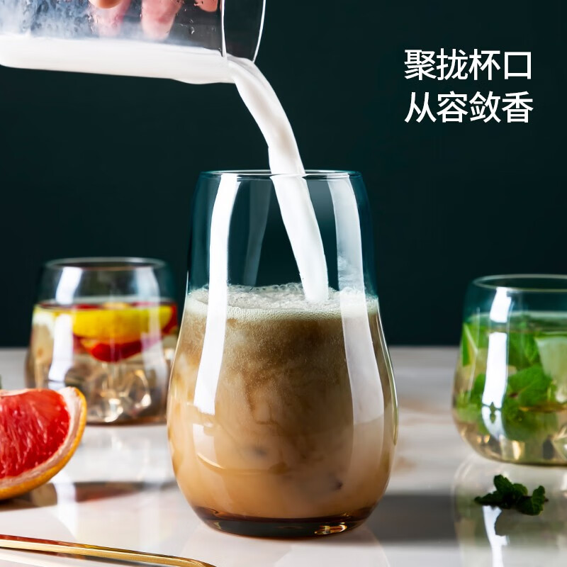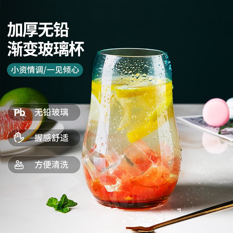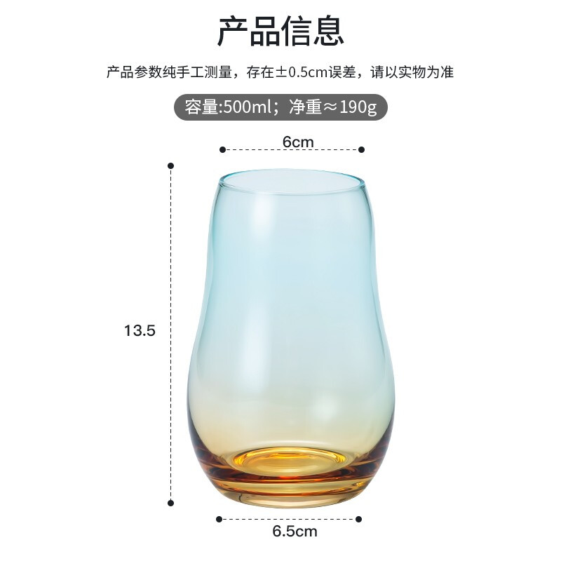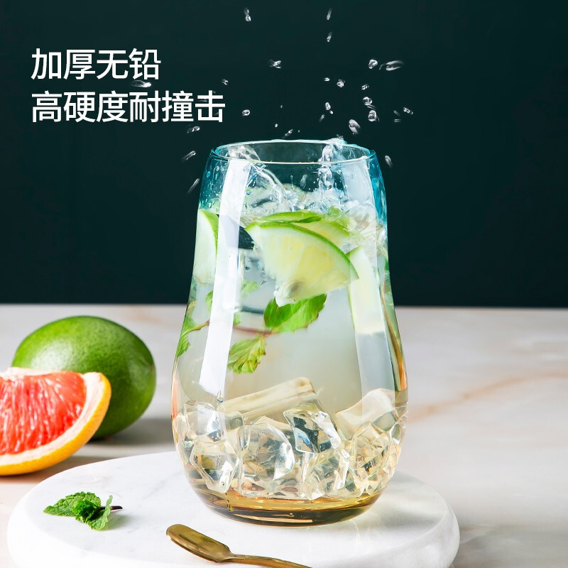 美厨(maxcook)玻璃水杯 家用水杯茶杯牛奶杯 果汁杯早餐杯酒杯 500ml蓝橘 MCB9182 自营