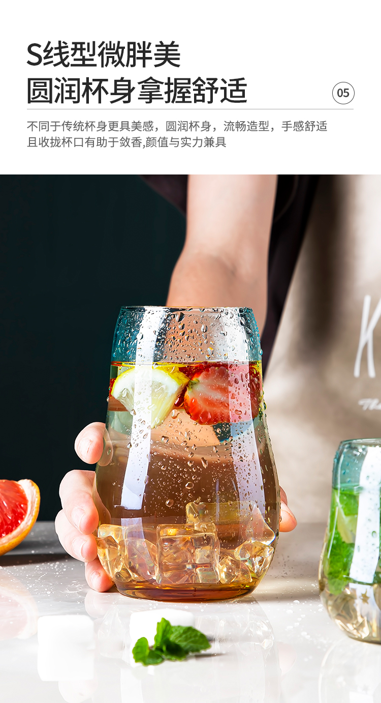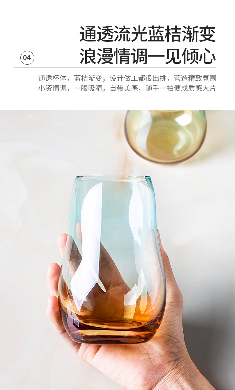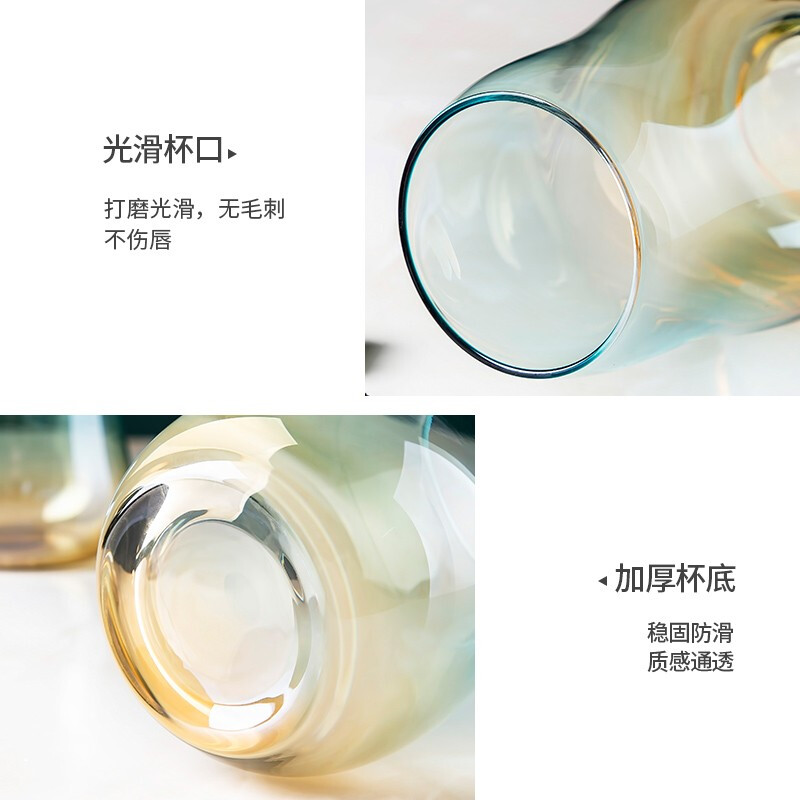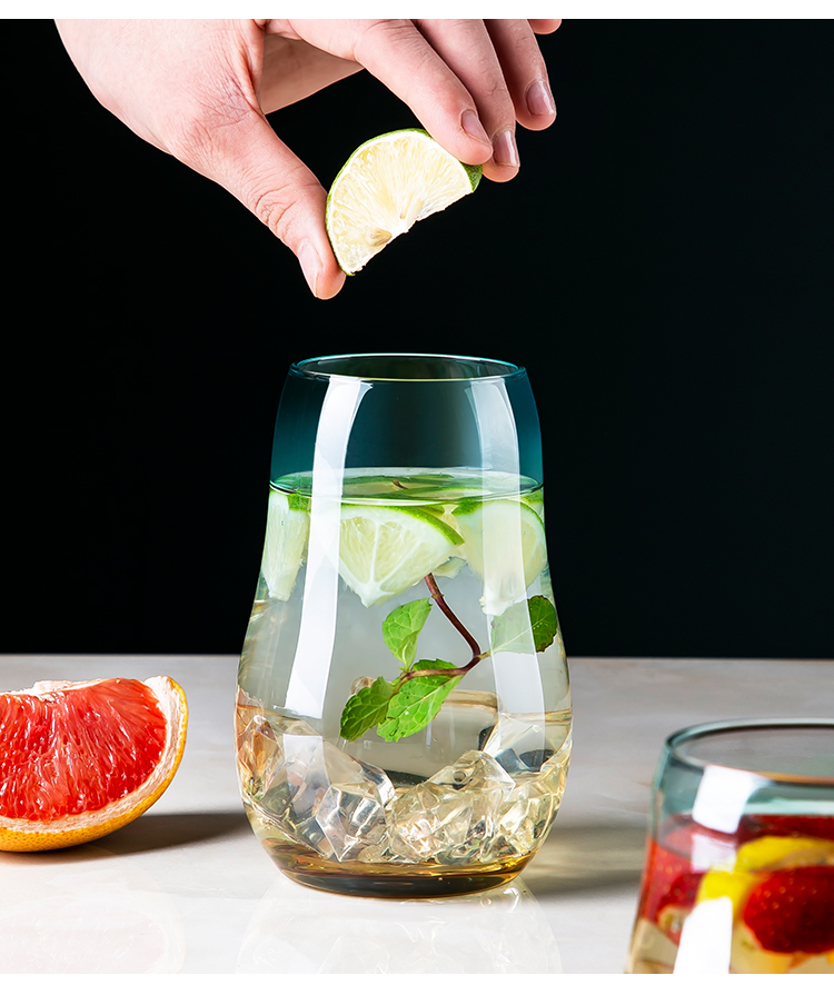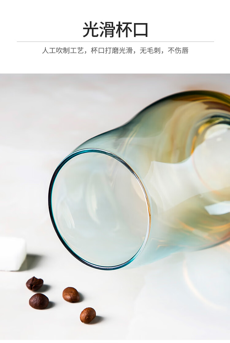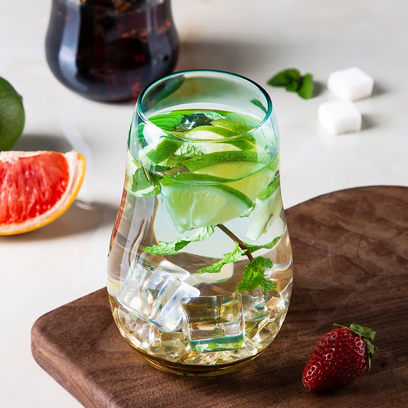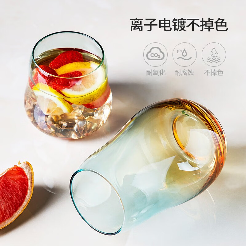 美厨(maxcook)玻璃水杯 家用水杯茶杯牛奶杯 果汁杯早餐杯酒杯 500ml蓝橘 MCB9182 自营