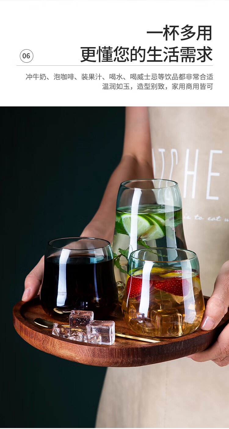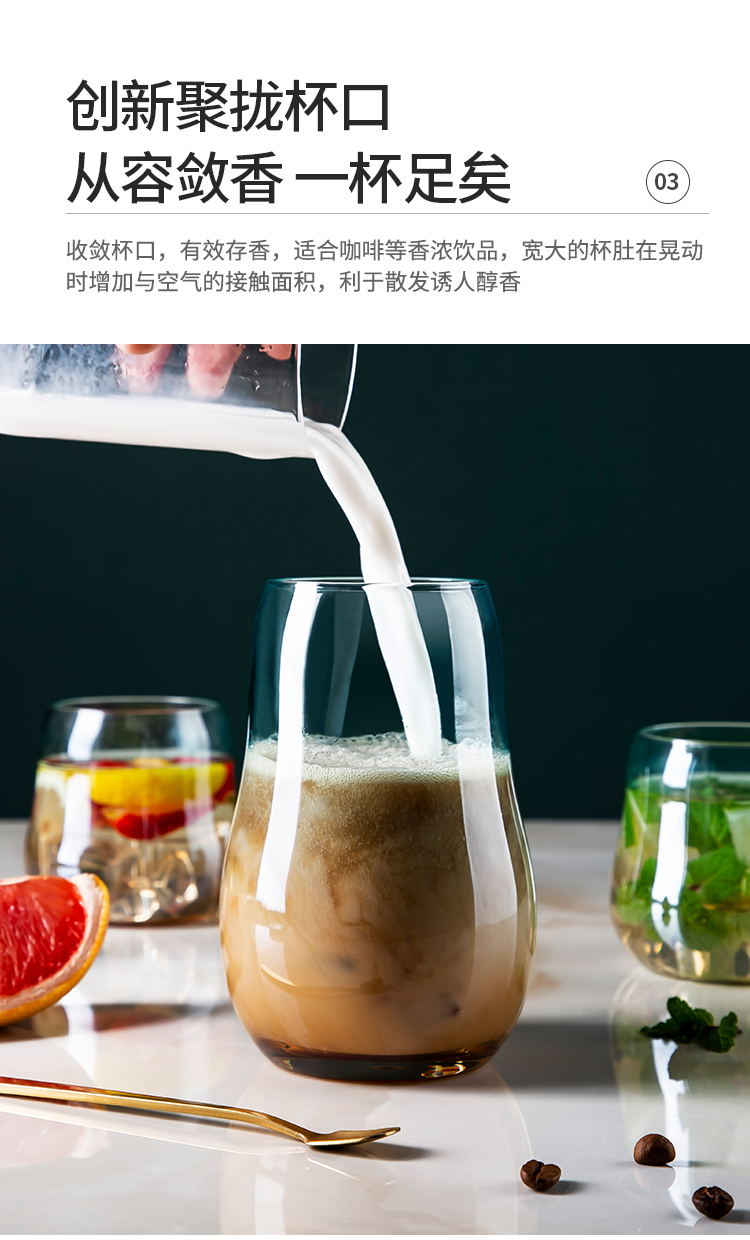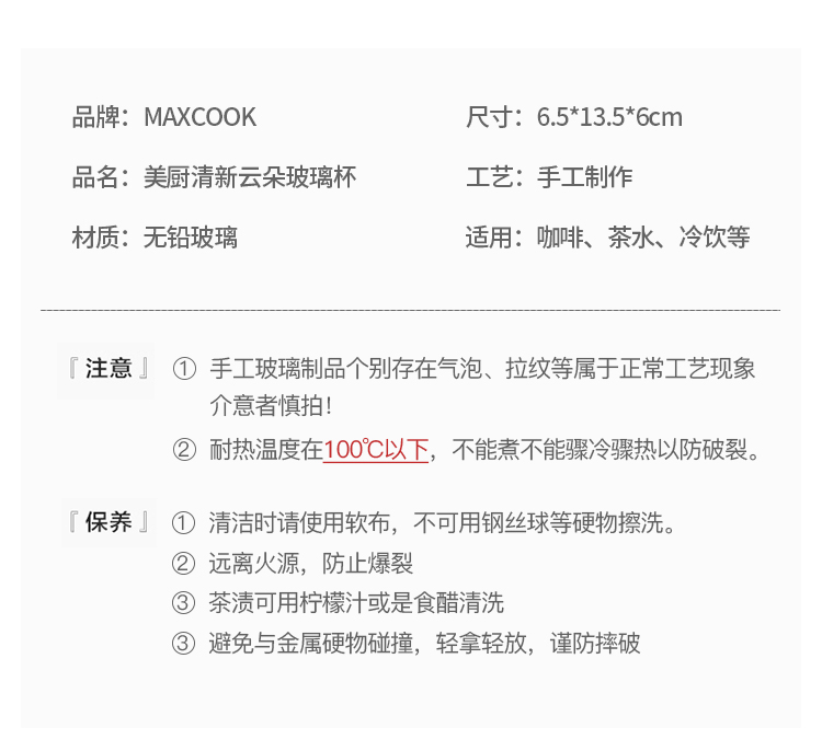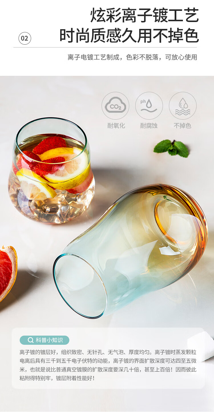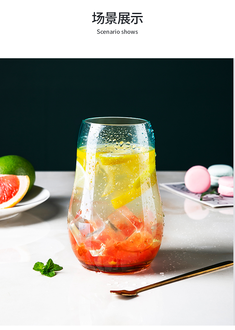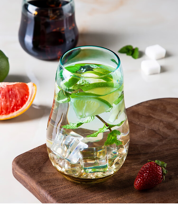 美厨(maxcook)玻璃水杯 家用水杯茶杯牛奶杯 果汁杯早餐杯酒杯 500ml蓝橘 MCB9182 自营