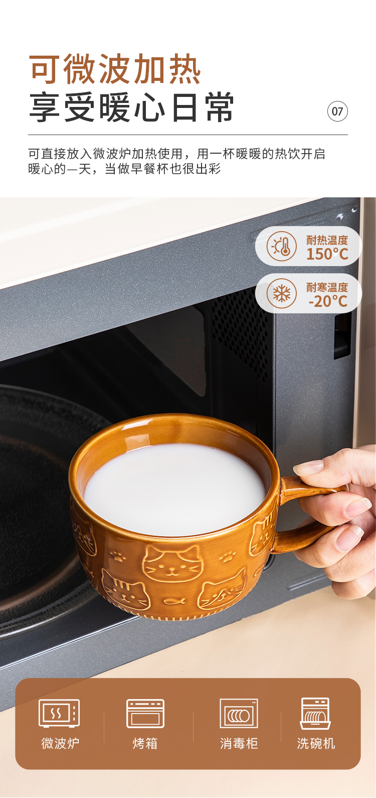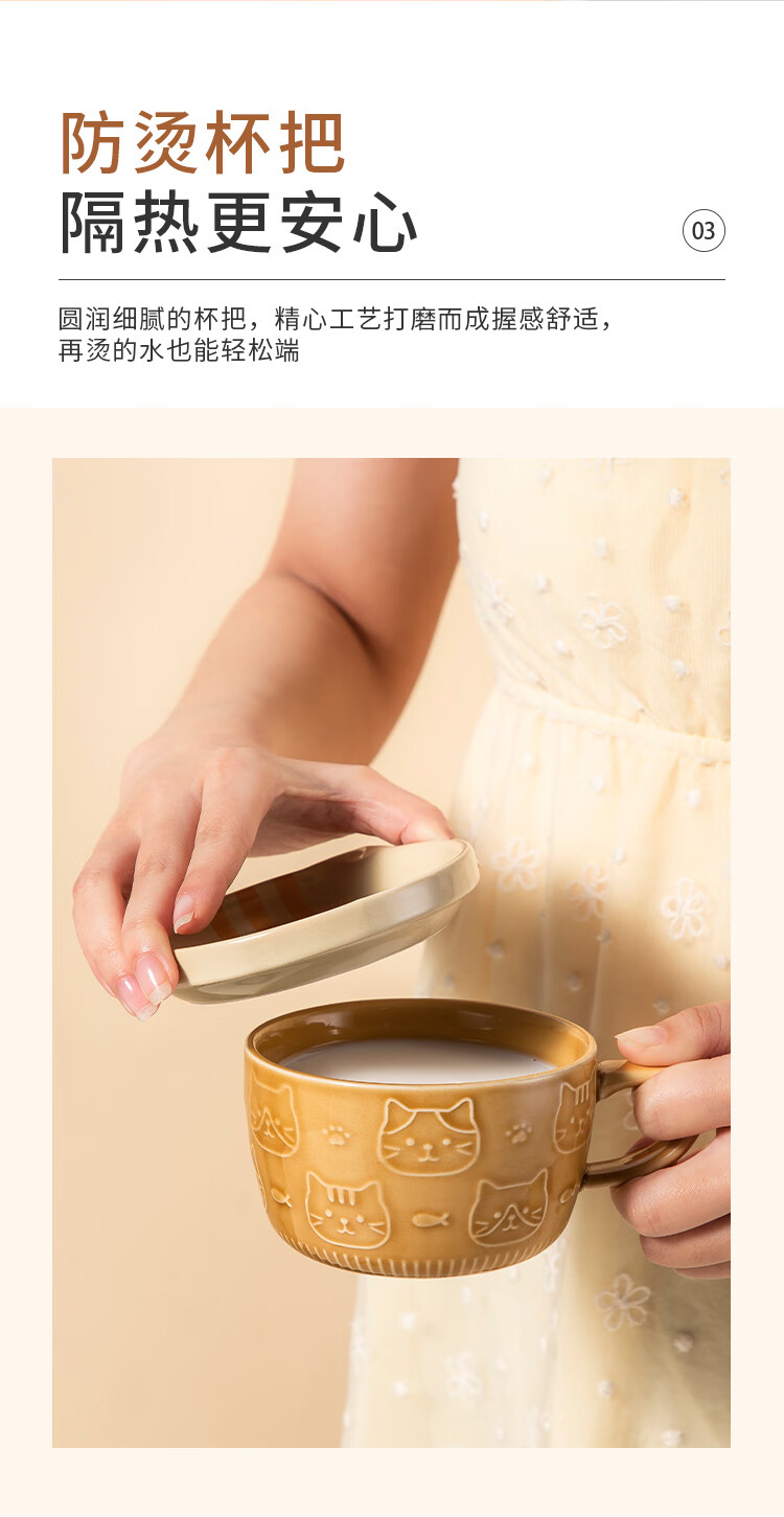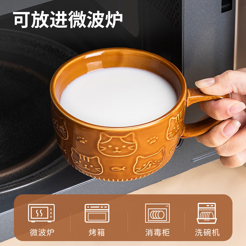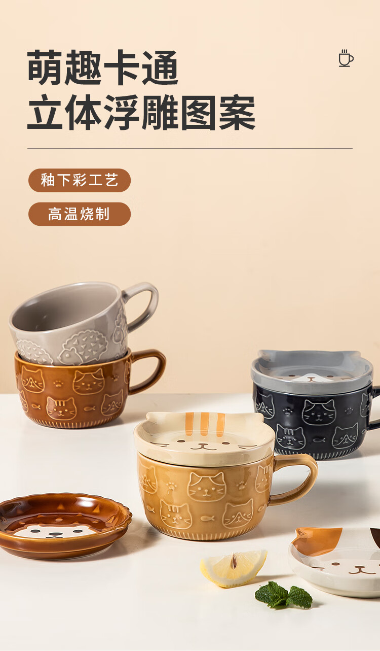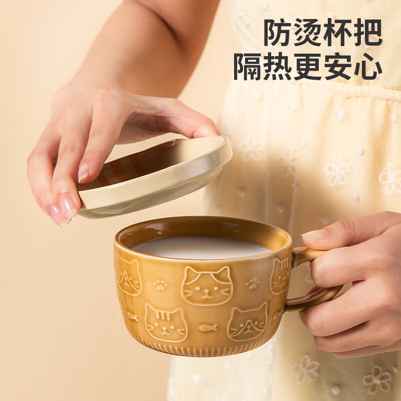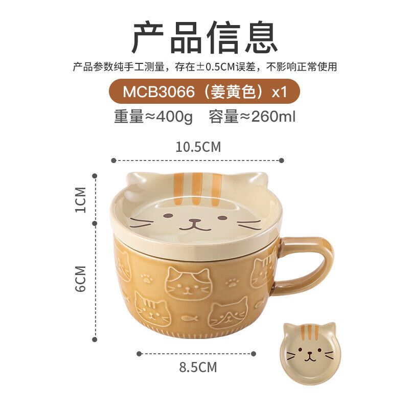 美厨(maxcook)陶瓷杯马克杯 水杯泡茶杯 咖啡杯早餐杯牛奶杯 浮雕猫猫头 姜黄色MCB3066 自营
