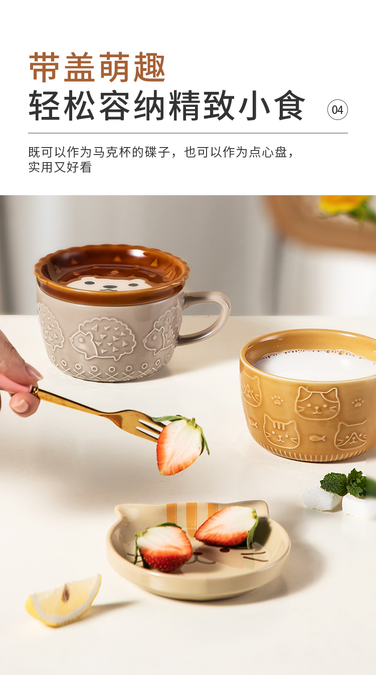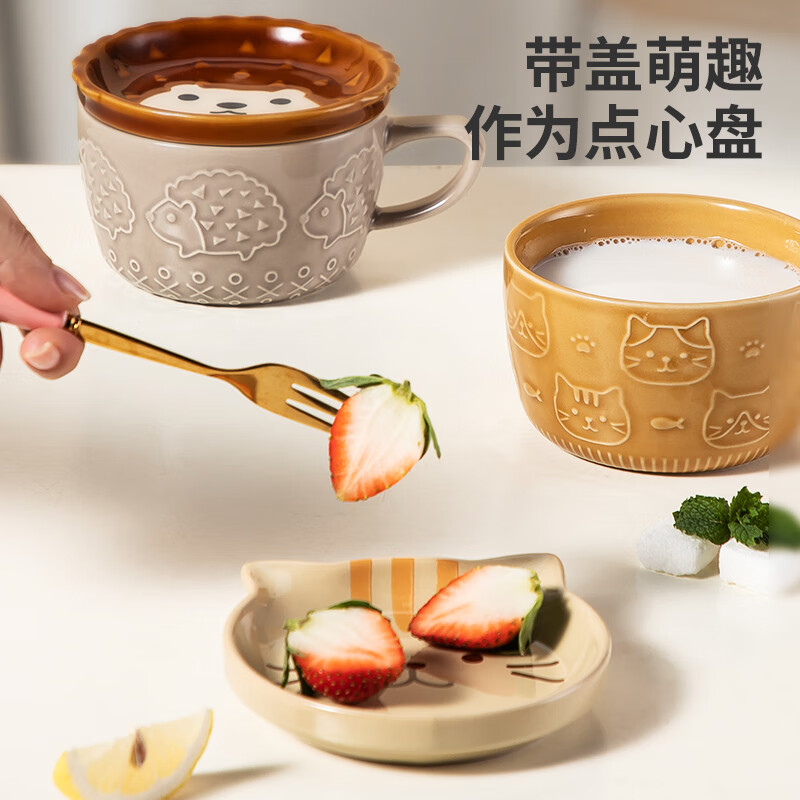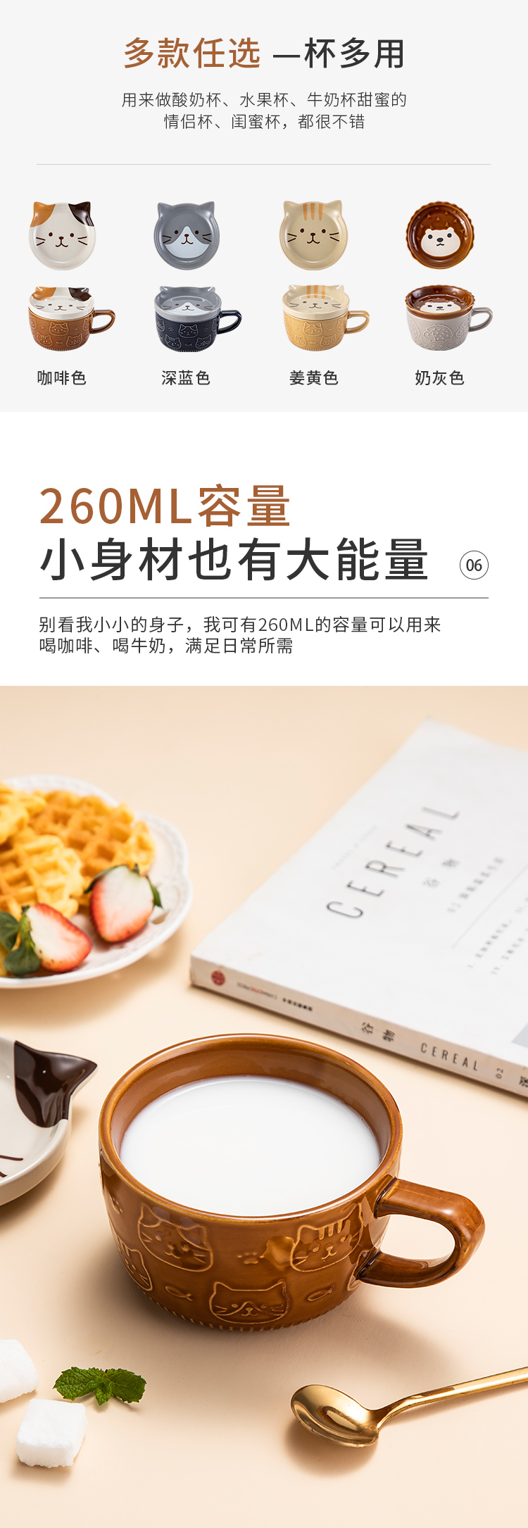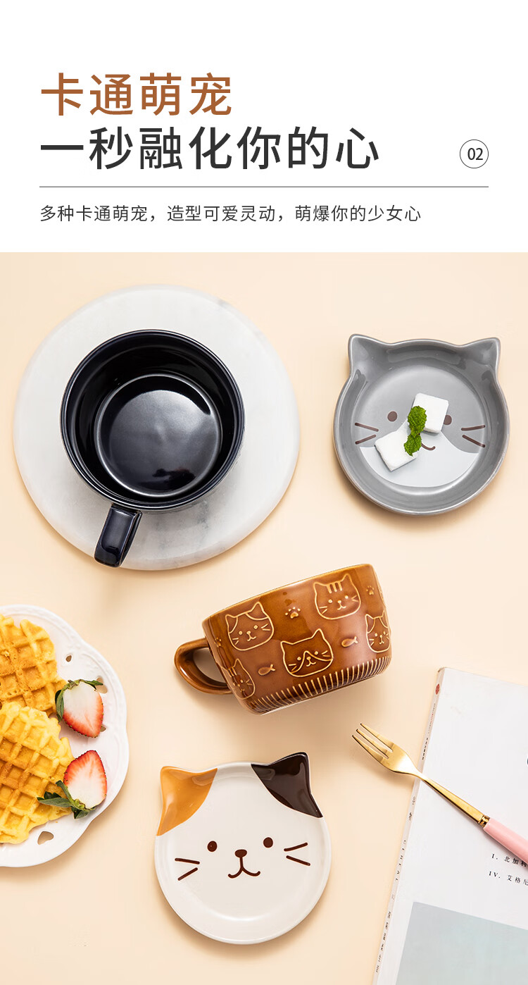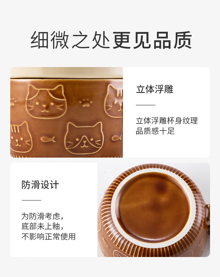 美厨(maxcook)陶瓷杯马克杯 水杯泡茶杯 咖啡杯早餐杯牛奶杯 浮雕猫猫头 姜黄色MCB3066 自营