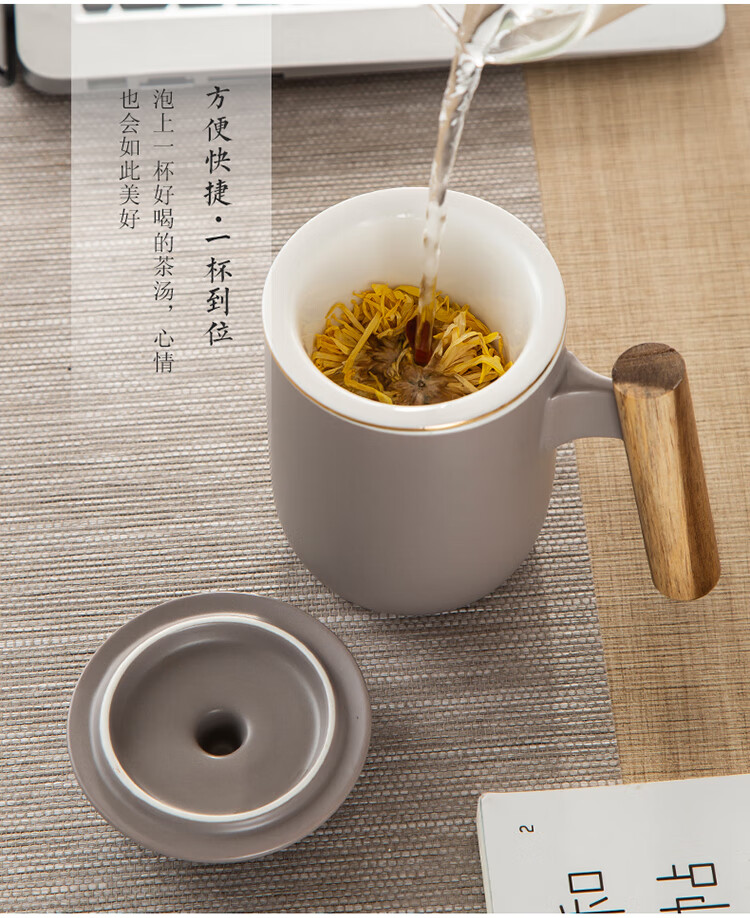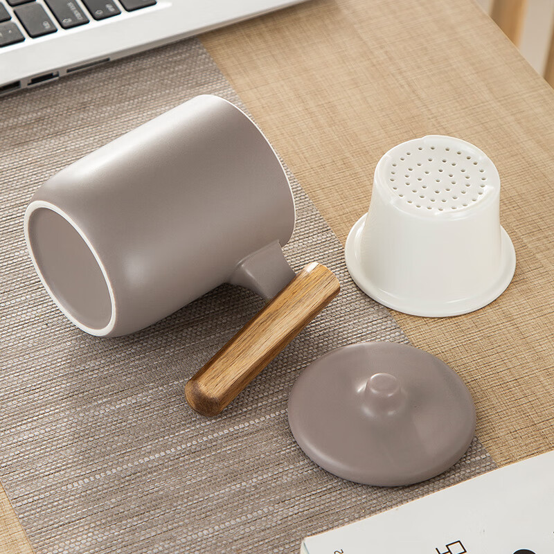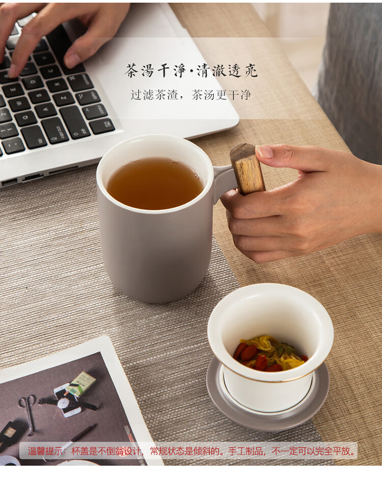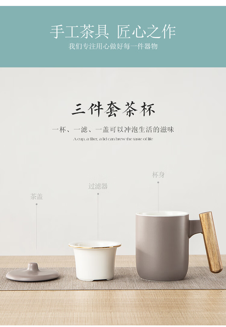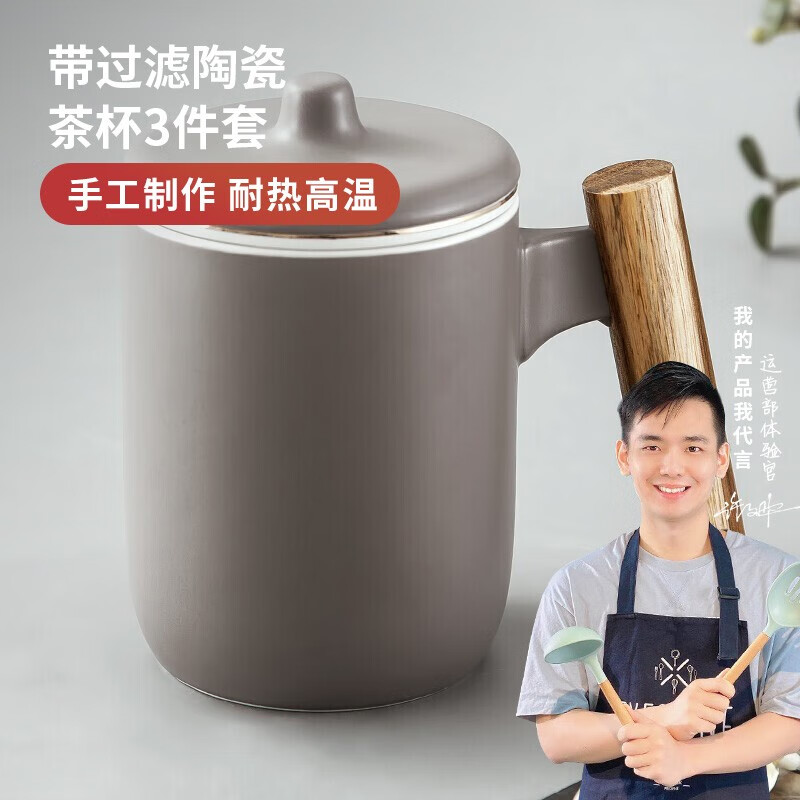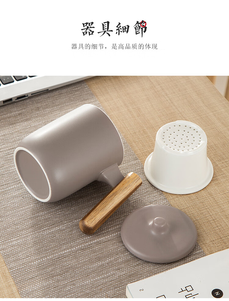 美厨(maxcook)带茶漏茶杯 陶瓷三件杯 马克杯水杯泡茶杯 咖啡杯早餐杯带滤隔 380ml哑光灰MCTC123 自营