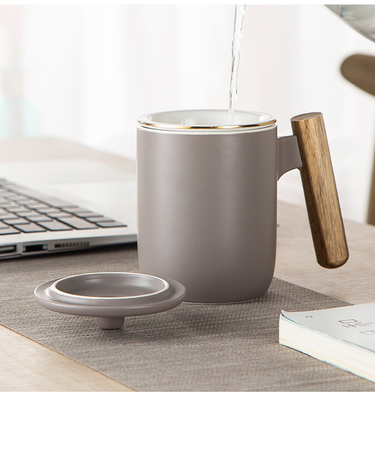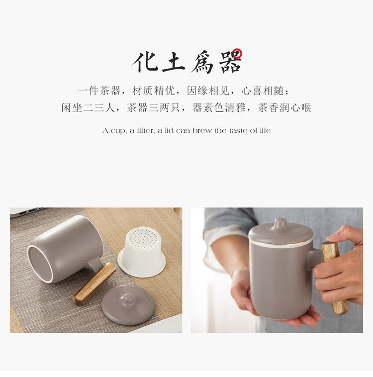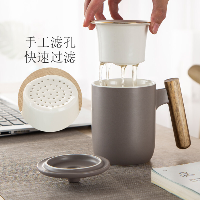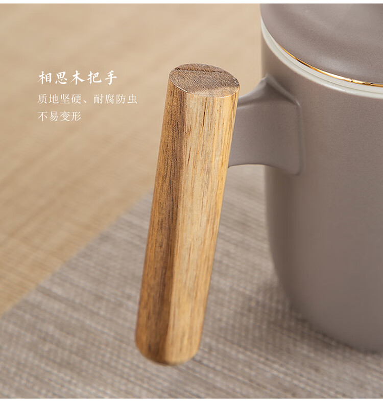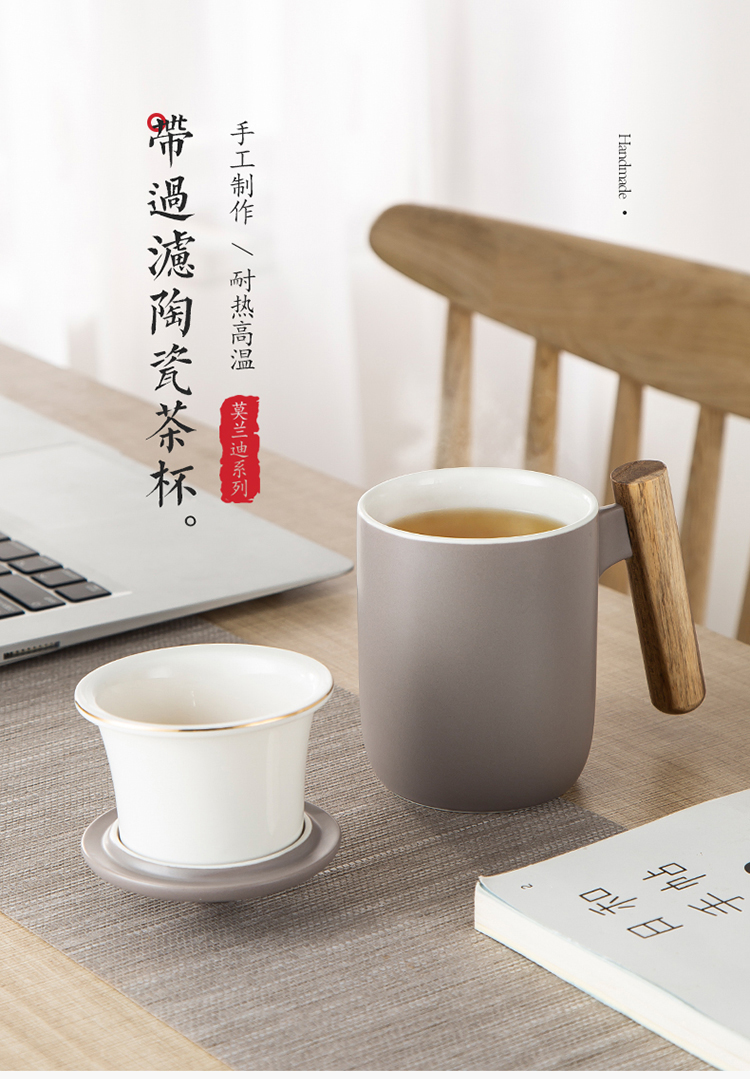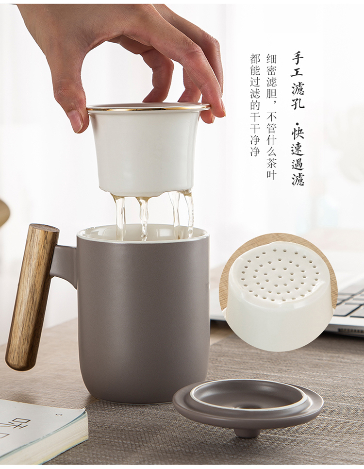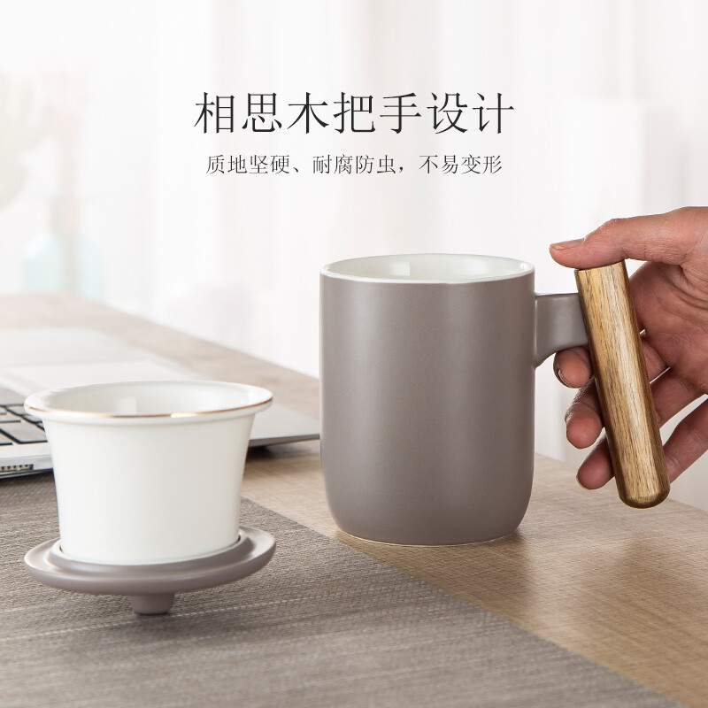 美厨(maxcook)带茶漏茶杯 陶瓷三件杯 马克杯水杯泡茶杯 咖啡杯早餐杯带滤隔 380ml哑光灰MCTC123 自营