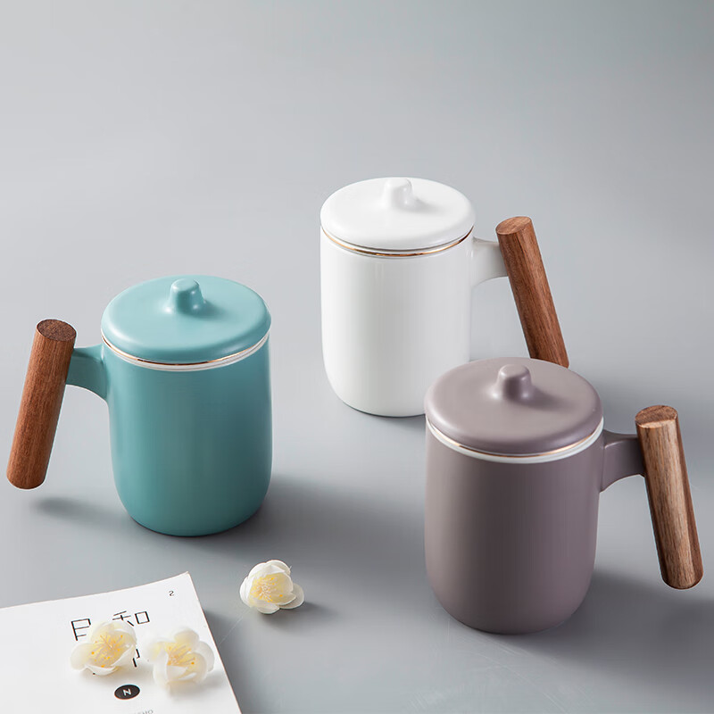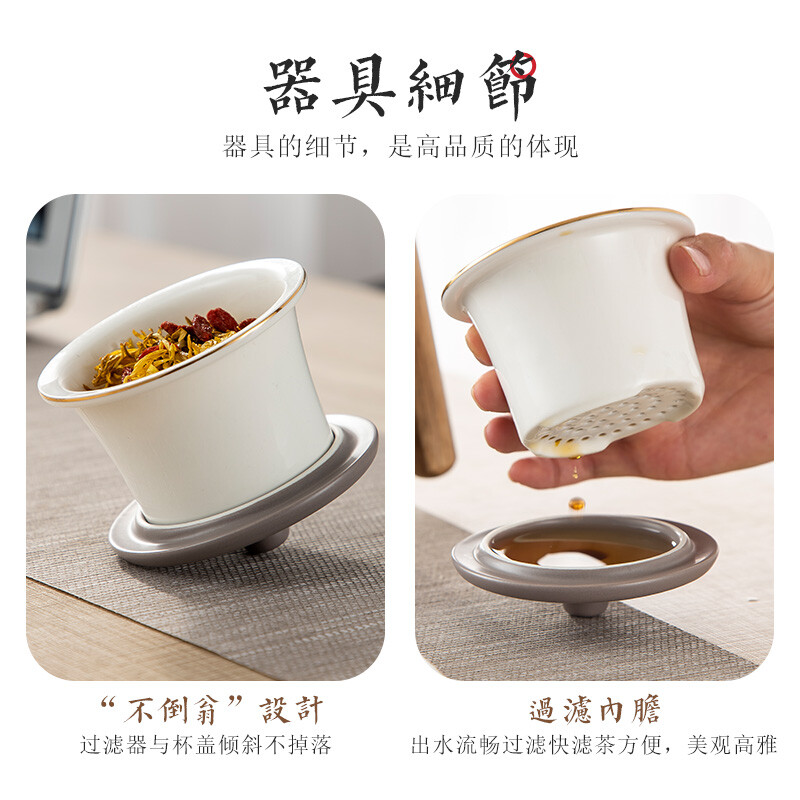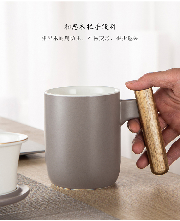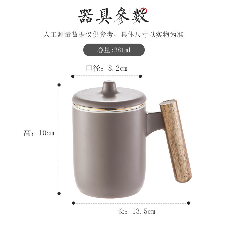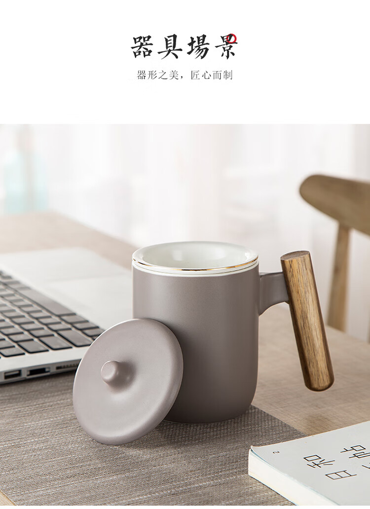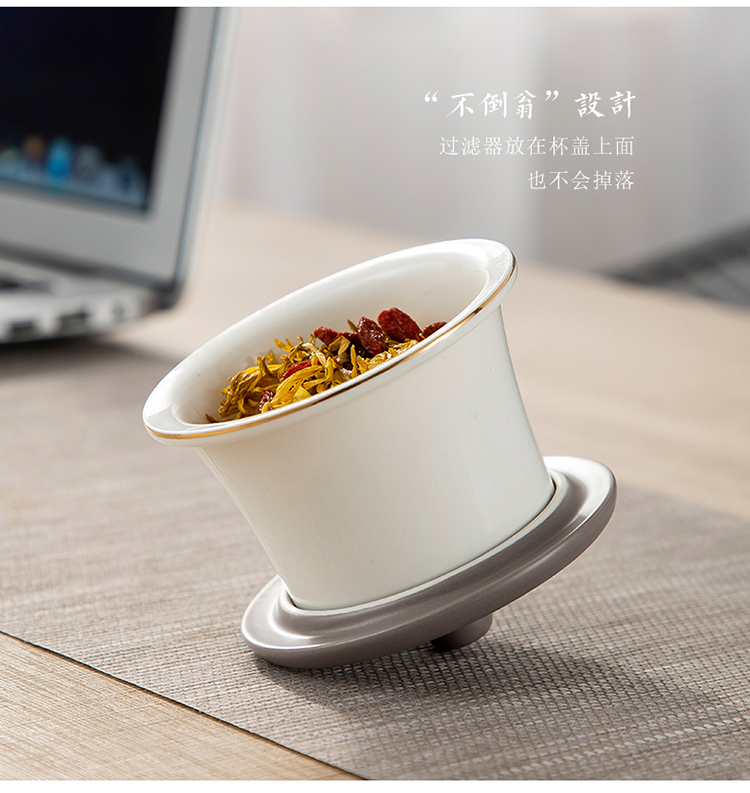 美厨(maxcook)带茶漏茶杯 陶瓷三件杯 马克杯水杯泡茶杯 咖啡杯早餐杯带滤隔 380ml哑光灰MCTC123 自营