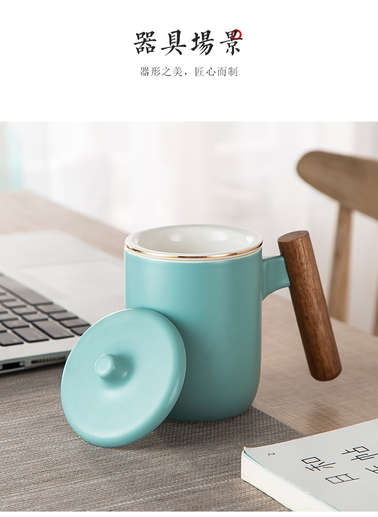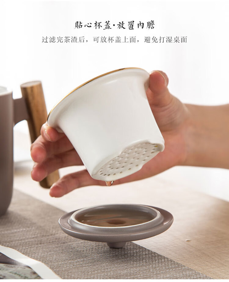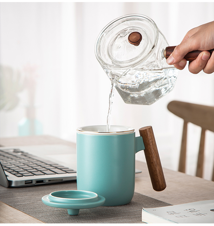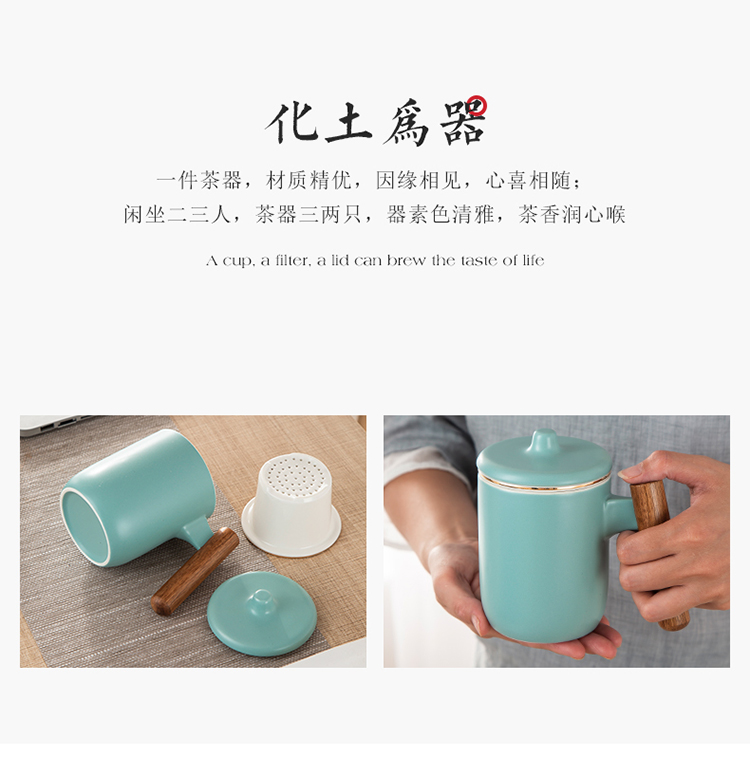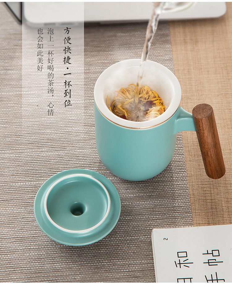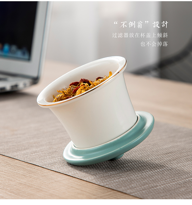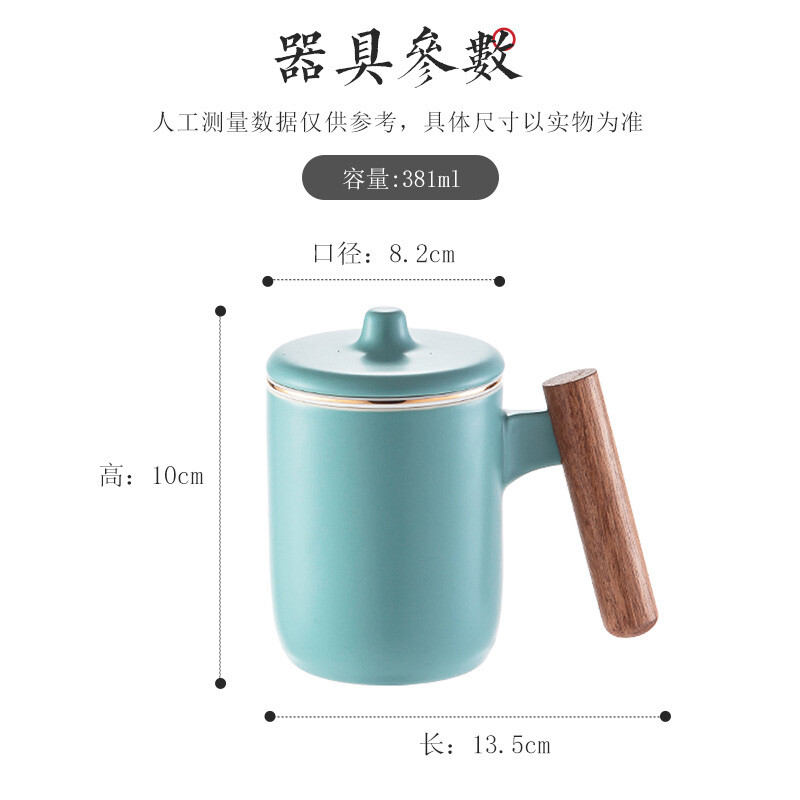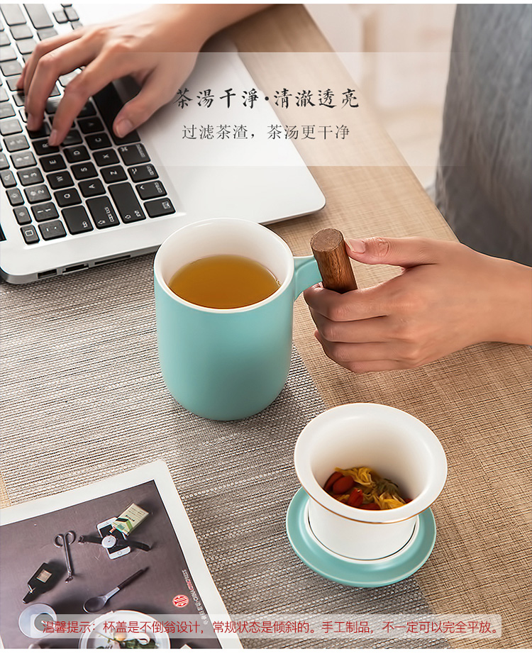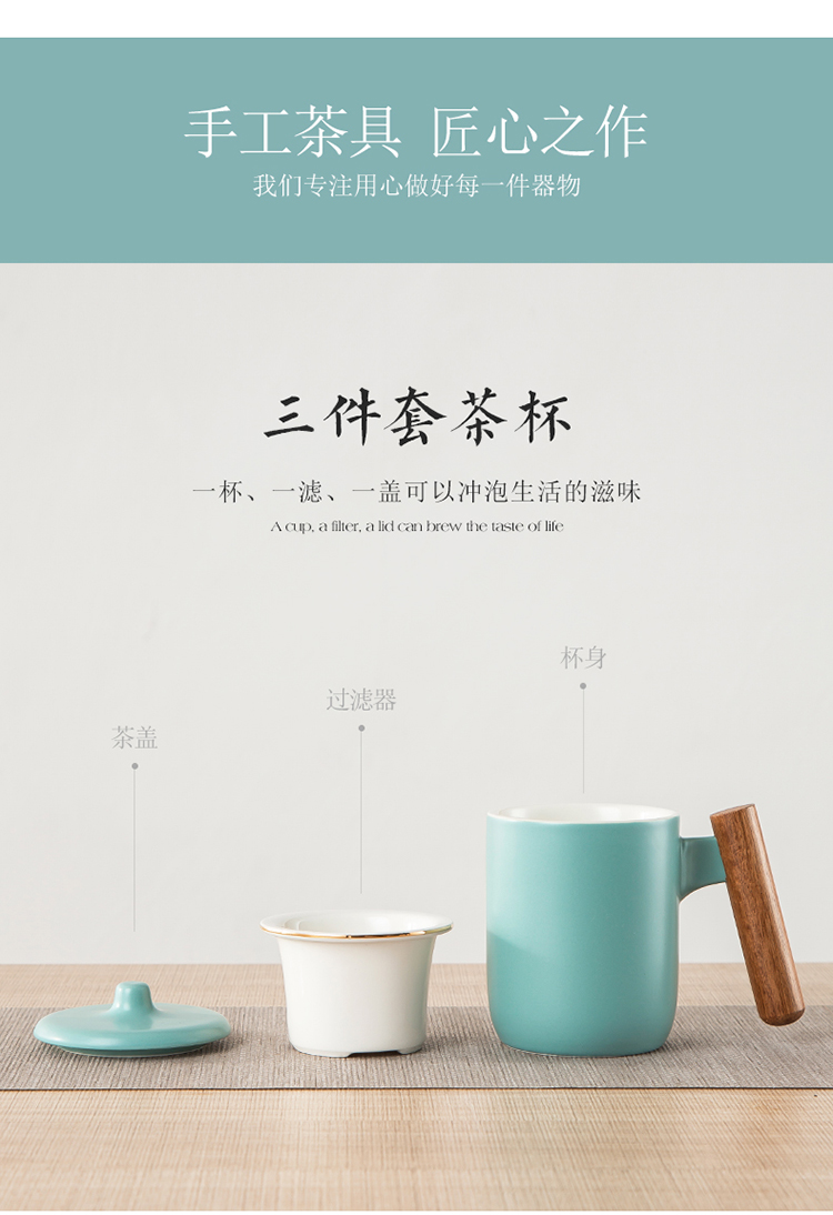 美厨(maxcook)带茶漏茶杯 陶瓷三件杯 马克杯水杯泡茶杯 咖啡杯早餐杯带滤隔 380ml哑光青MCTC124 自营