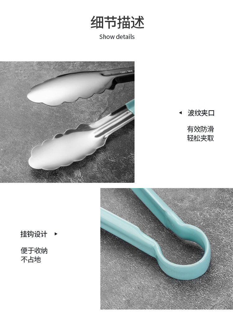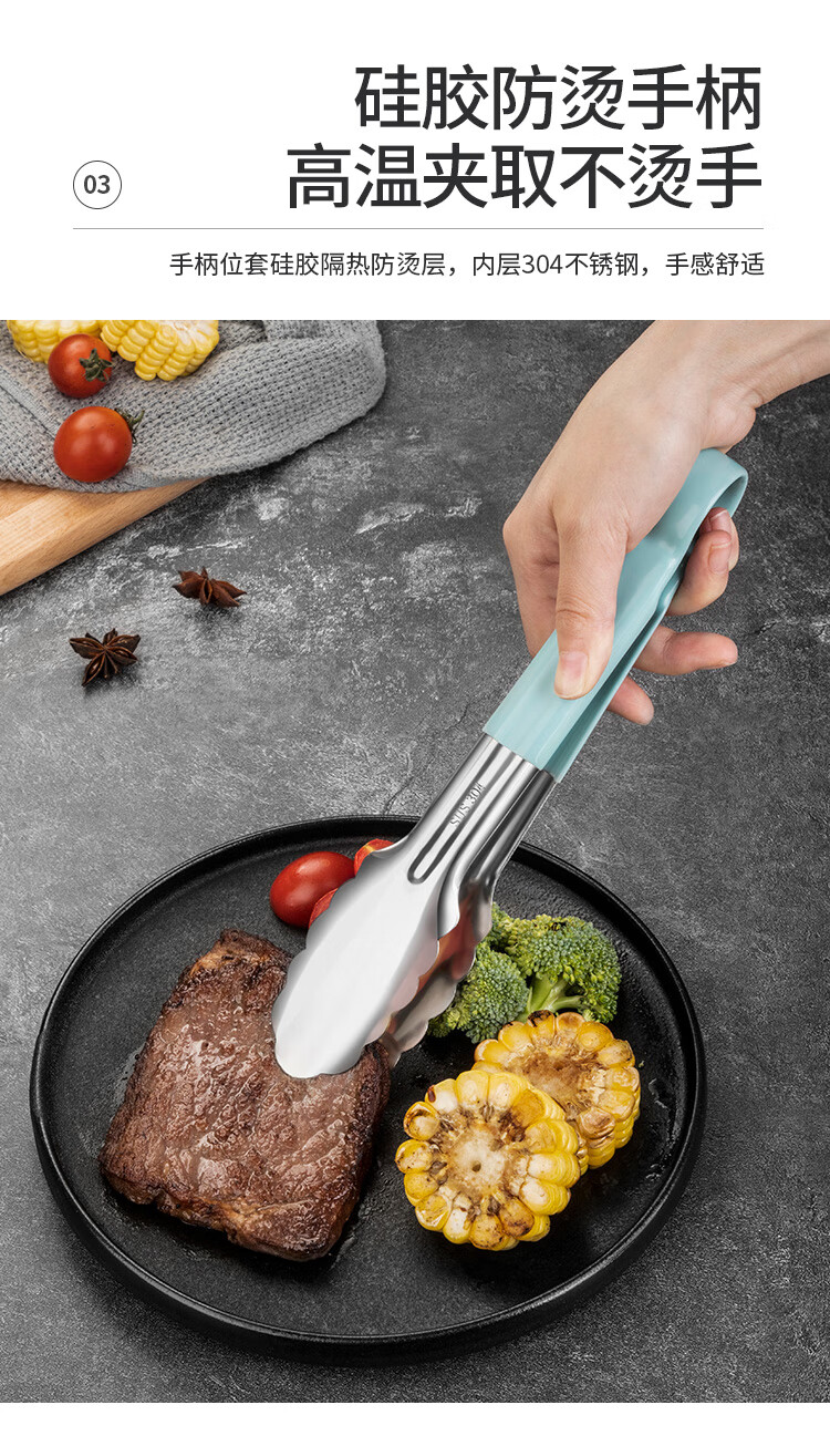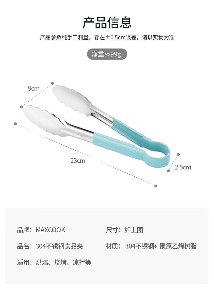 美厨(maxcook)304不锈钢食品夹 食物夹蛋糕夹 面包夹烘焙夹子 加厚防烫省力MCHS-021 自营