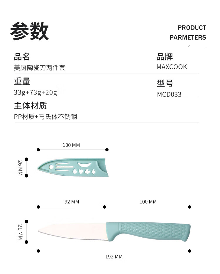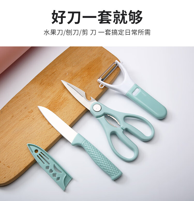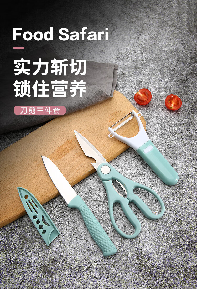 美厨(maxcook)水果刀削皮刀剪刀套装 不锈钢削皮器瓜刨刀具厨房工具三件套 MCD033 自营