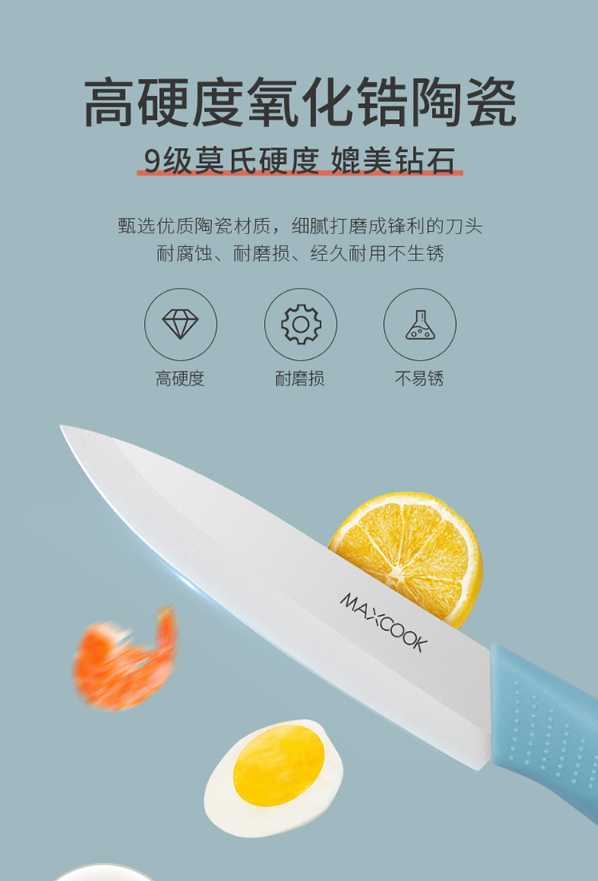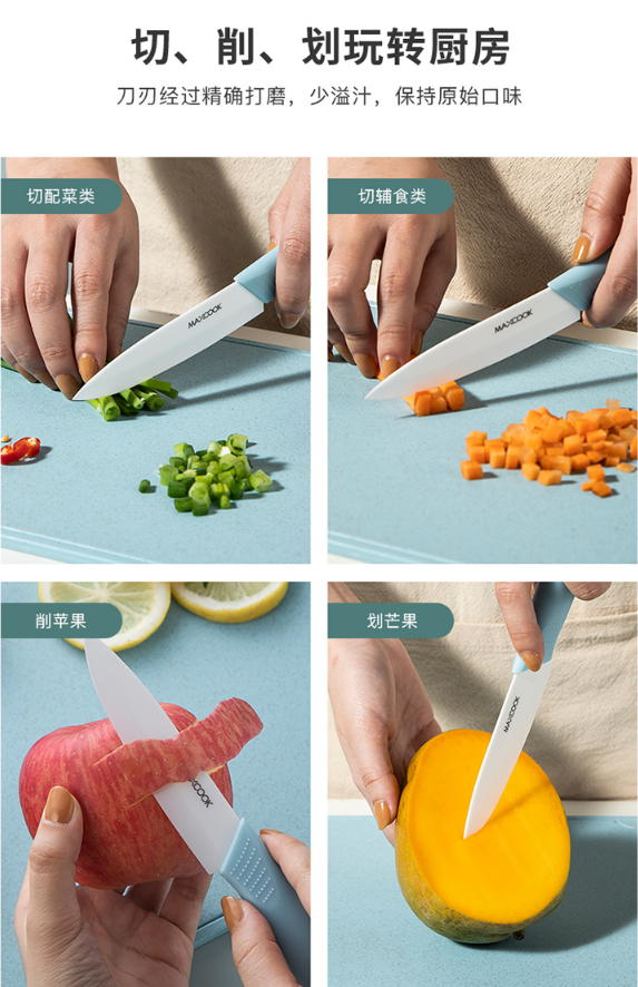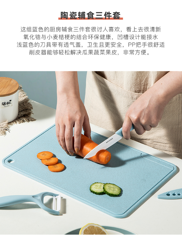 美厨(maxcook)陶瓷刀套装 厨房切菜刀水果刀削皮器砧板辅食刀瓜刨 家用刀具塑料菜板 3件套MCD2274 自营