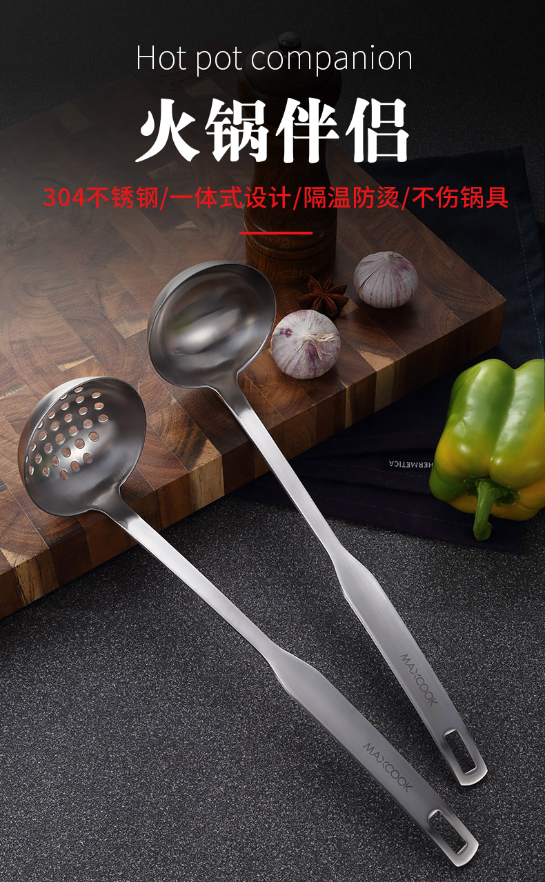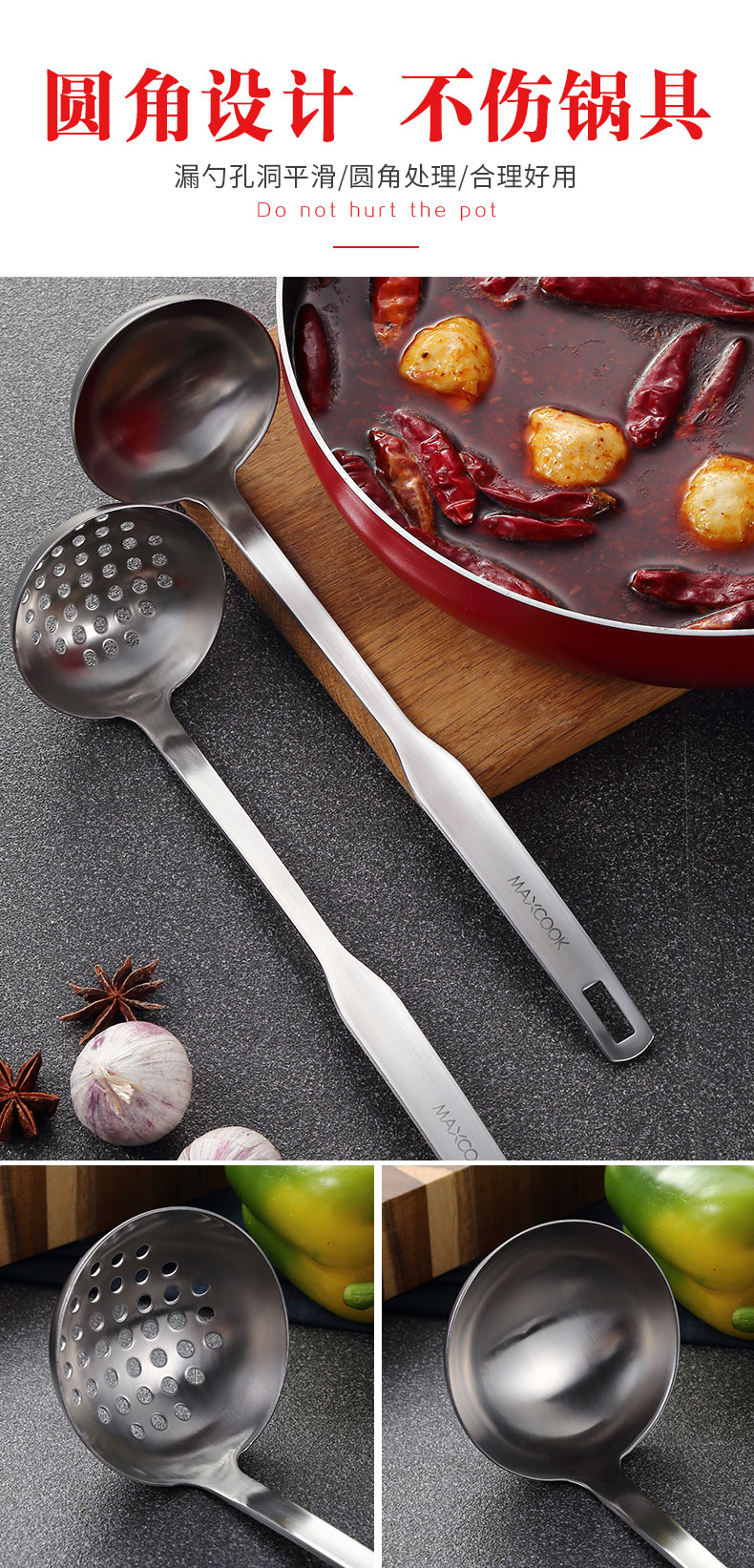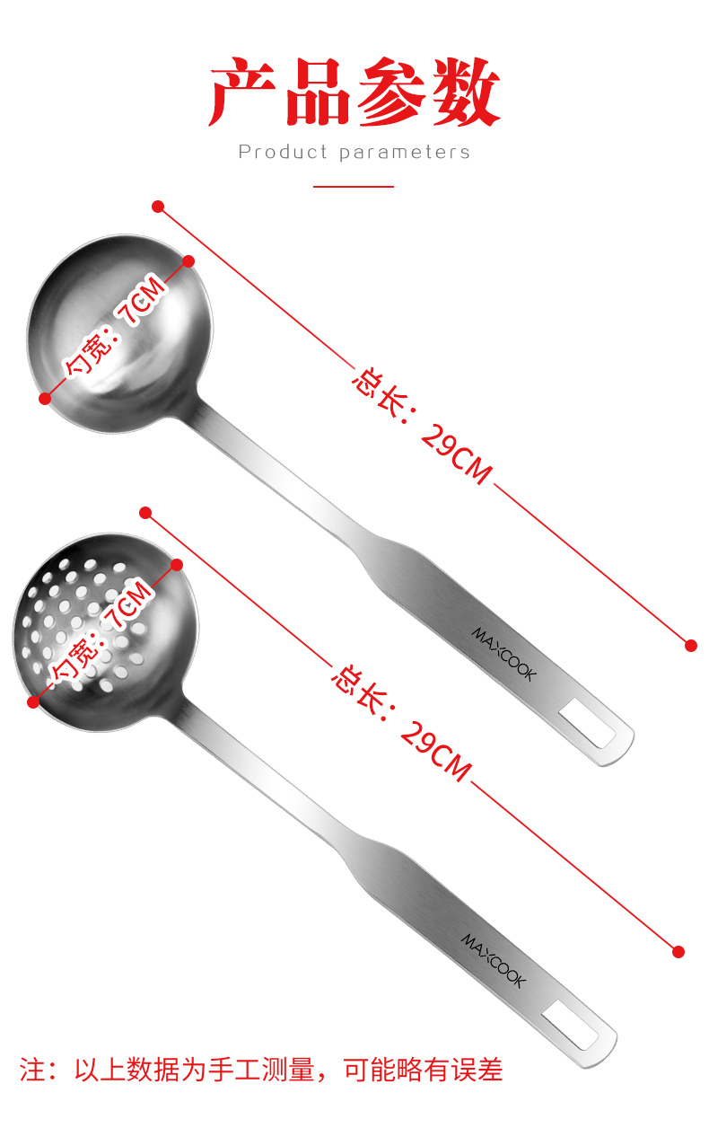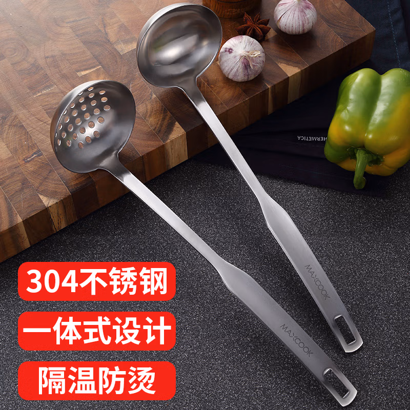 美厨304不锈钢火锅勺 小汤勺漏勺 加厚一体成型两只装MCCU752 自营