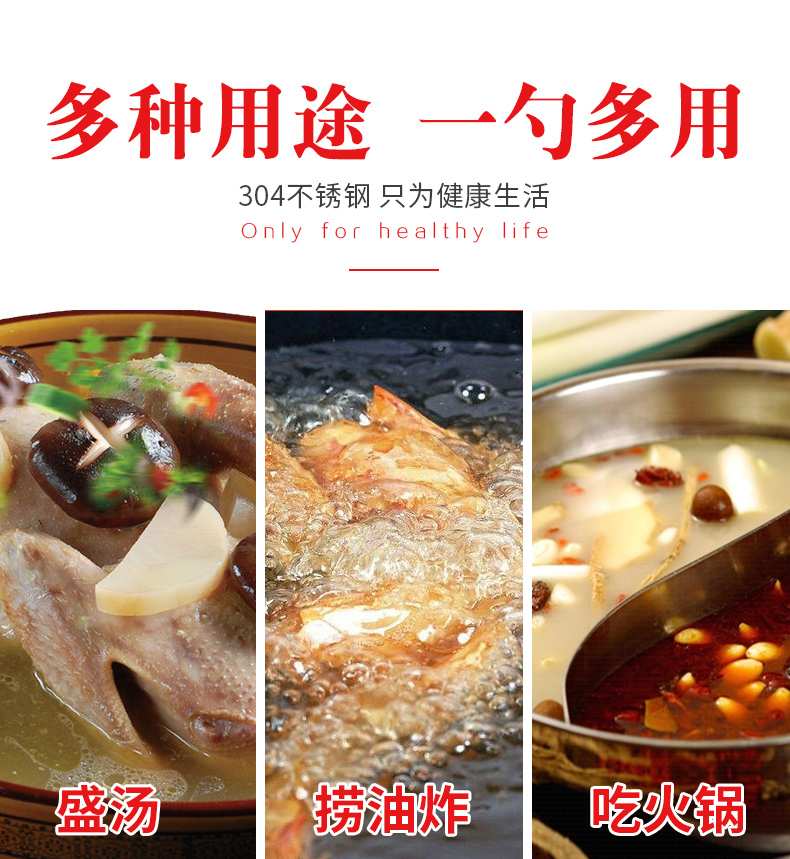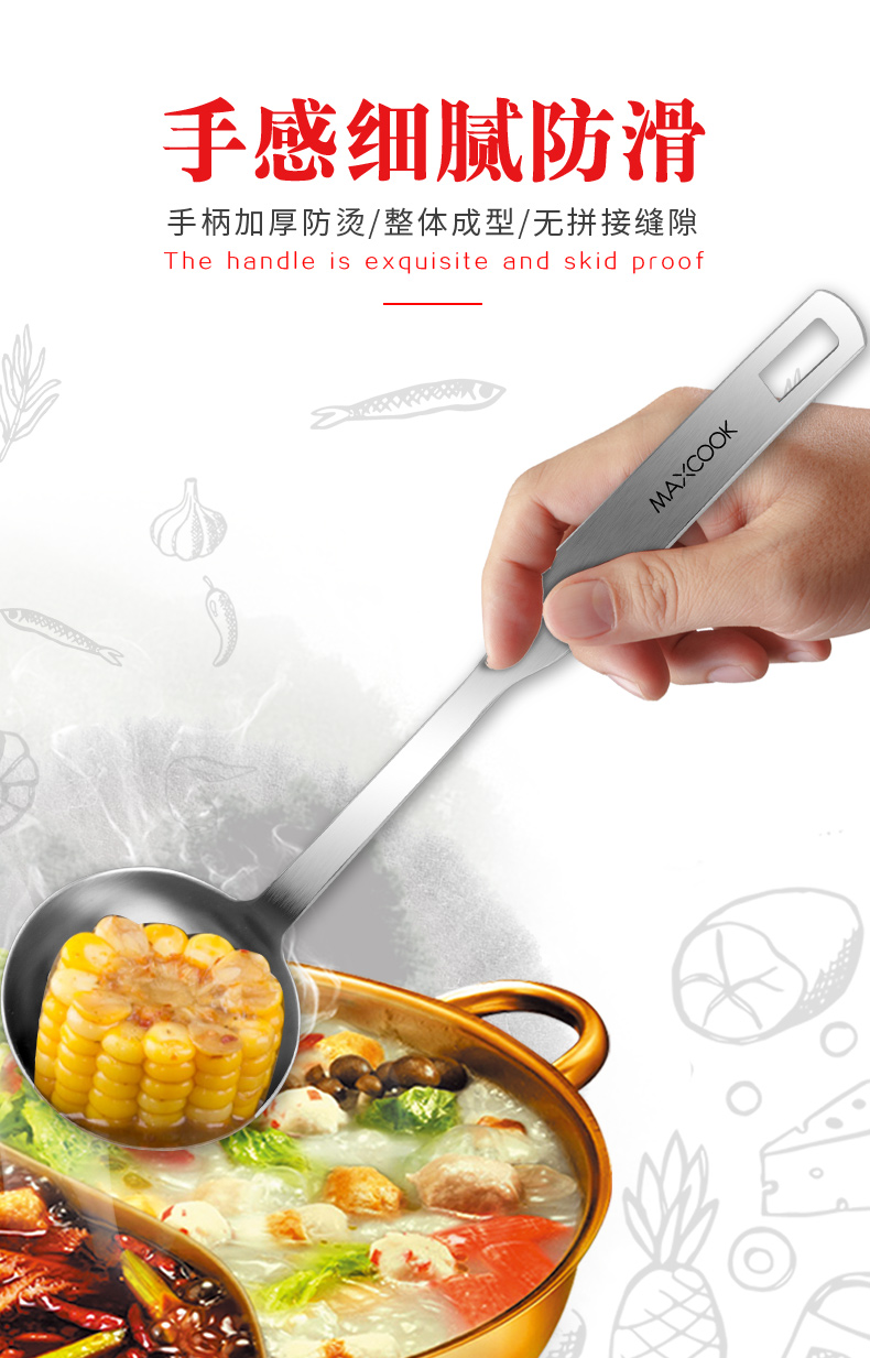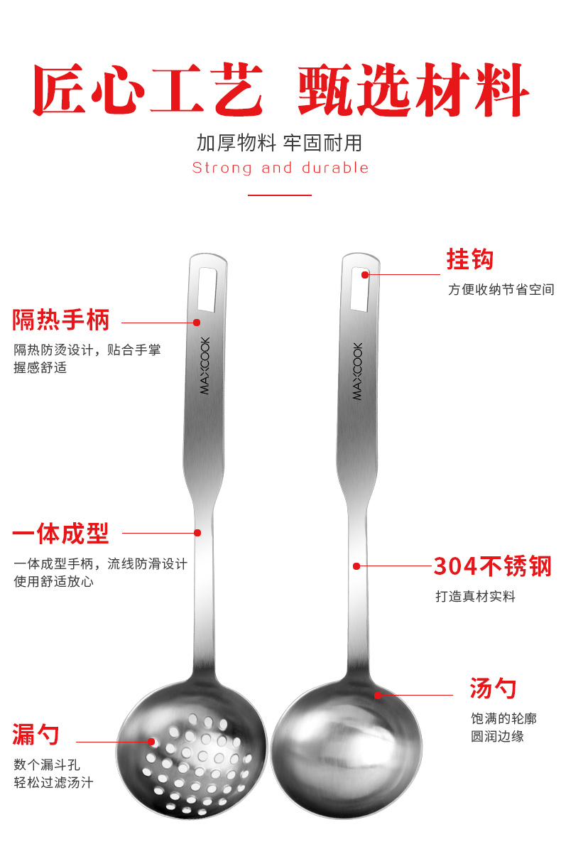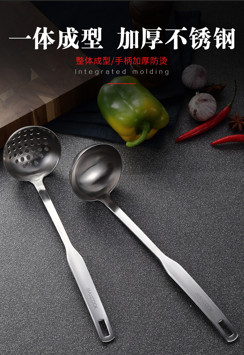 美厨304不锈钢火锅勺 小汤勺漏勺 加厚一体成型两只装MCCU752 自营