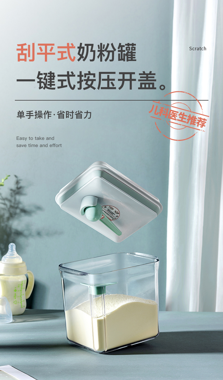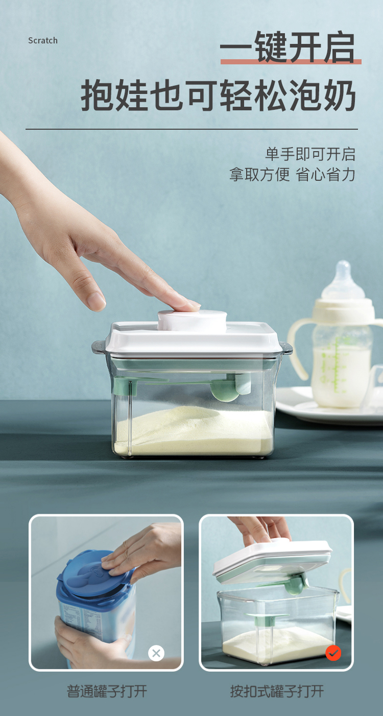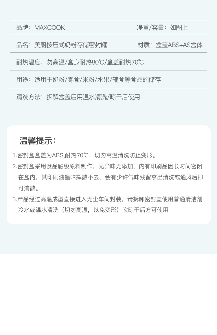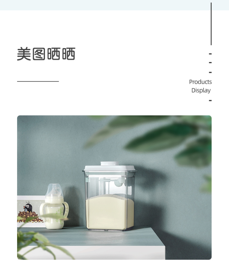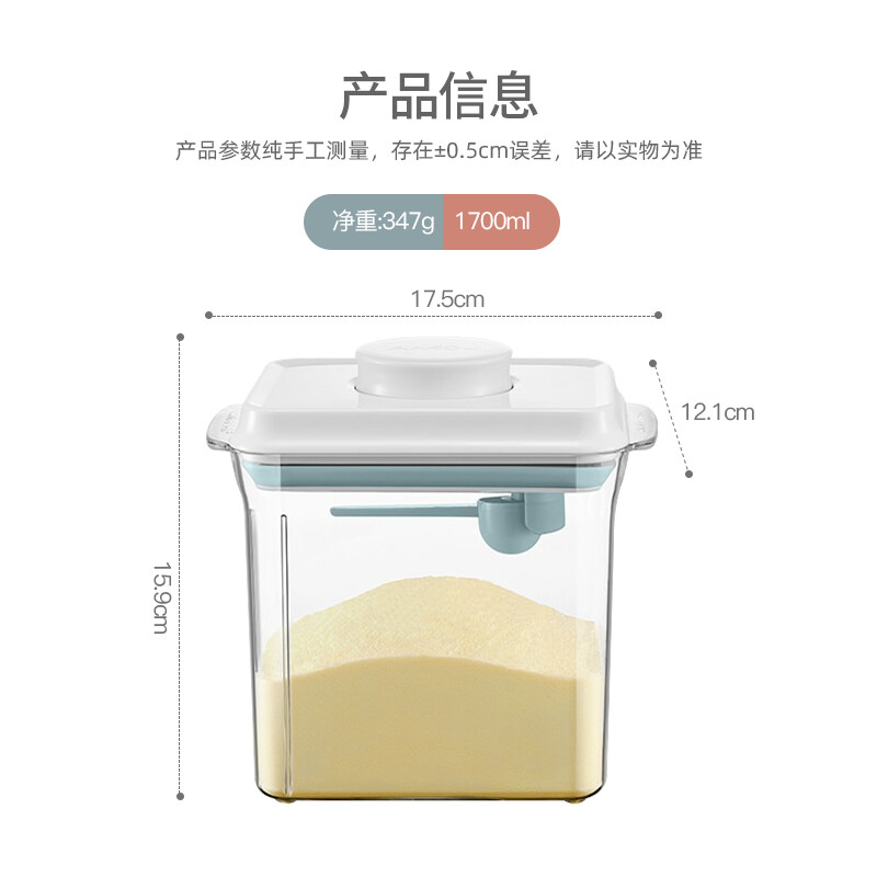 美厨(MAXCOOK)保鲜盒密封罐 按压式奶粉盒五谷杂粮粉储物罐茶叶罐厨房收纳盒 【配定量勺5g】 1.7L 约装600g奶粉MCX0881 自营