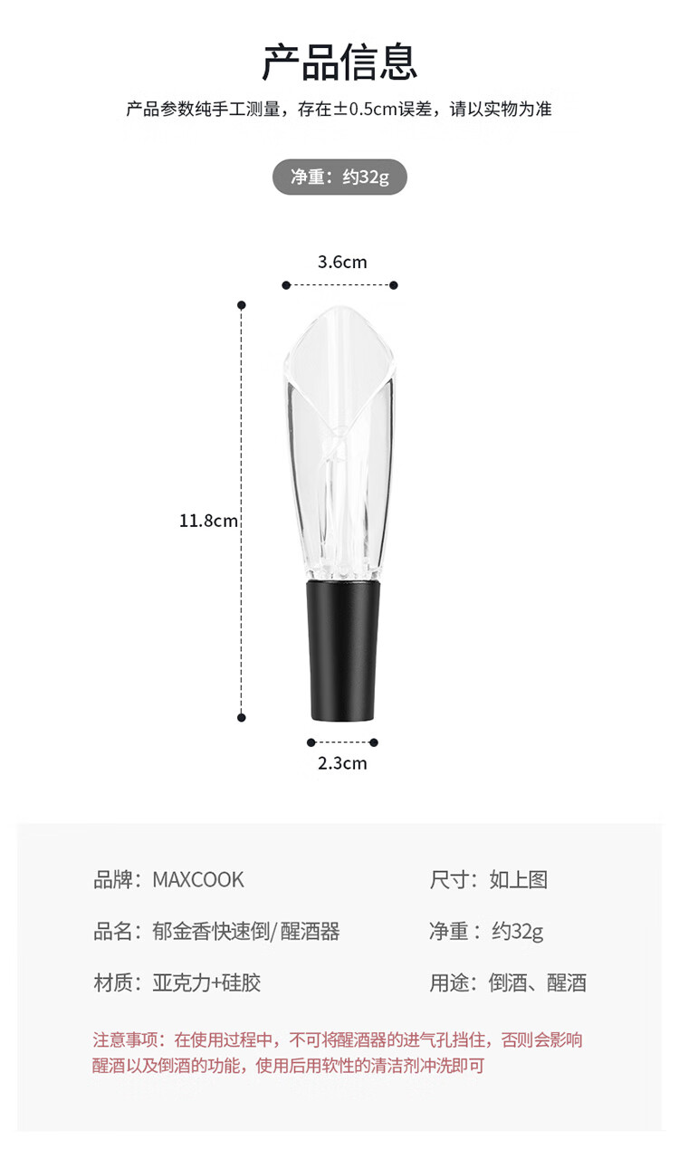 美厨(maxcook)郁金香红酒醒酒器 快速倒醒酒器 家用小巧便携醒酒器 MCZN512 自营