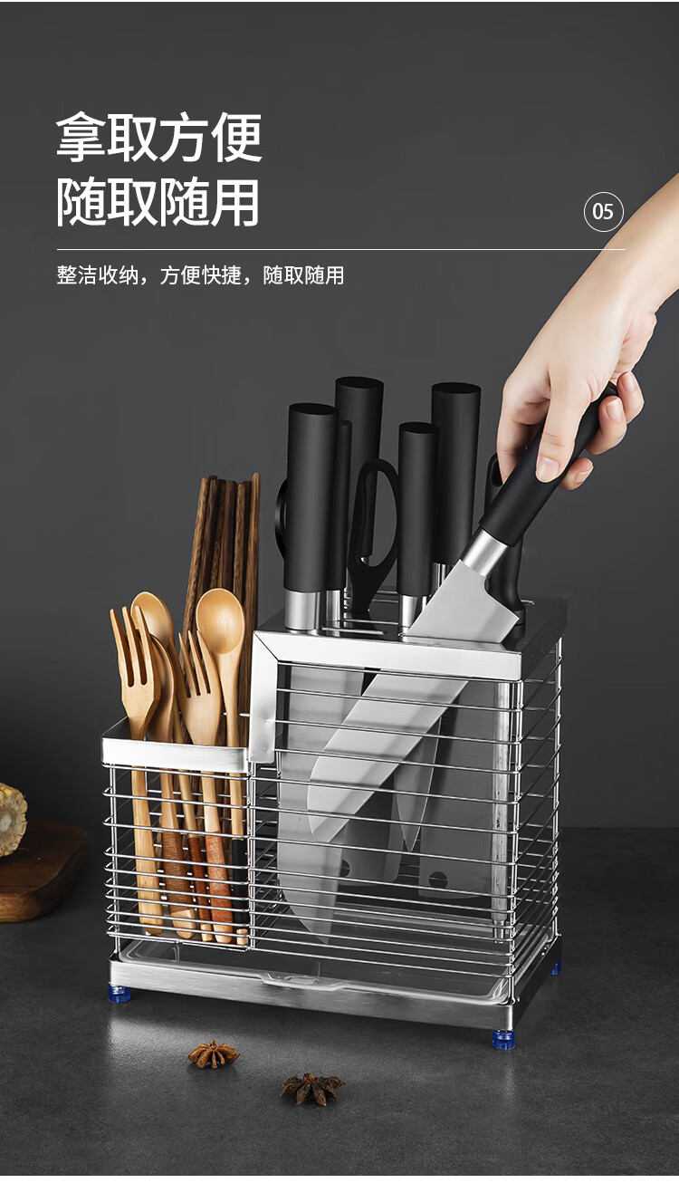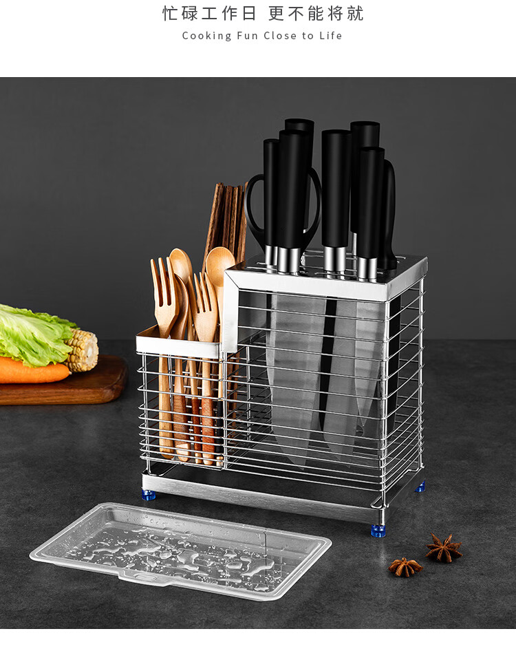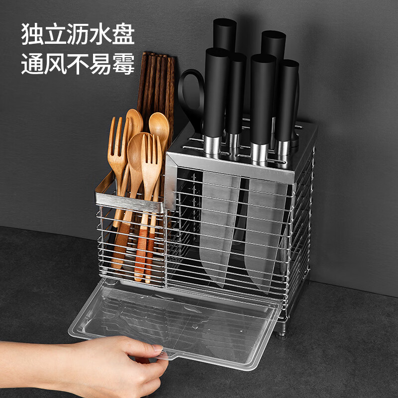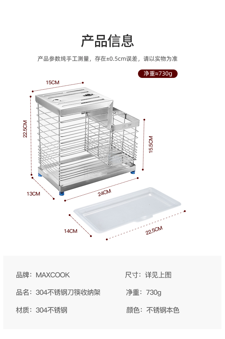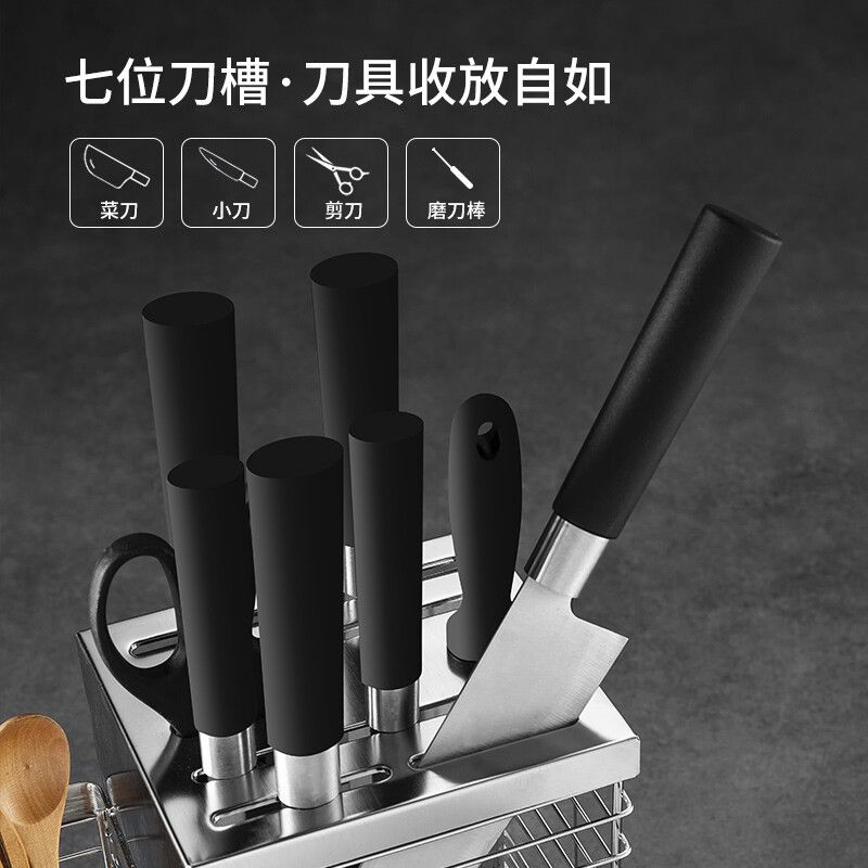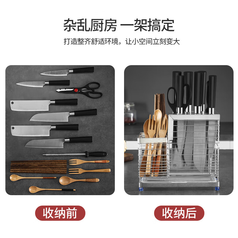 美厨(MAXCOOK)厨房置物架 304不锈钢刀架刀座筷子筒收纳架 免安装落地筷勺架MCWA575 自营