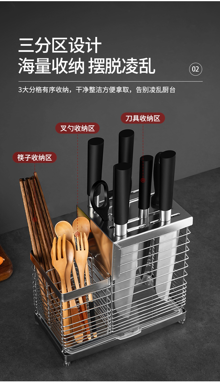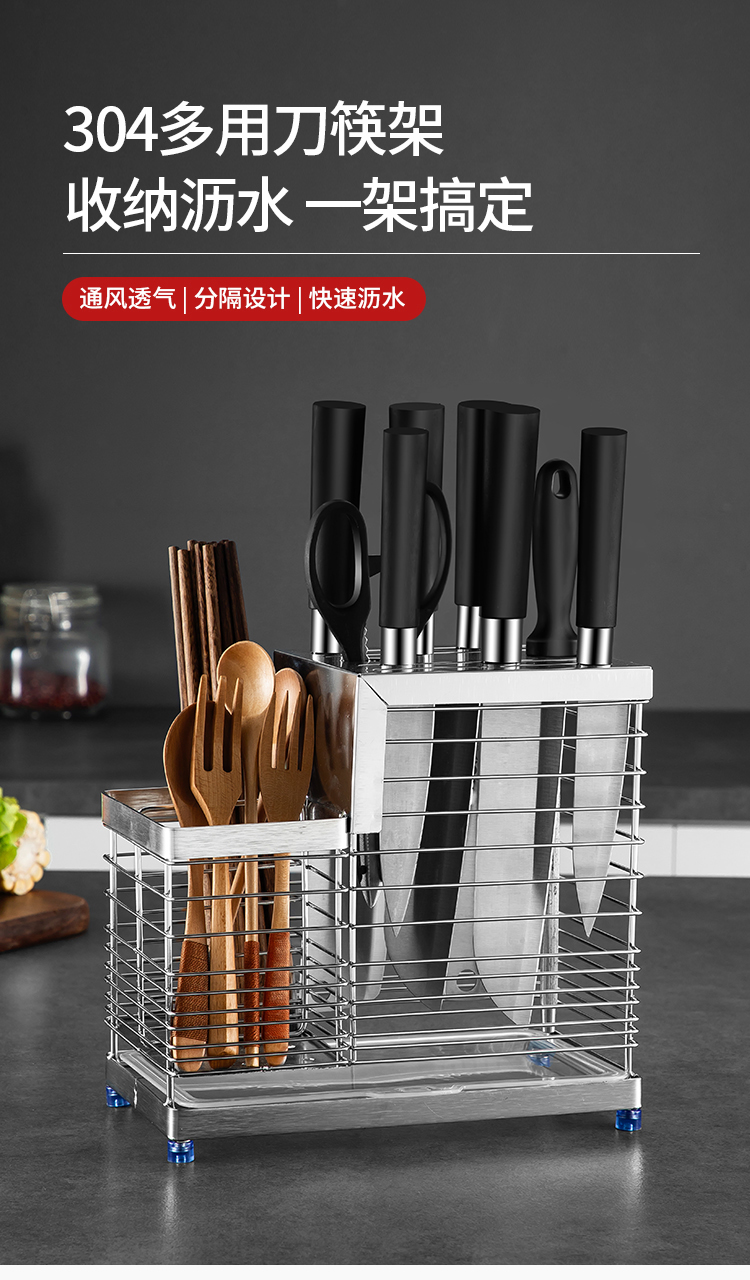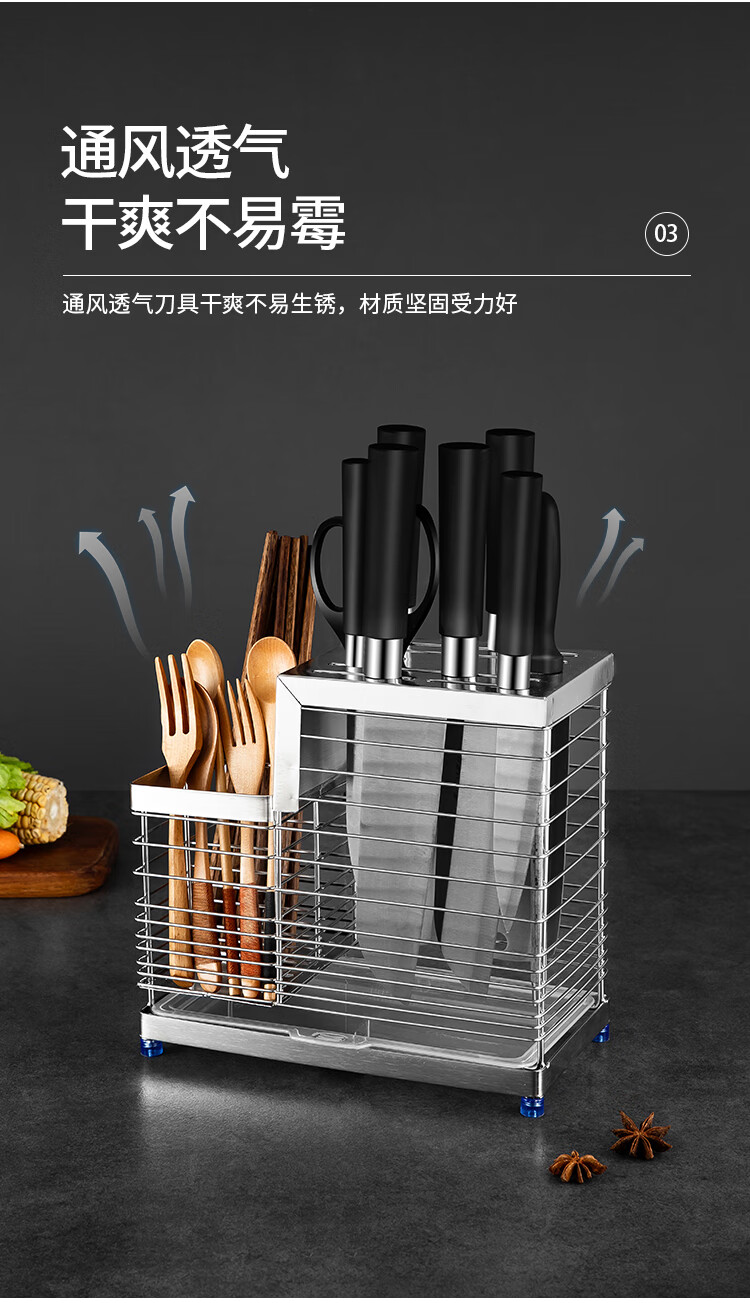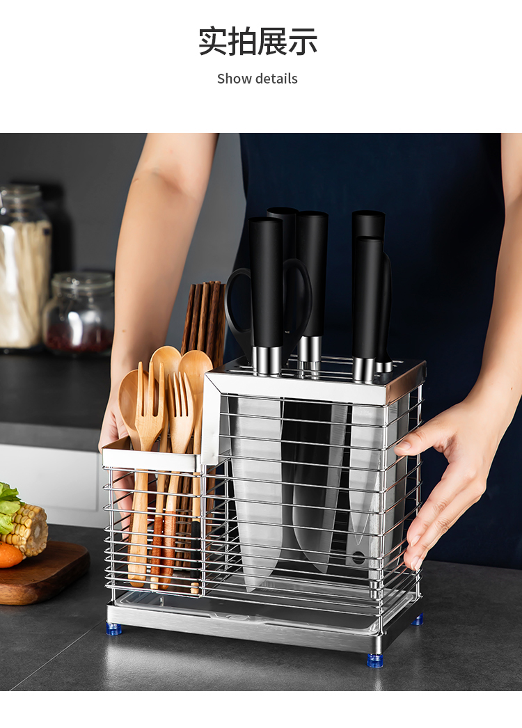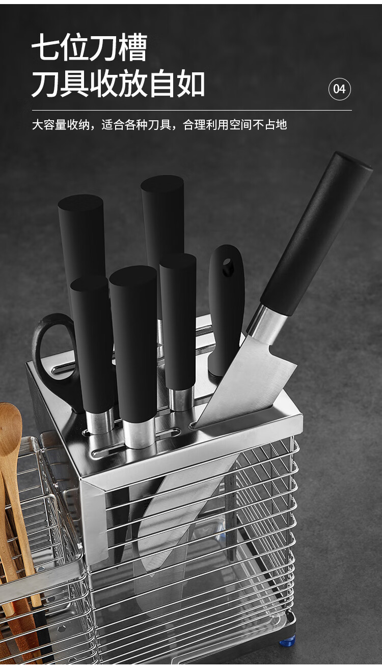 美厨(MAXCOOK)厨房置物架 304不锈钢刀架刀座筷子筒收纳架 免安装落地筷勺架MCWA575 自营