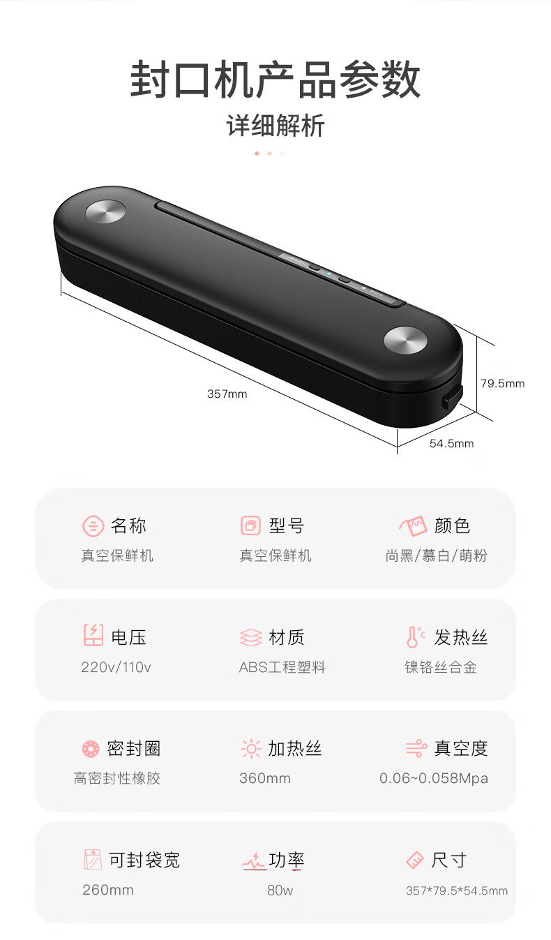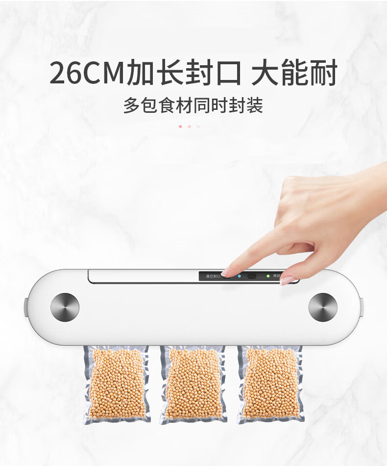 美厨(MAXCOOK)真空包装机封口机 家用全自动干湿食品塑封机抽真空机保鲜机密封机密封器 简约白【干湿两用配封口袋*10】MCJD514 自营