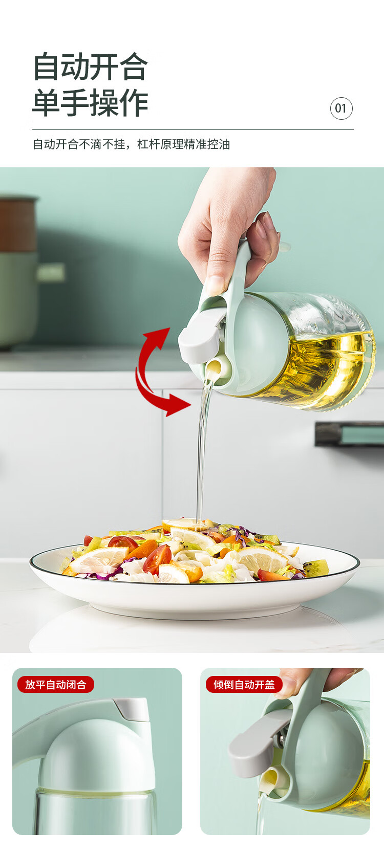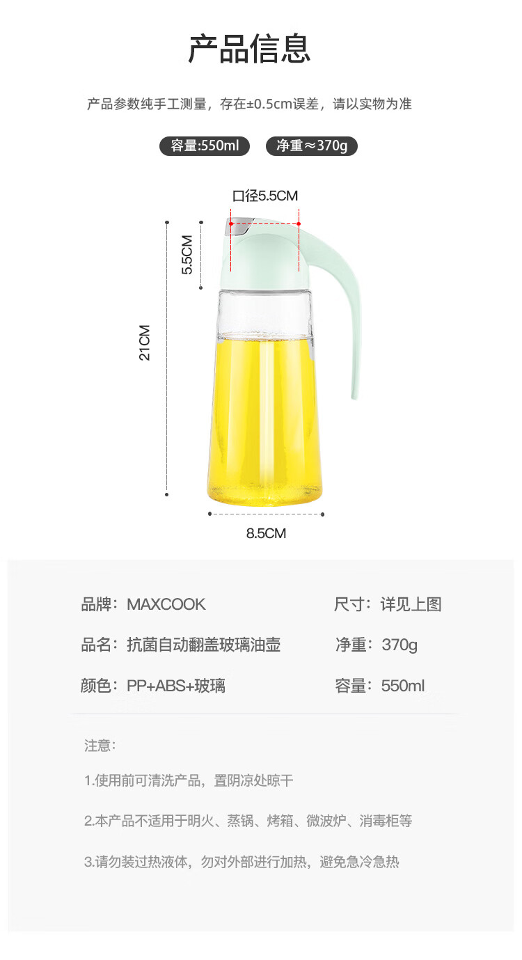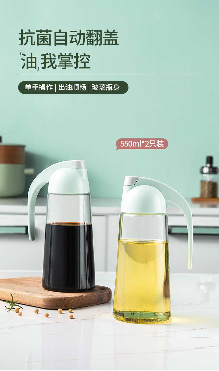 美厨(maxcook)自动开合油壶 抗菌油壶 550ML大容量防漏调料瓶酱油醋瓶 2只装MCPJ7201 自营