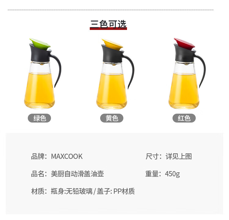 美厨(maxcook)自动开合油壶 550ML大容量防漏调料瓶酱油醋瓶 绿色MCPJ6709 自营
