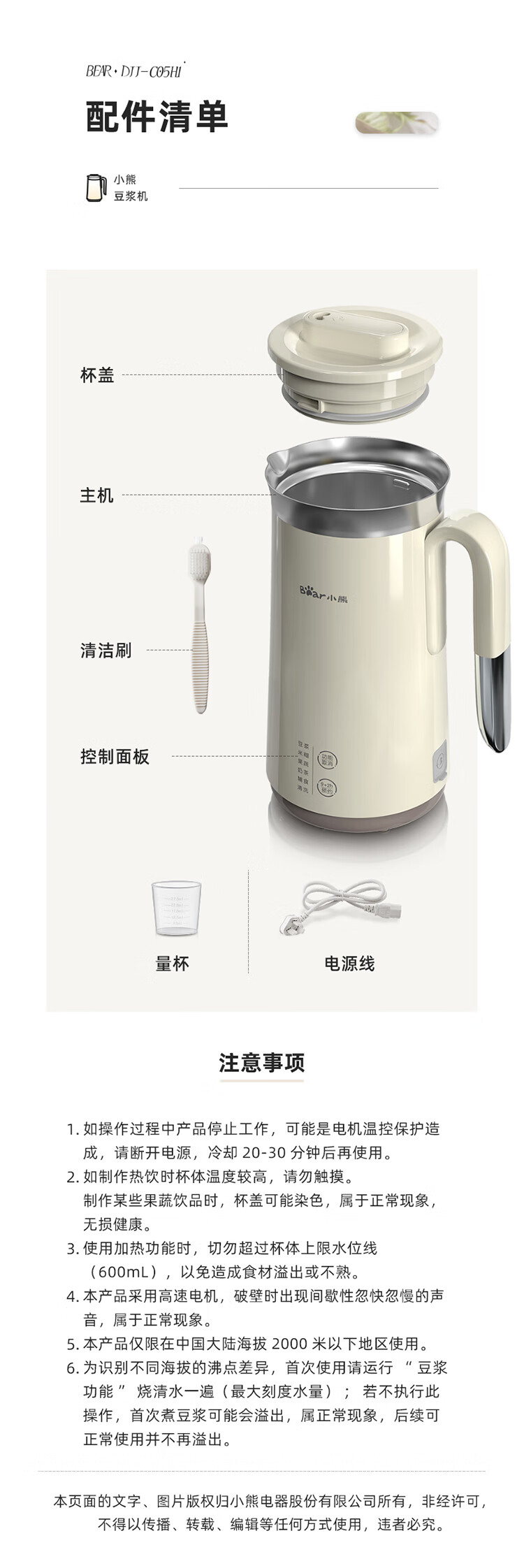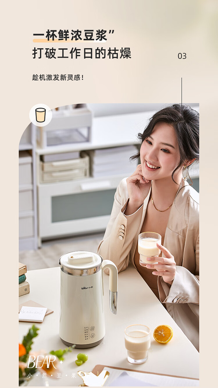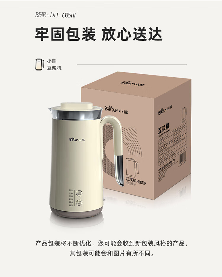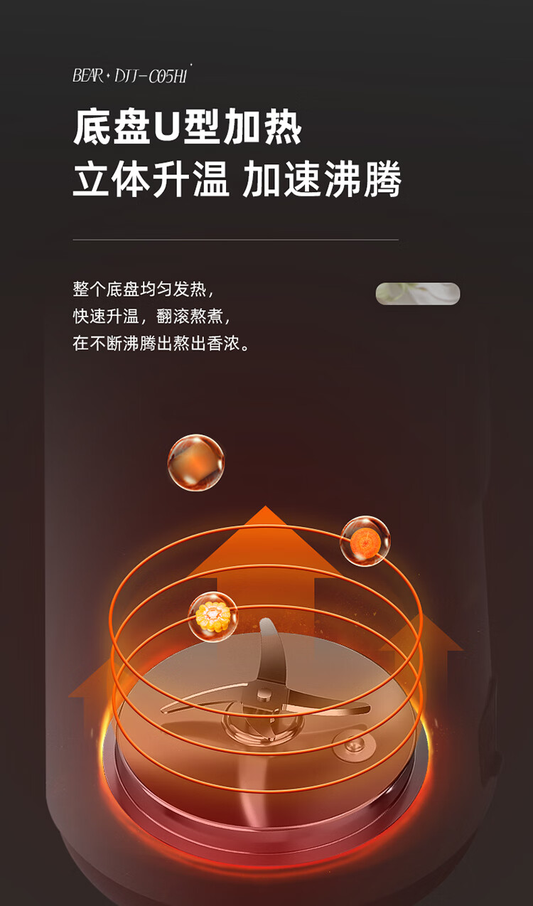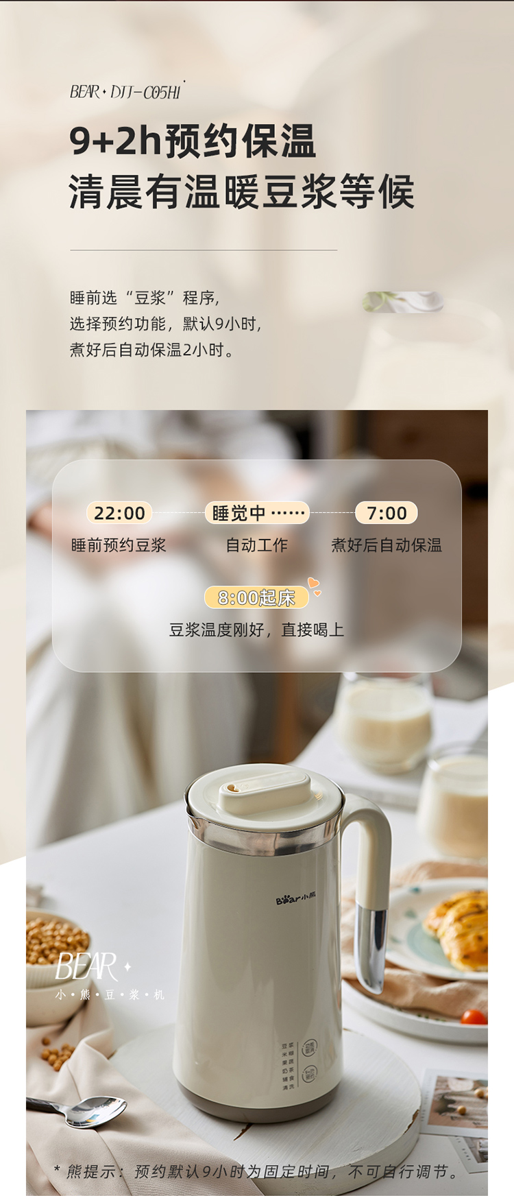 小熊(Bear)豆浆机 迷你破壁机 家用小型米糊机 多功能全自动清洗免过滤 1-2人食 DJJ-C05H1 0.6L 自营