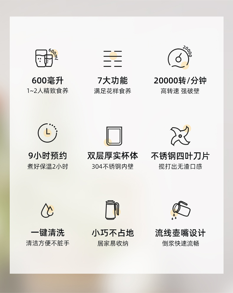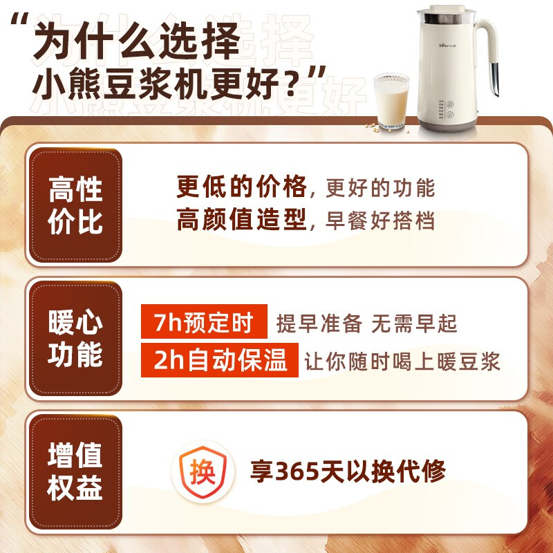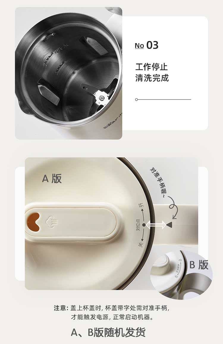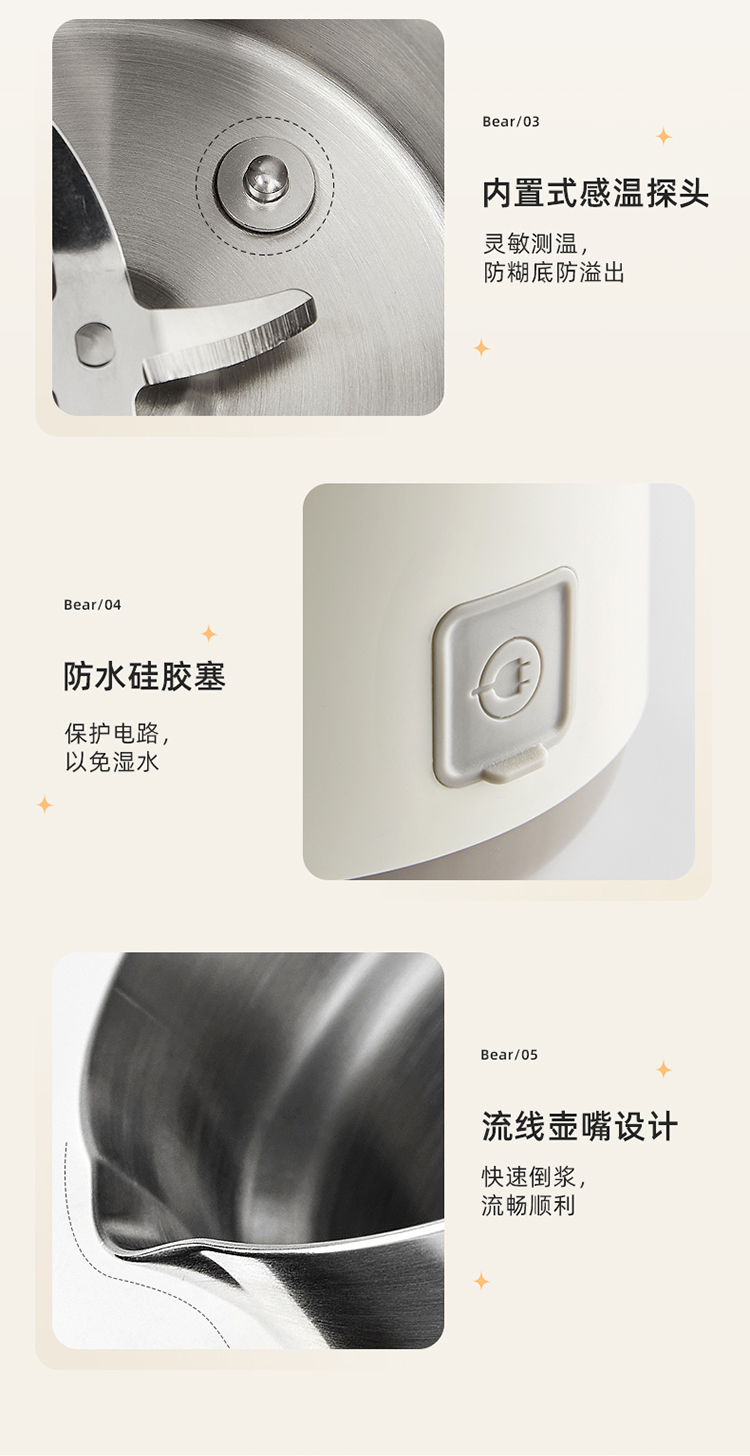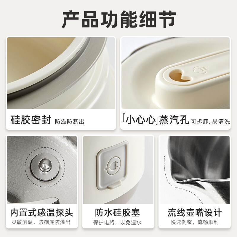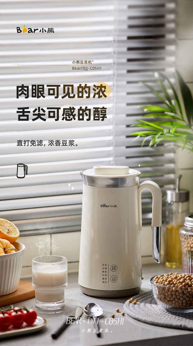 小熊(Bear)豆浆机 迷你破壁机 家用小型米糊机 多功能全自动清洗免过滤 1-2人食 DJJ-C05H1 0.6L 自营