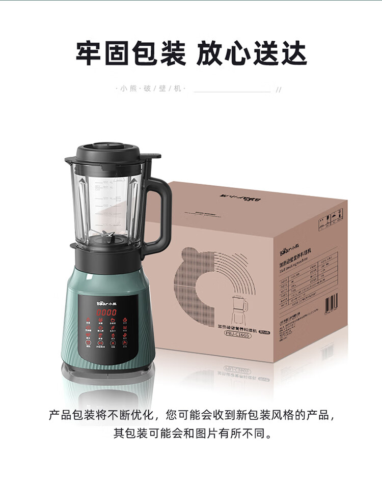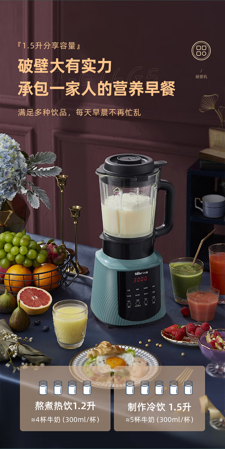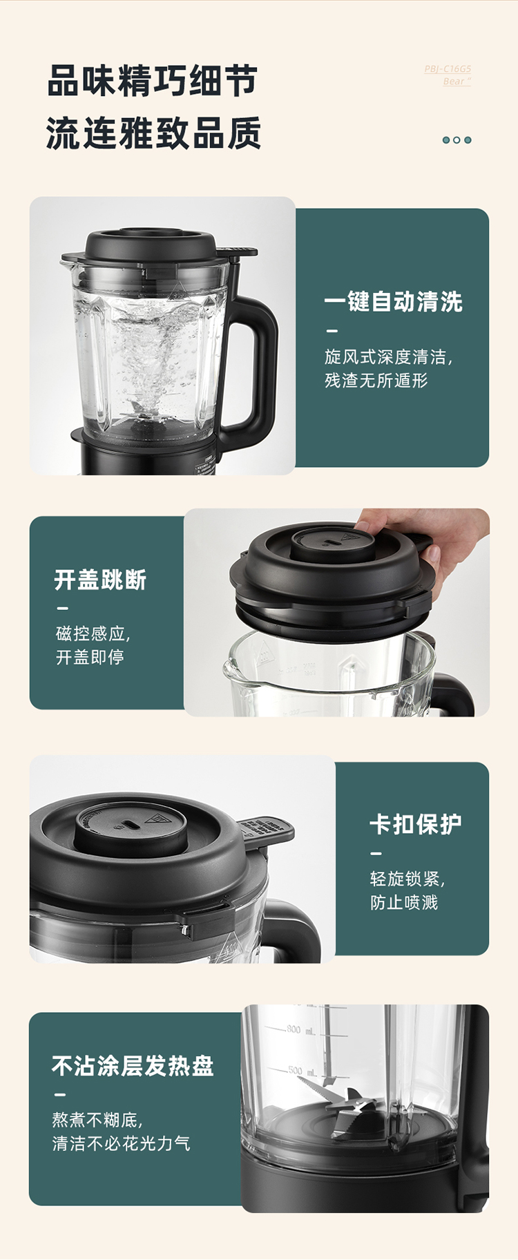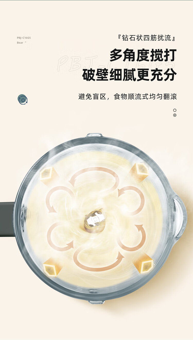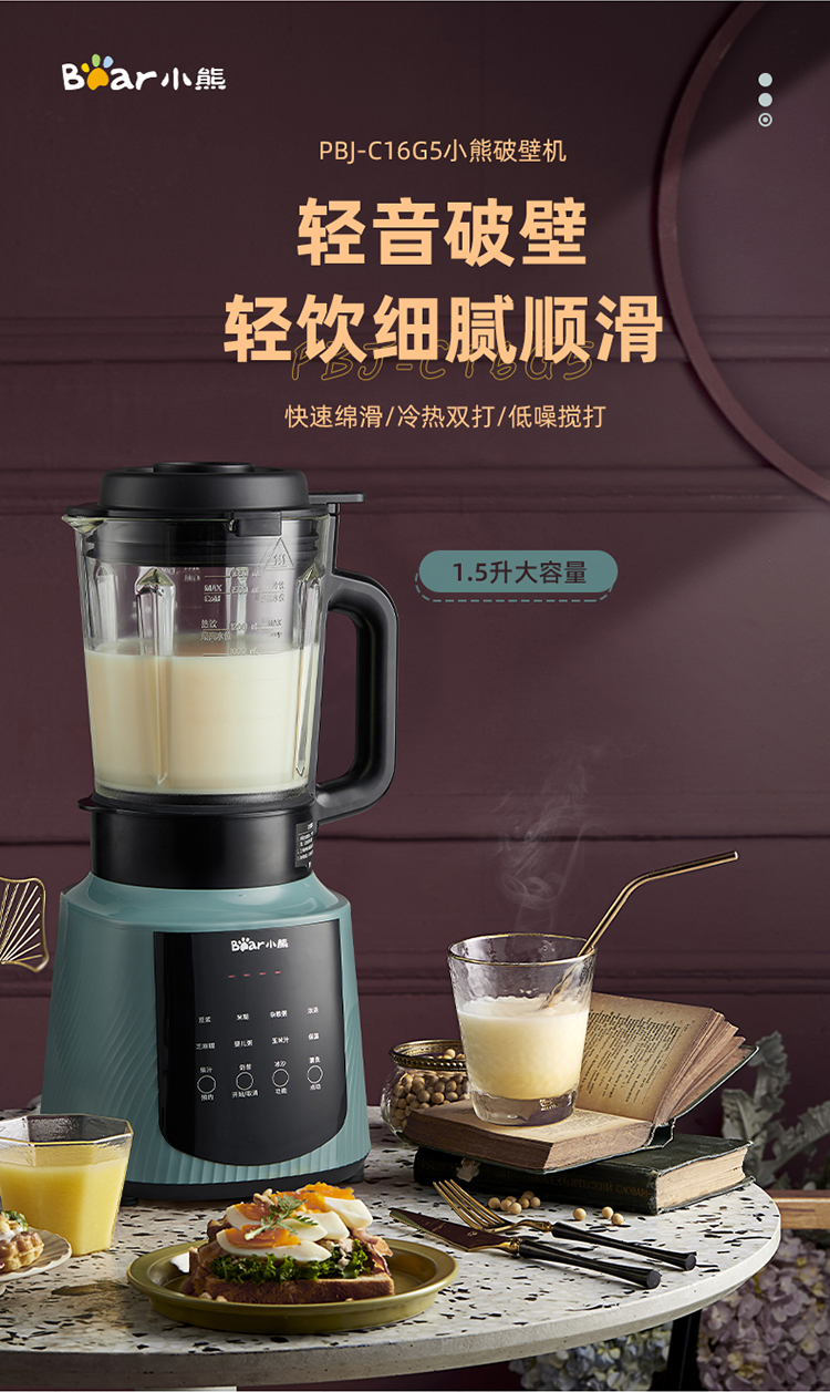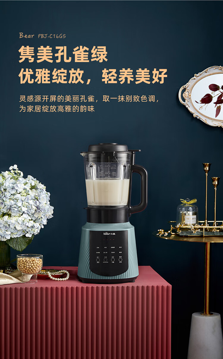 小熊(Bear)破壁机 多功能家用智能预约加热豆浆机料理机榨汁机果汁搅拌机辅食机PBJ-C16G5【ZMD安心系列】 自营