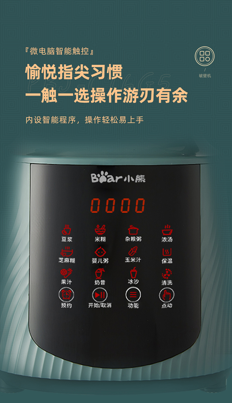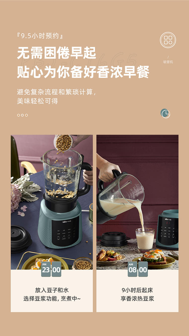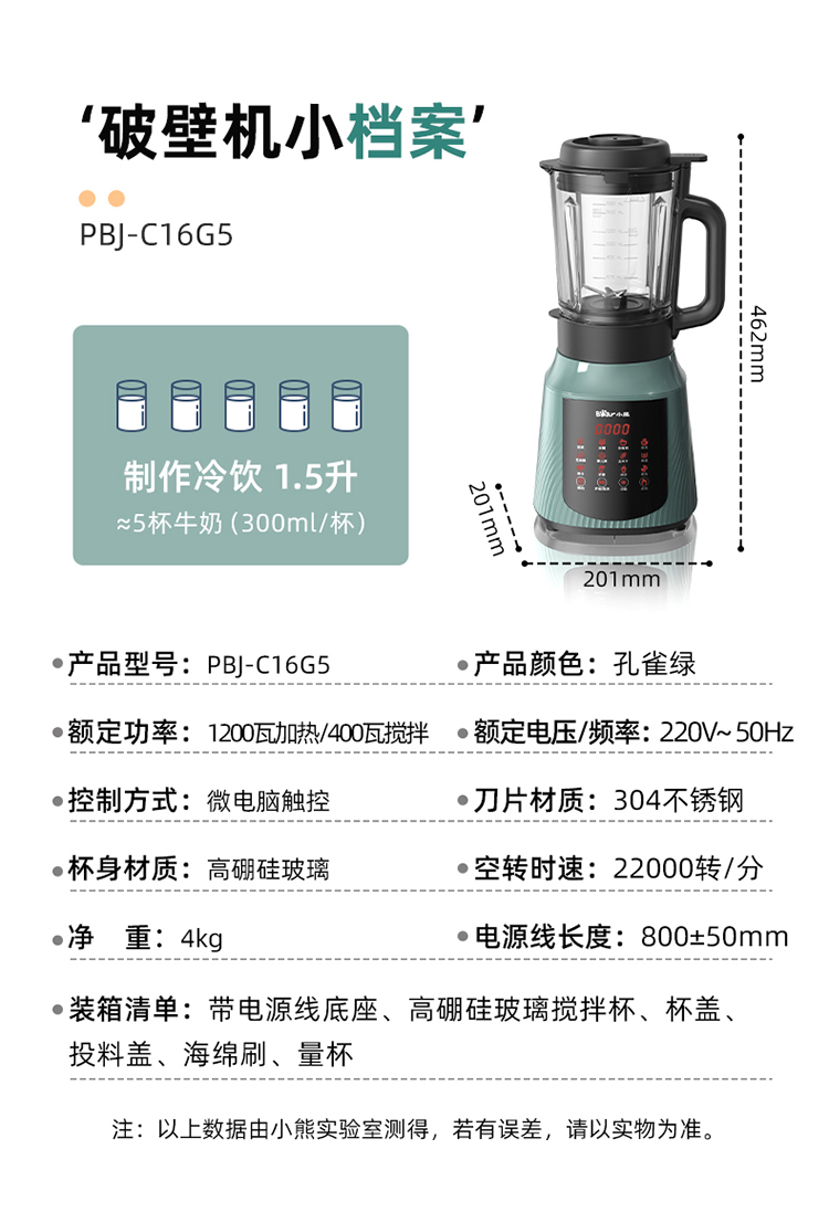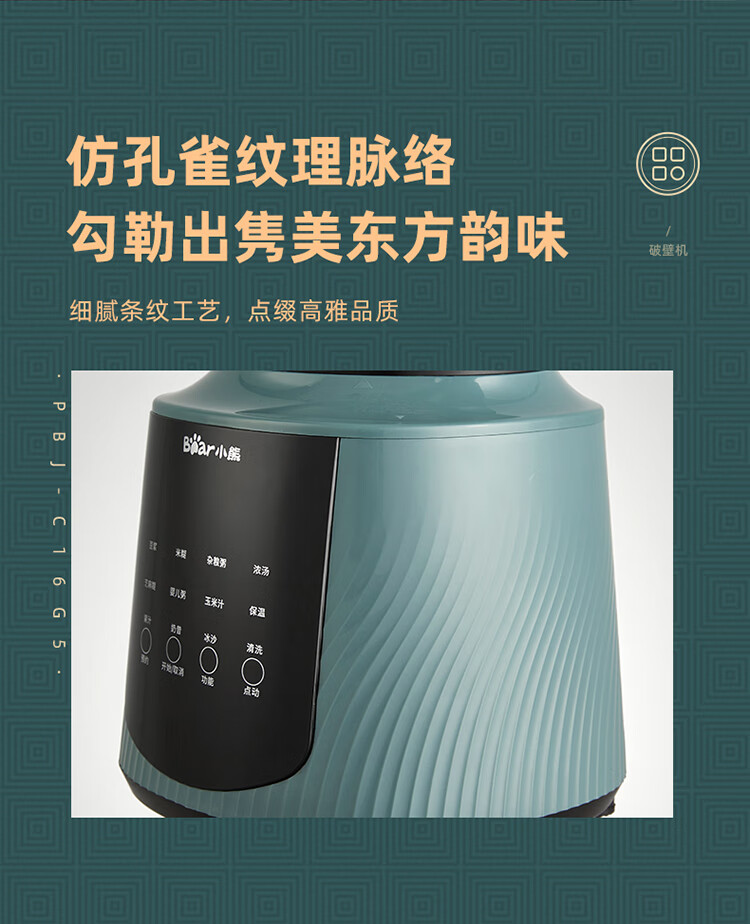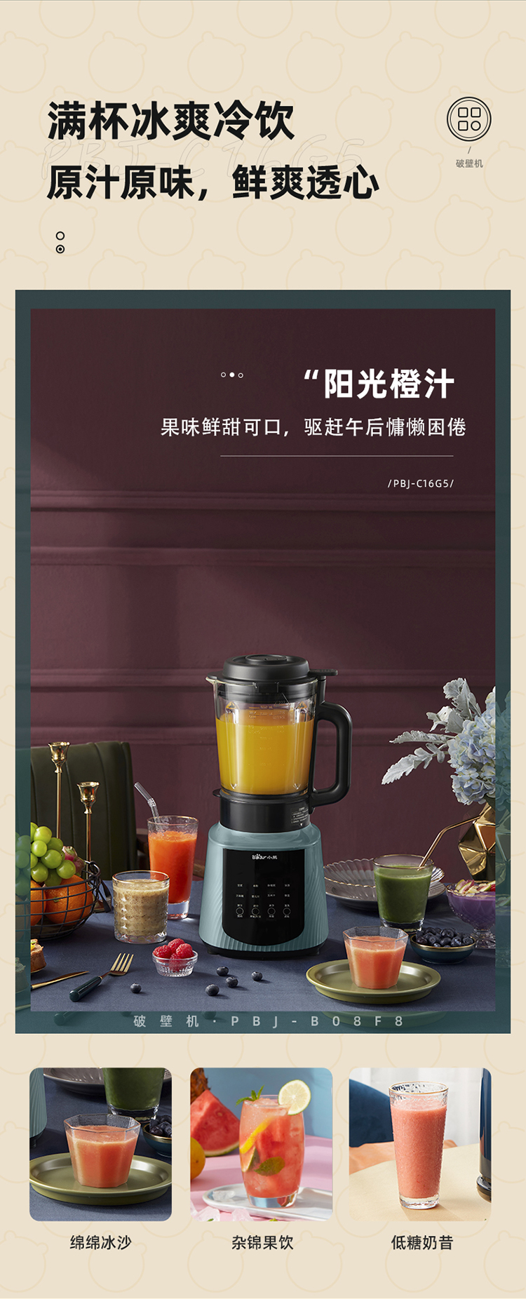 小熊(Bear)破壁机 多功能家用智能预约加热豆浆机料理机榨汁机果汁搅拌机辅食机PBJ-C16G5【ZMD安心系列】 自营