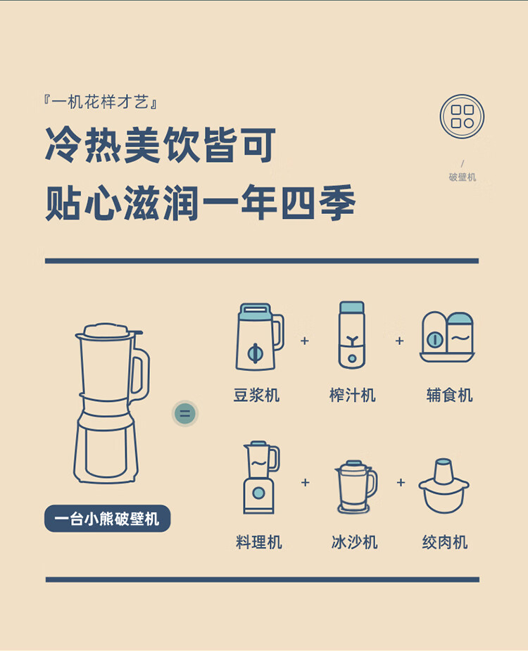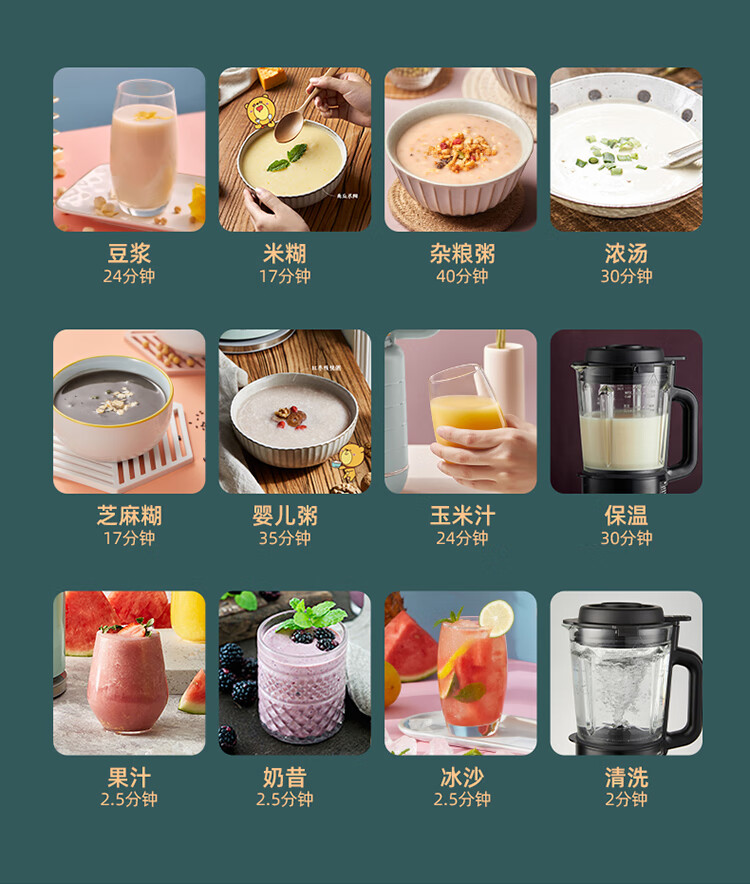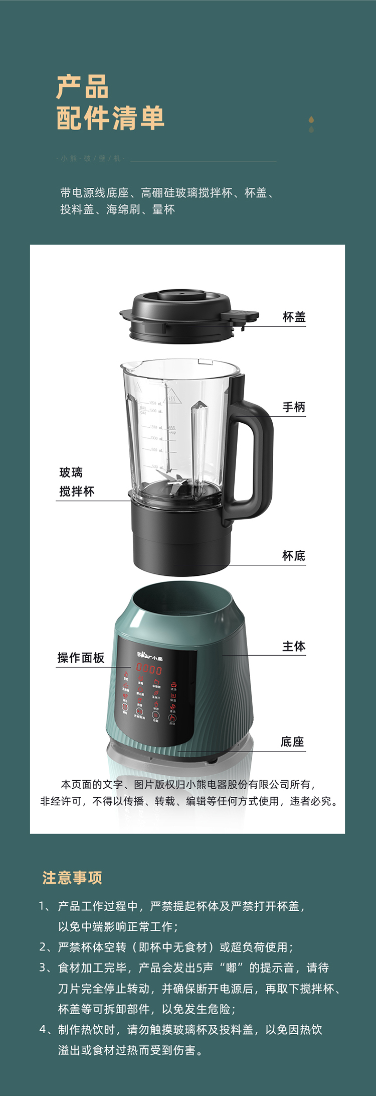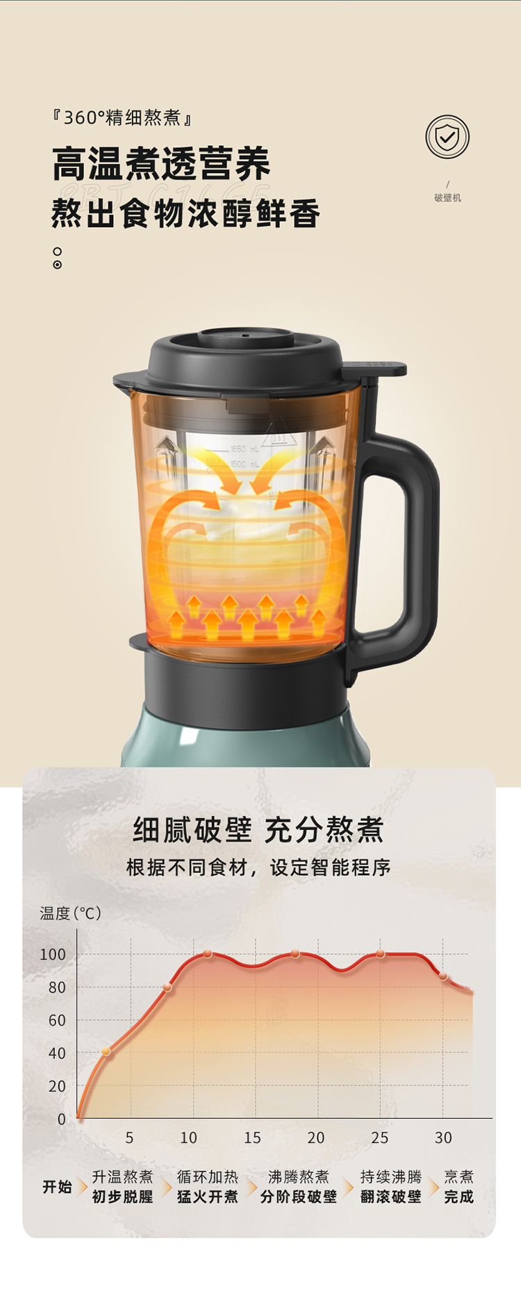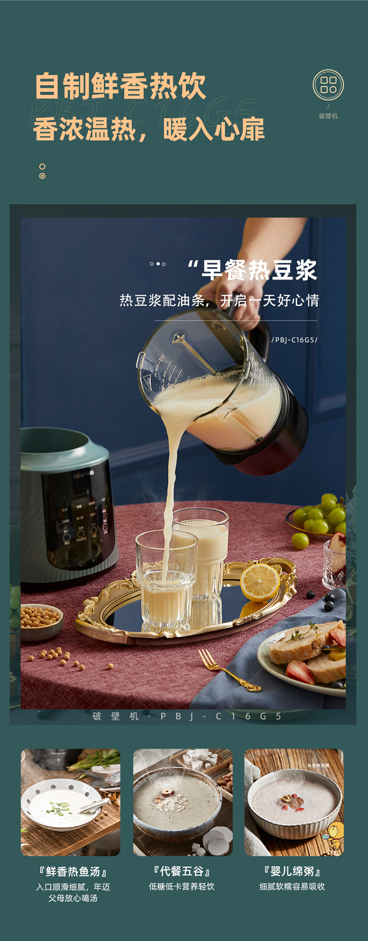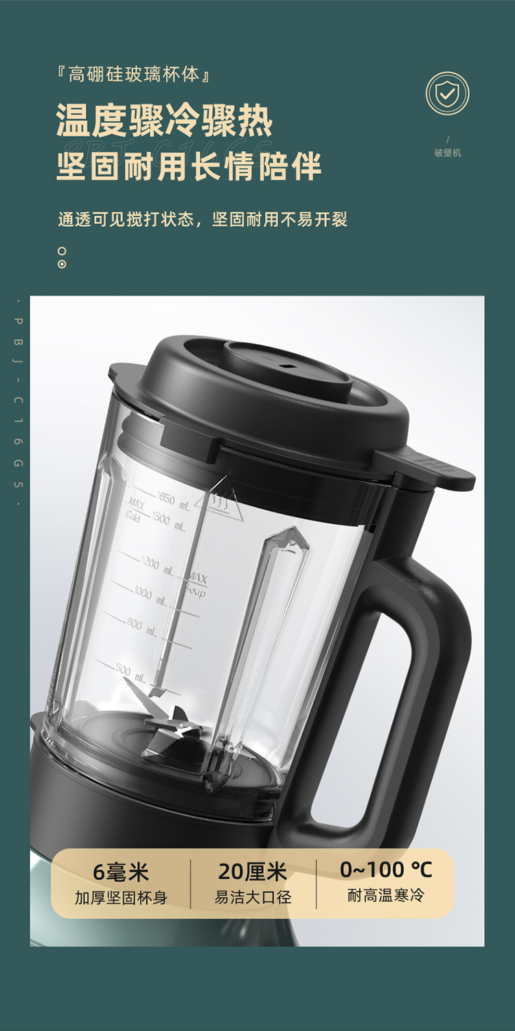 小熊(Bear)破壁机 多功能家用智能预约加热豆浆机料理机榨汁机果汁搅拌机辅食机PBJ-C16G5【ZMD安心系列】 自营