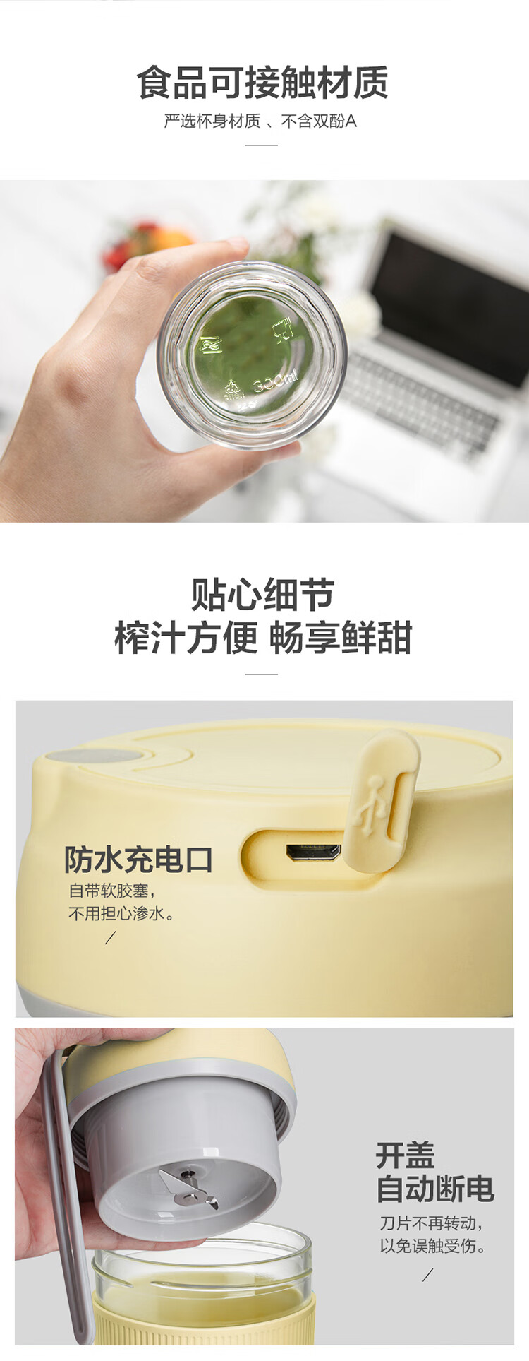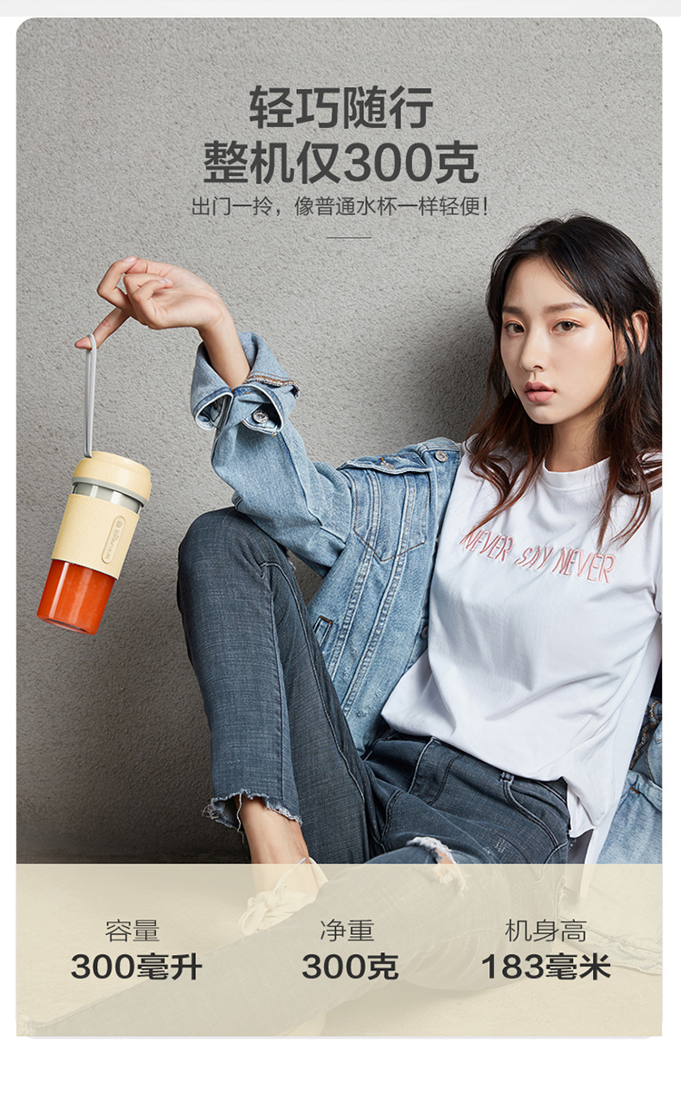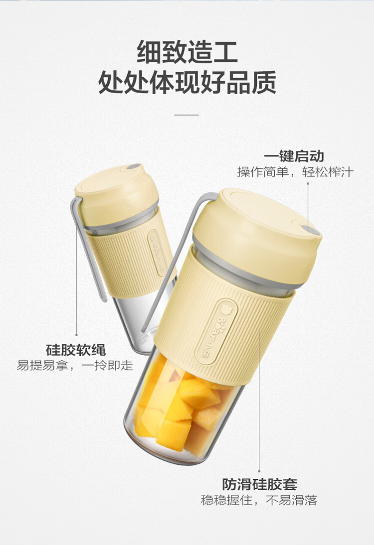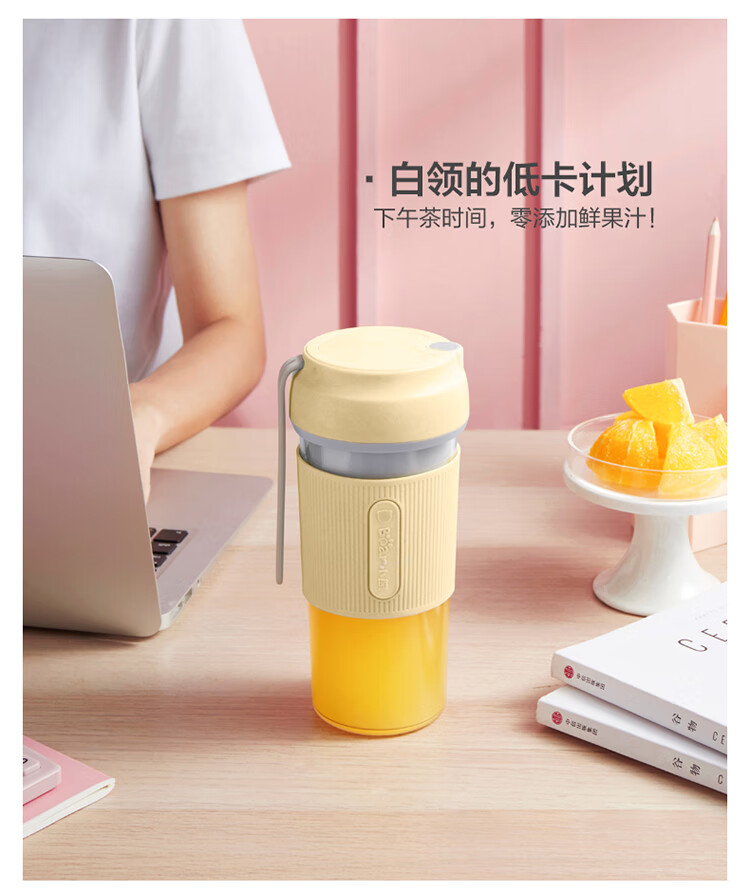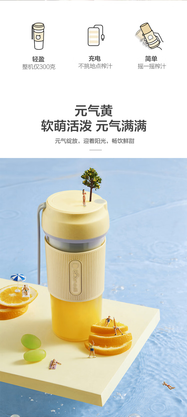 小熊(Bear)榨汁机充电榨汁杯 迷你果汁机随身杯多功能奶昔料理机 LLJ-P03G5 自营