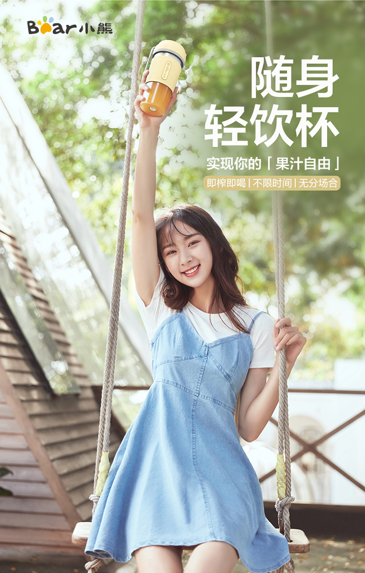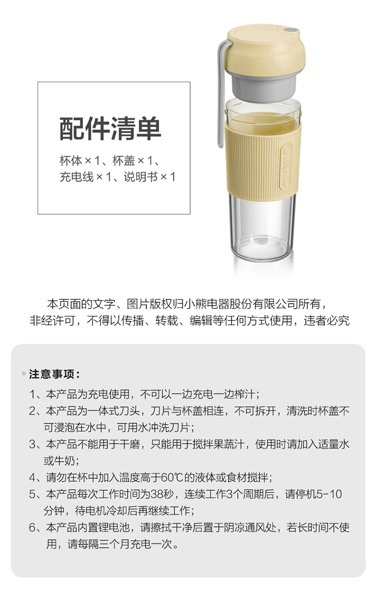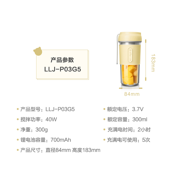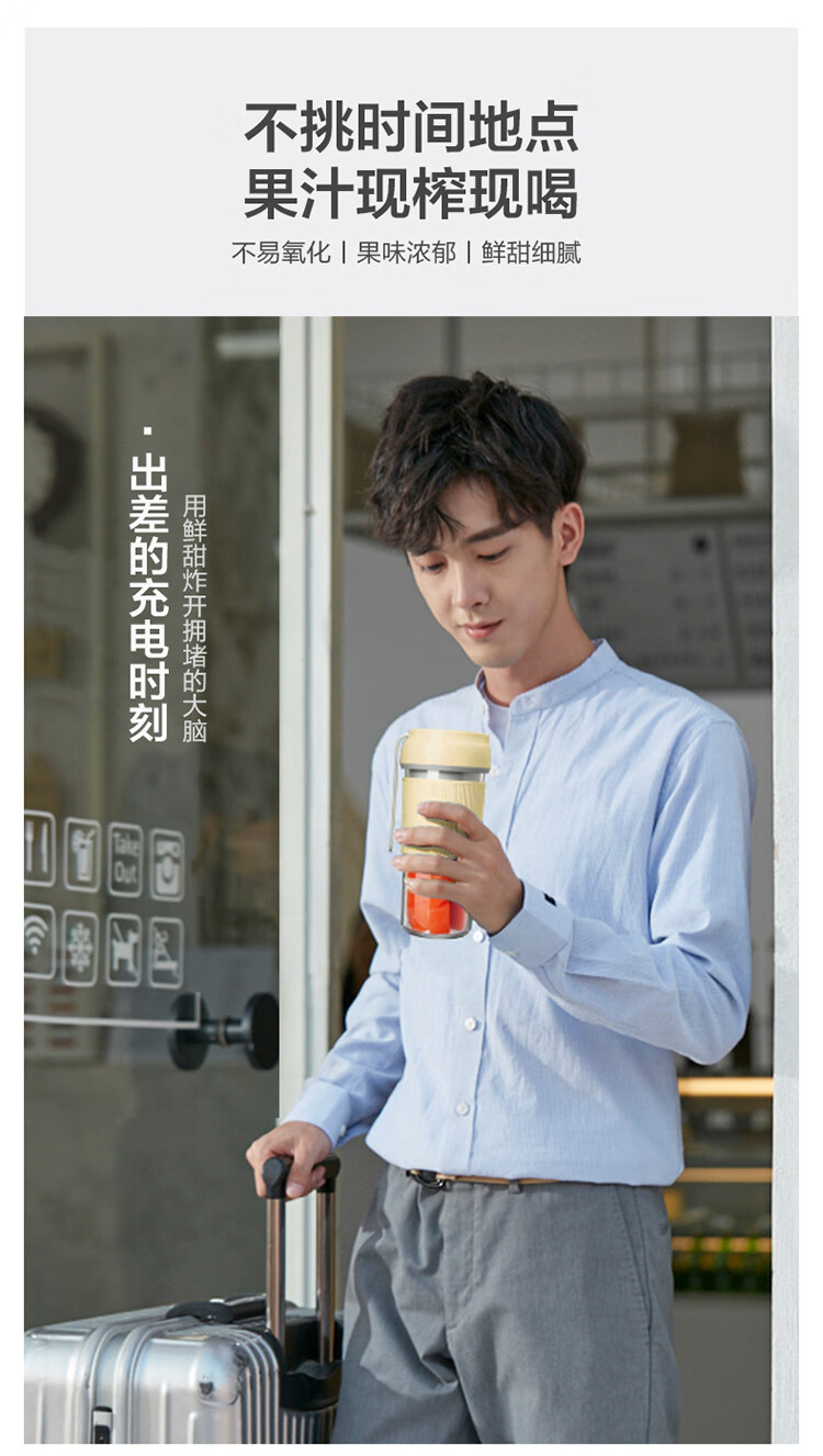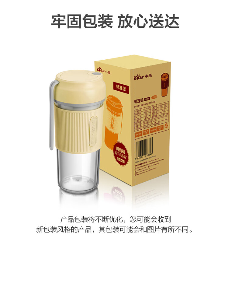 小熊(Bear)榨汁机充电榨汁杯 迷你果汁机随身杯多功能奶昔料理机 LLJ-P03G5 自营
