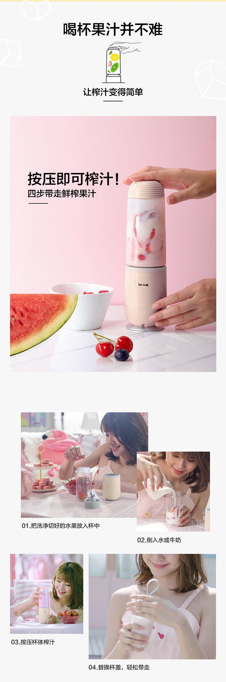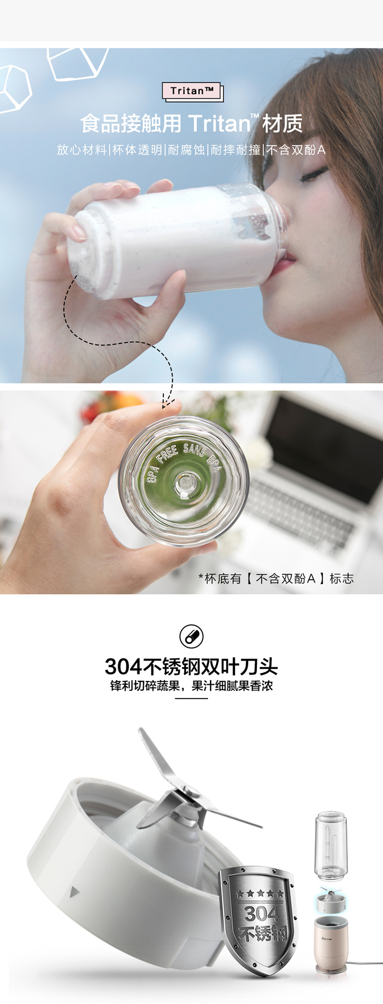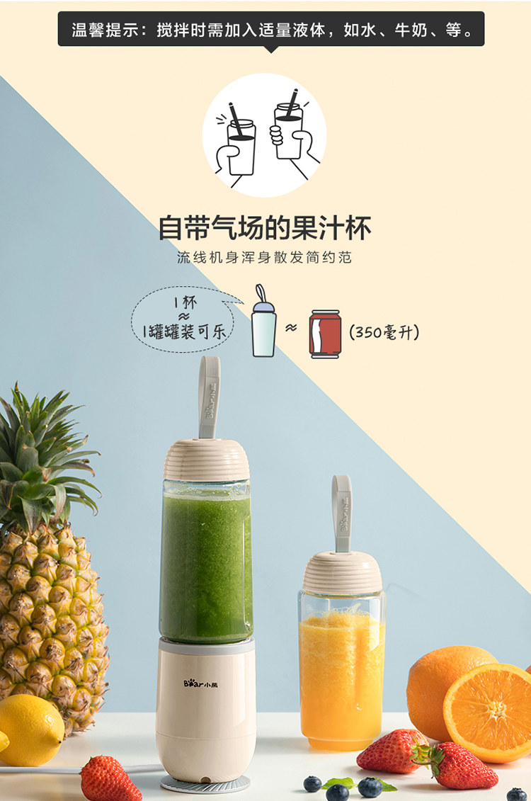 小熊(Bear)榨汁机随行杯迷你便携式双杯料理机果汁机LLJ-D04H5 自营