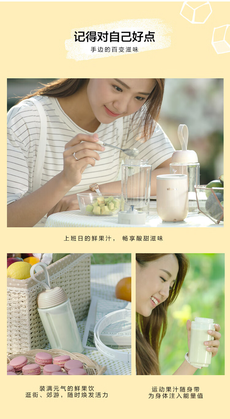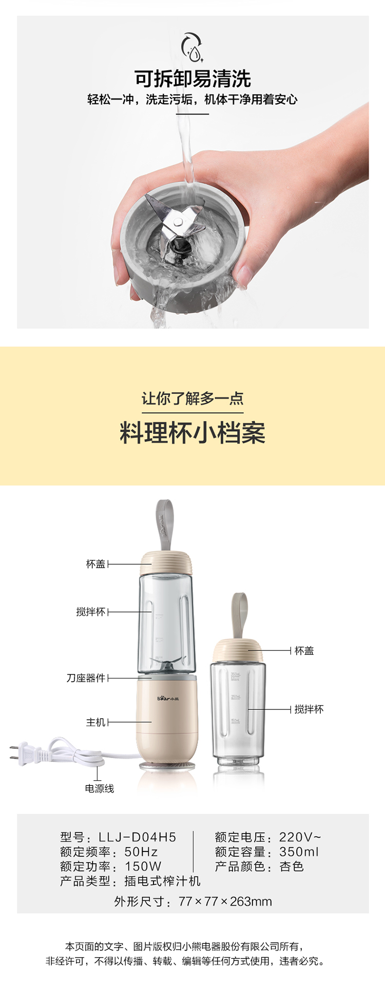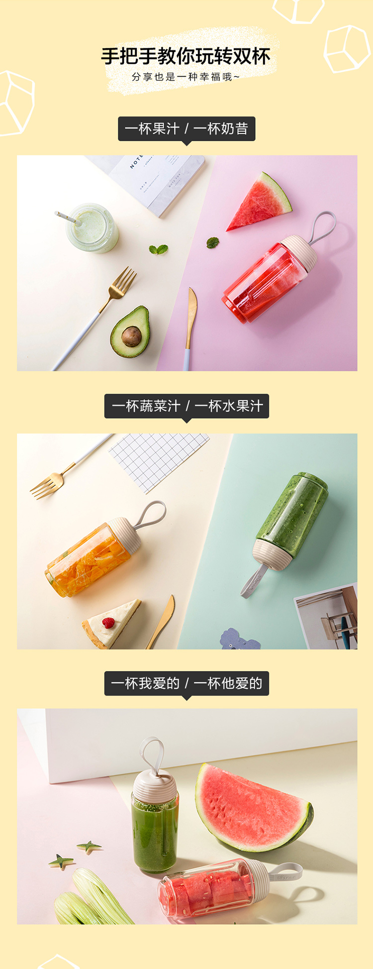 小熊(Bear)榨汁机随行杯迷你便携式双杯料理机果汁机LLJ-D04H5 自营