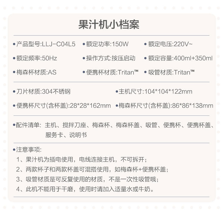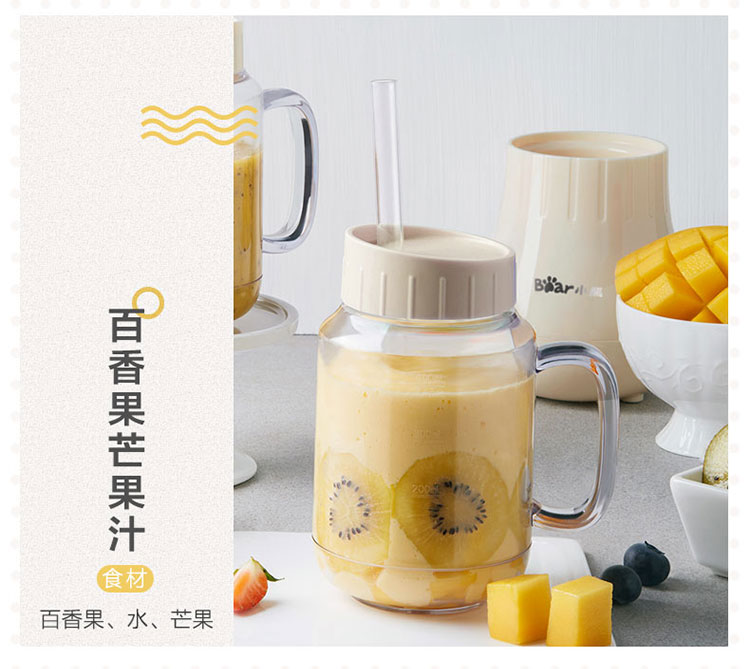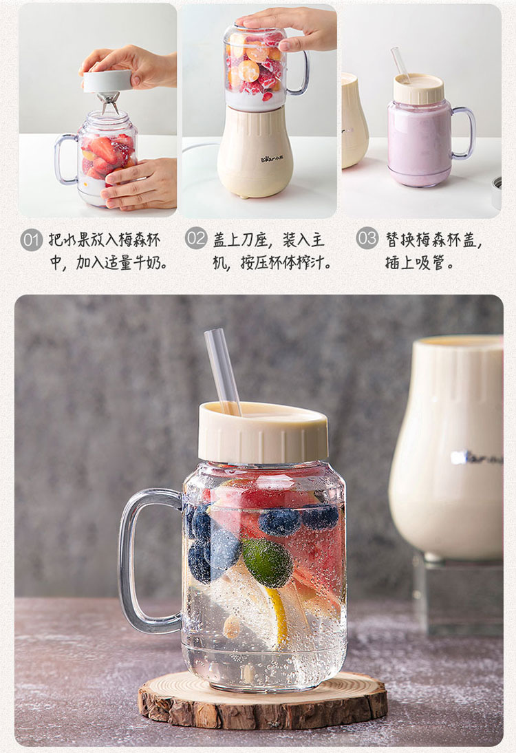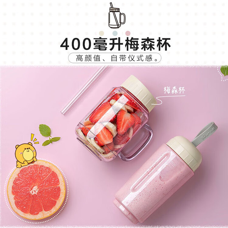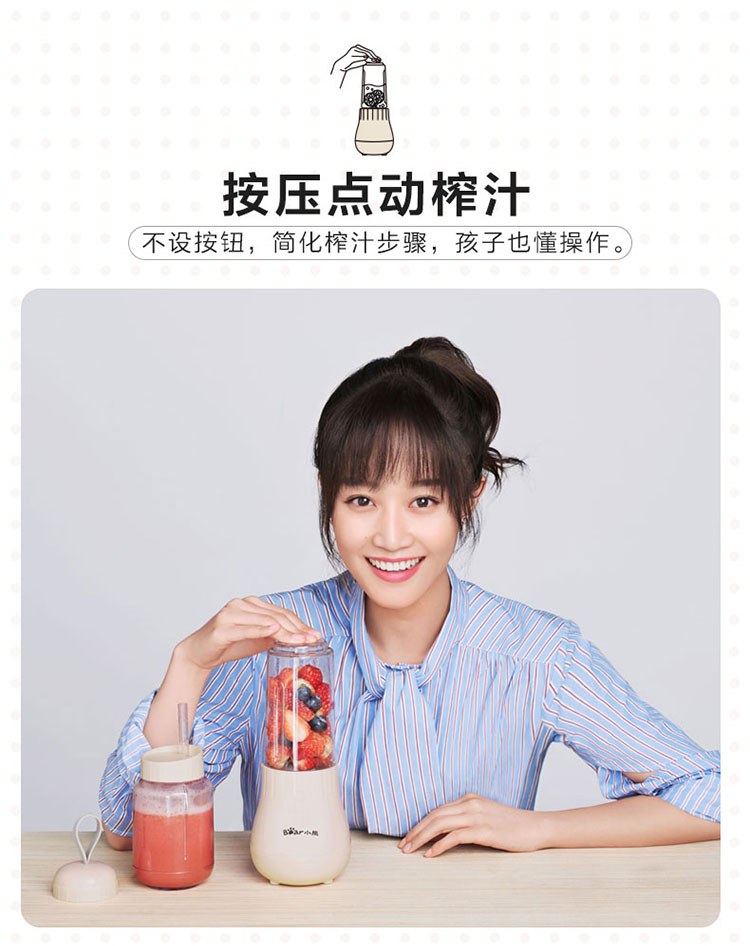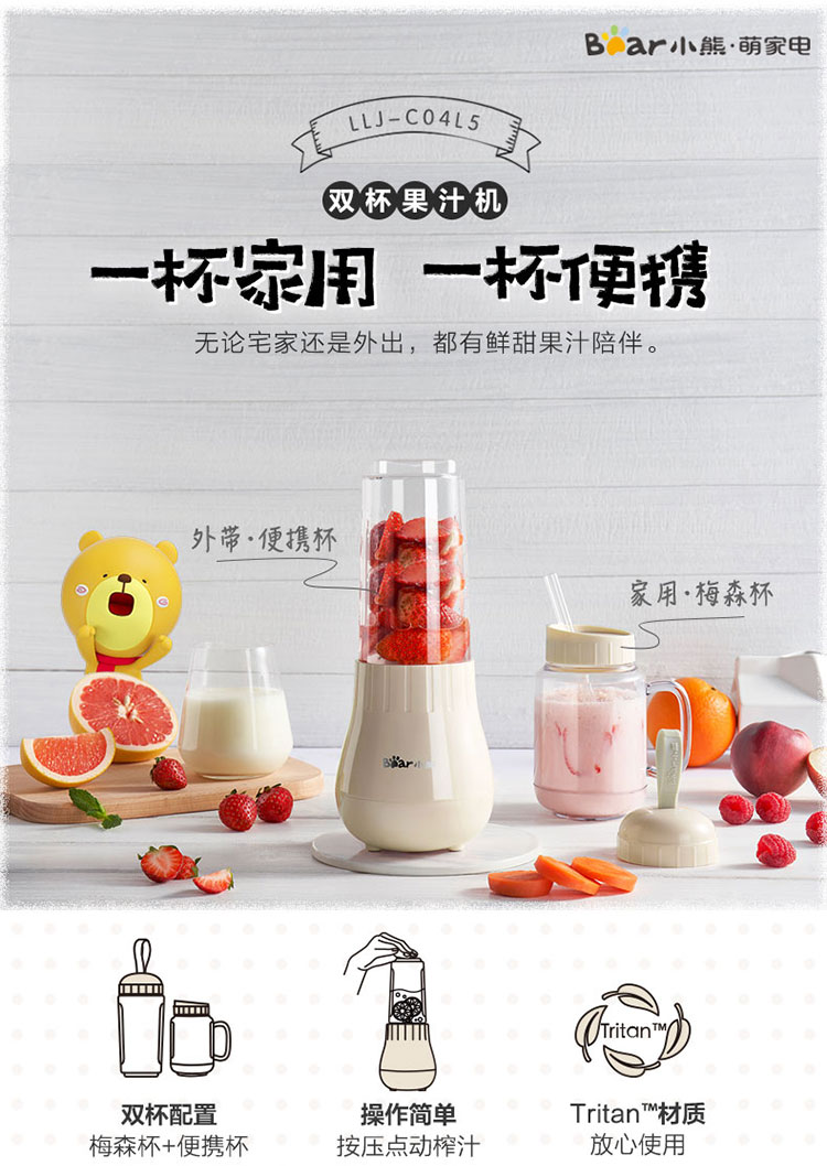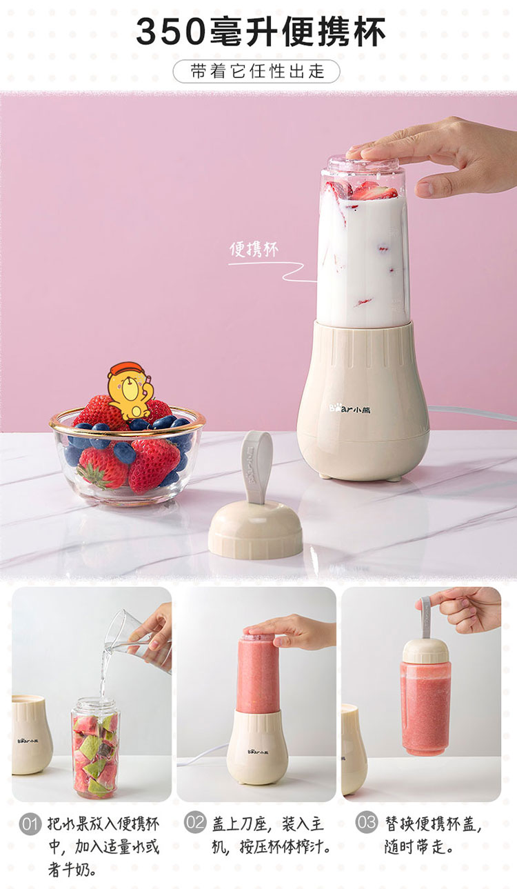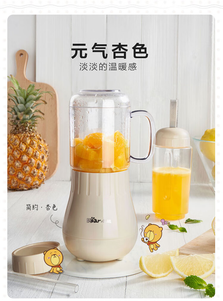 小熊(Bear)迷你便携式双杯多功能家用婴儿辅食料理机果汁机搅拌机 LLJ-C04L5 【ZMD安心系列】 自营