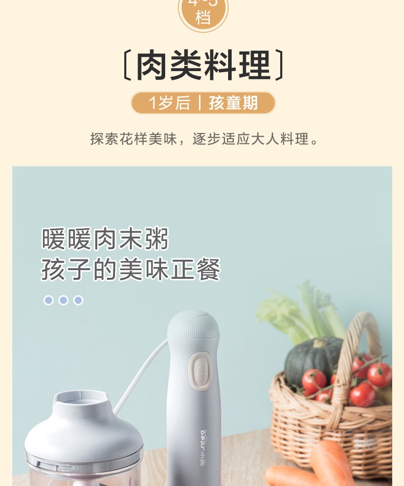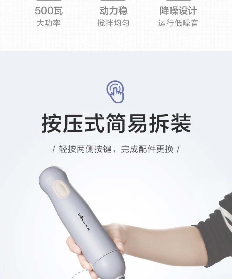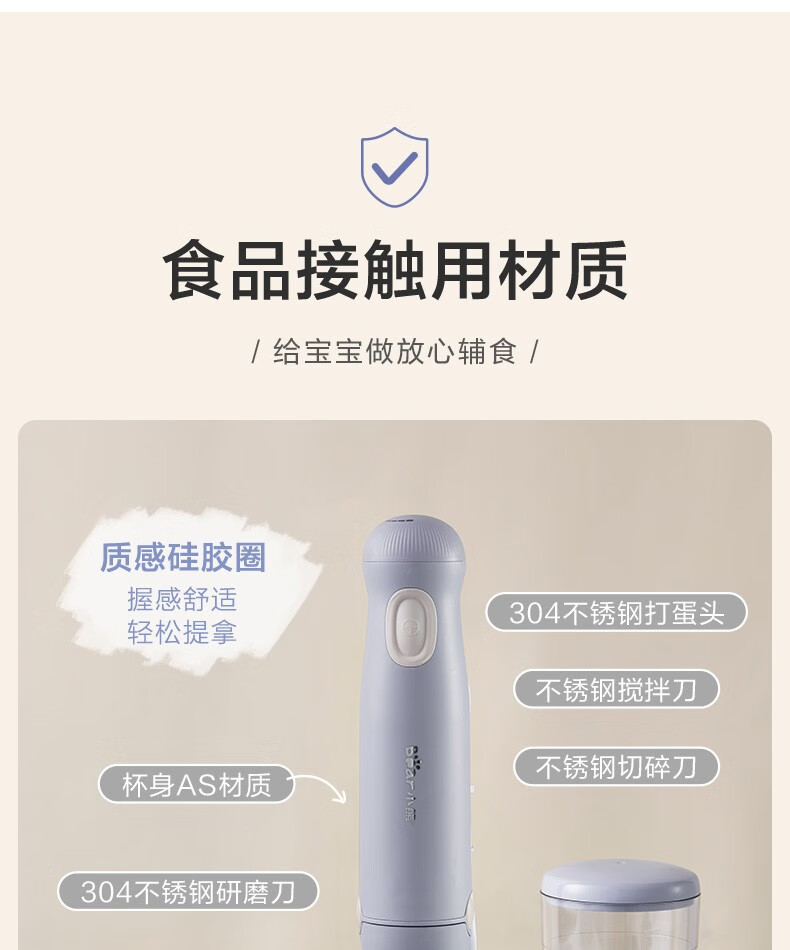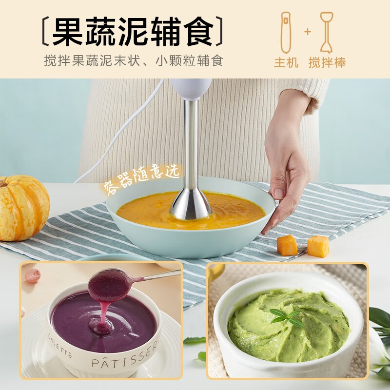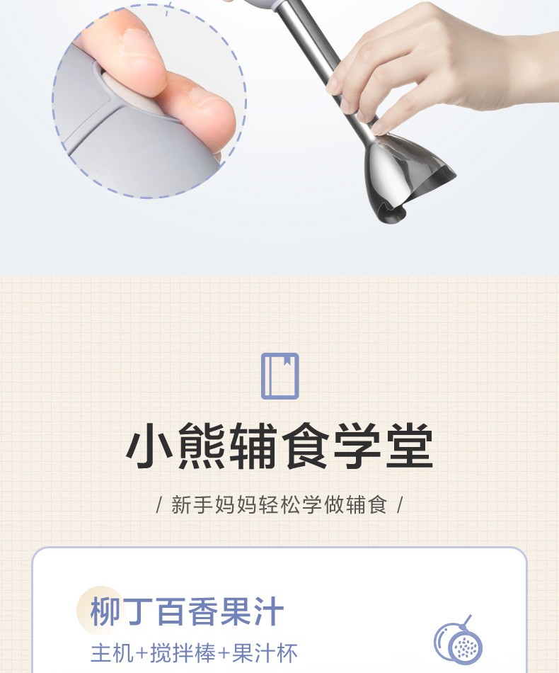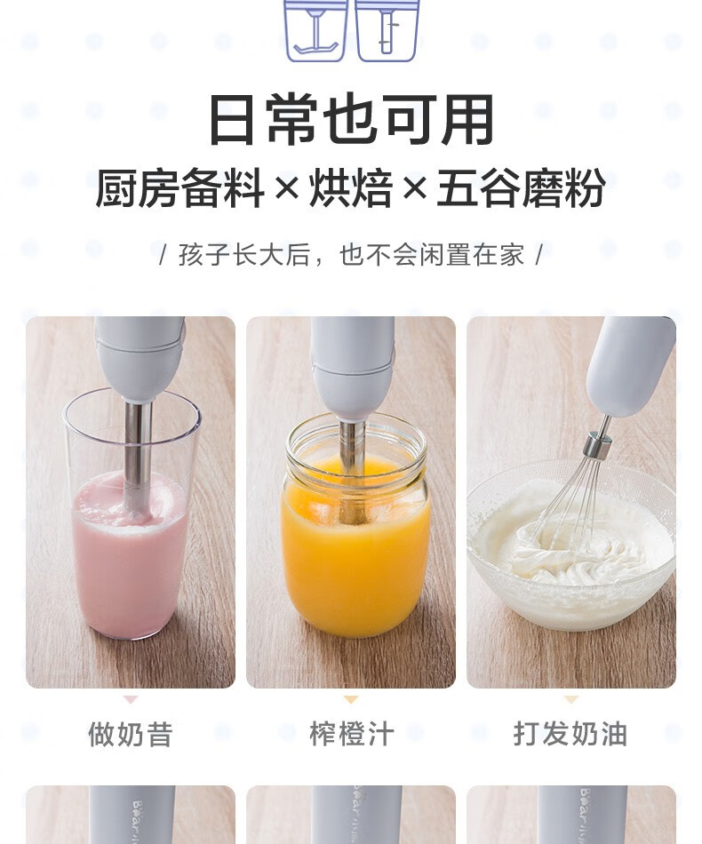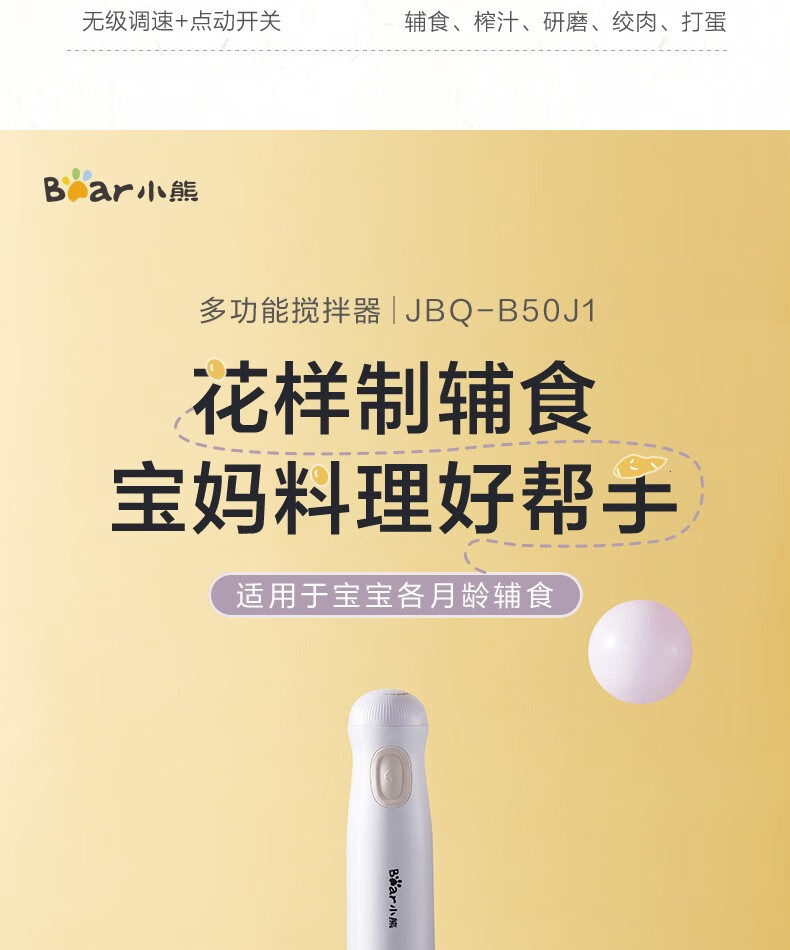小熊(Bear)料理棒辅食棒搅拌棒婴儿辅食料理棒研磨机打蛋器手持家用多功能搅拌器 JBQ-B50J1 自营