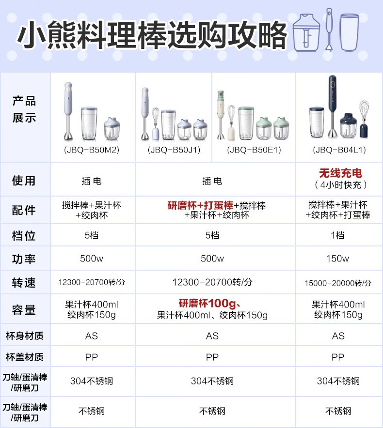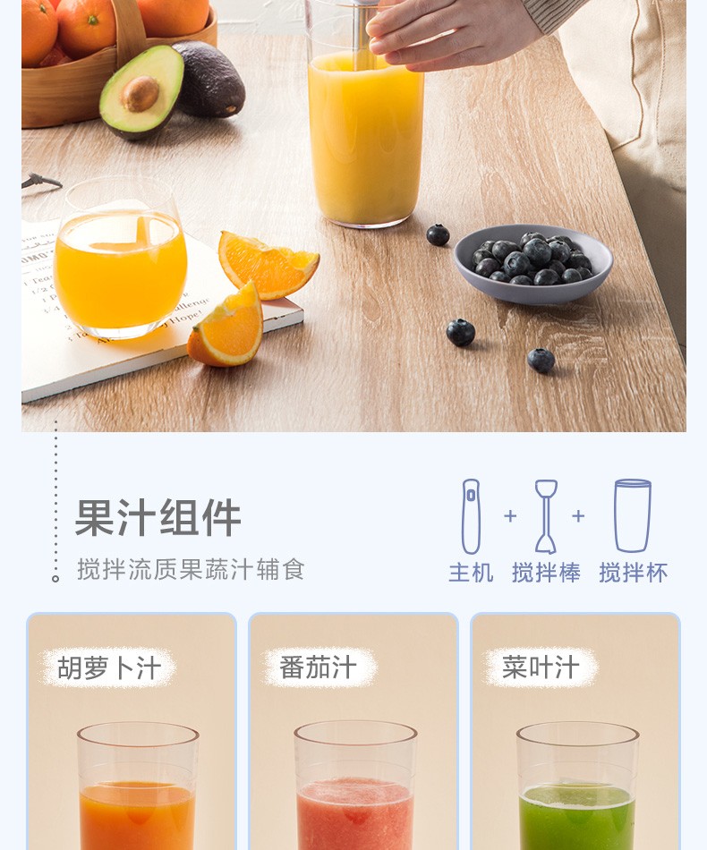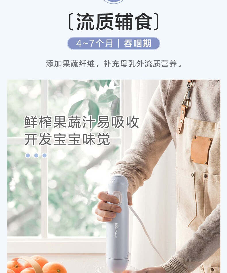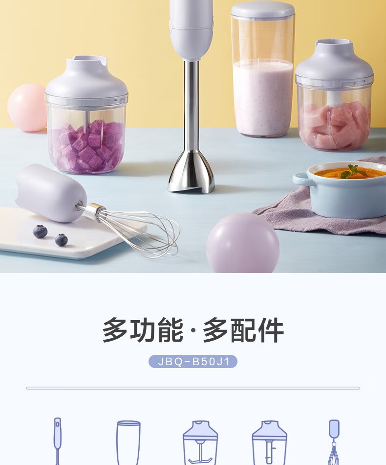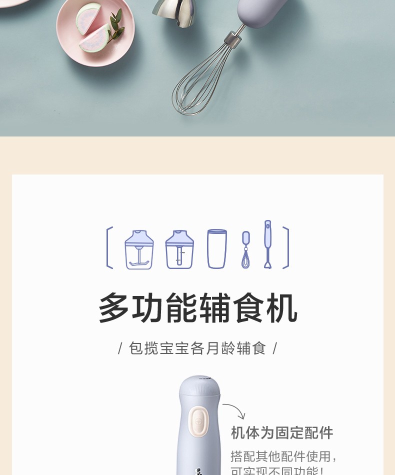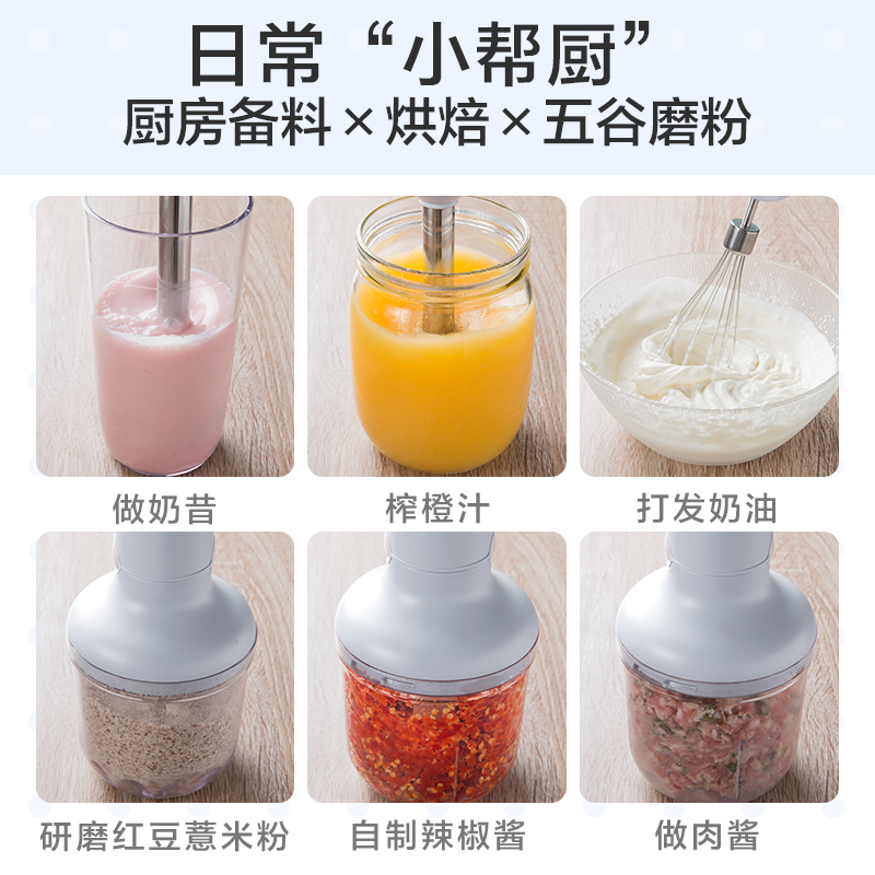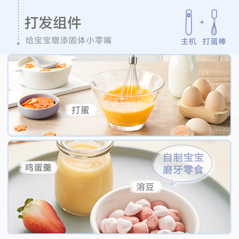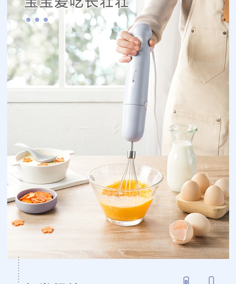 小熊(Bear)料理棒辅食棒搅拌棒婴儿辅食料理棒研磨机打蛋器手持家用多功能搅拌器 JBQ-B50J1 自营