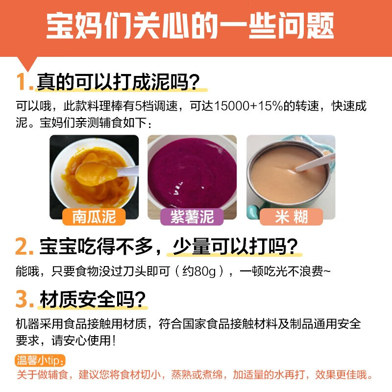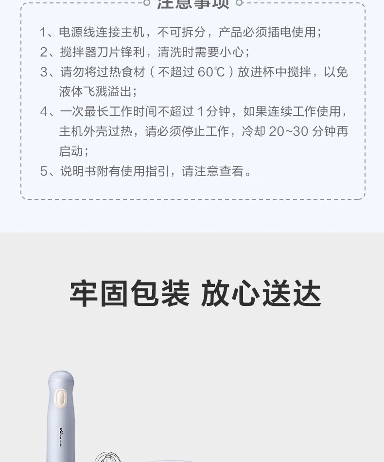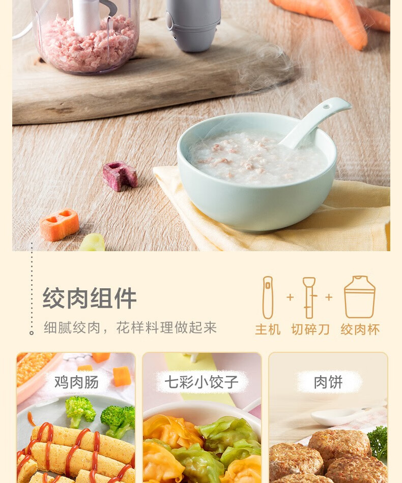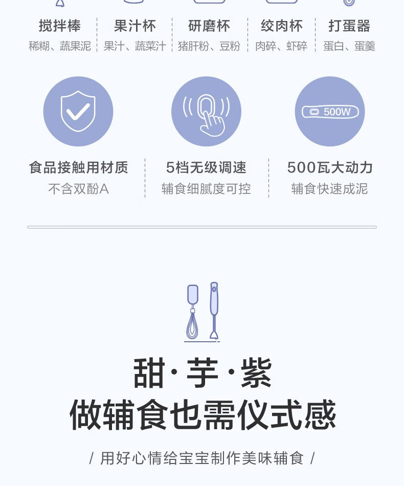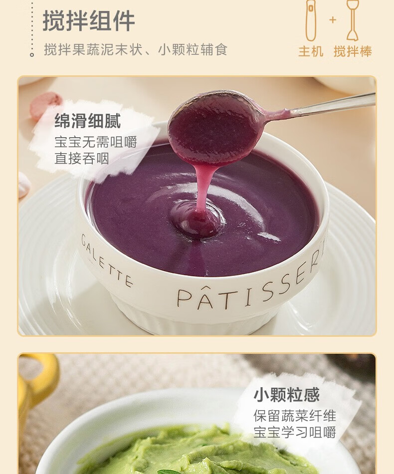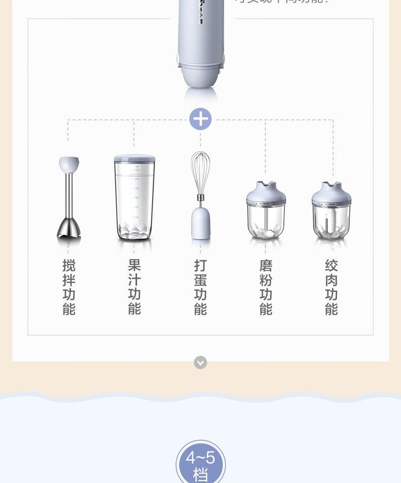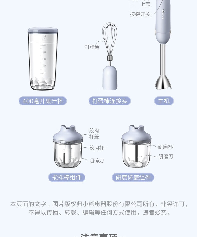 小熊(Bear)料理棒辅食棒搅拌棒婴儿辅食料理棒研磨机打蛋器手持家用多功能搅拌器 JBQ-B50J1 自营