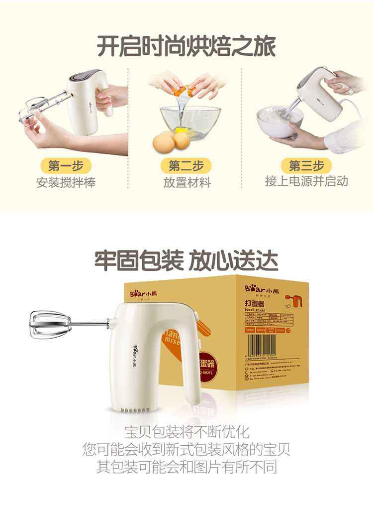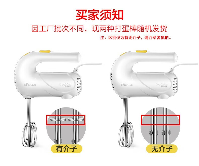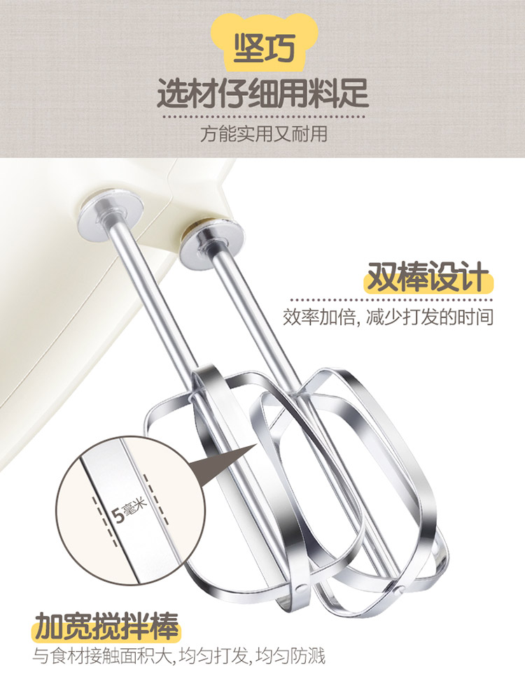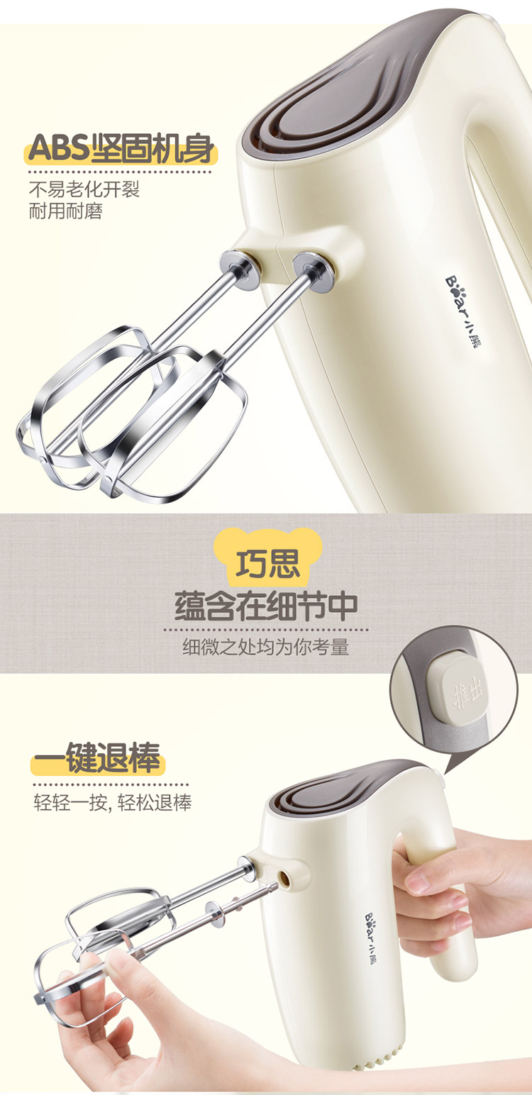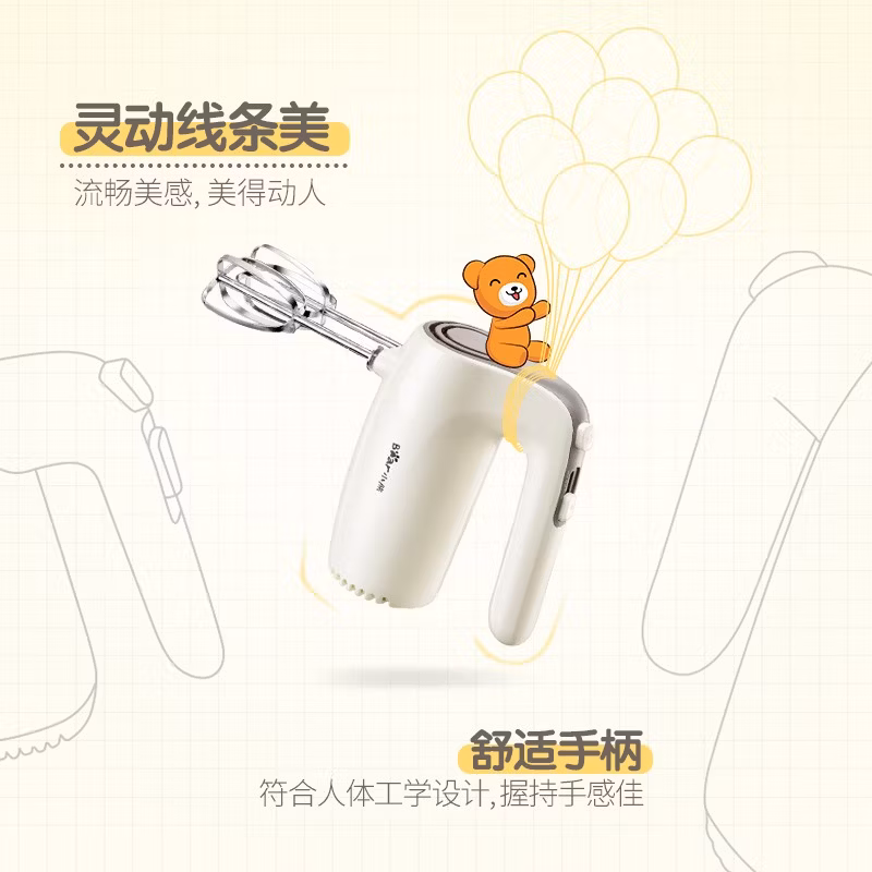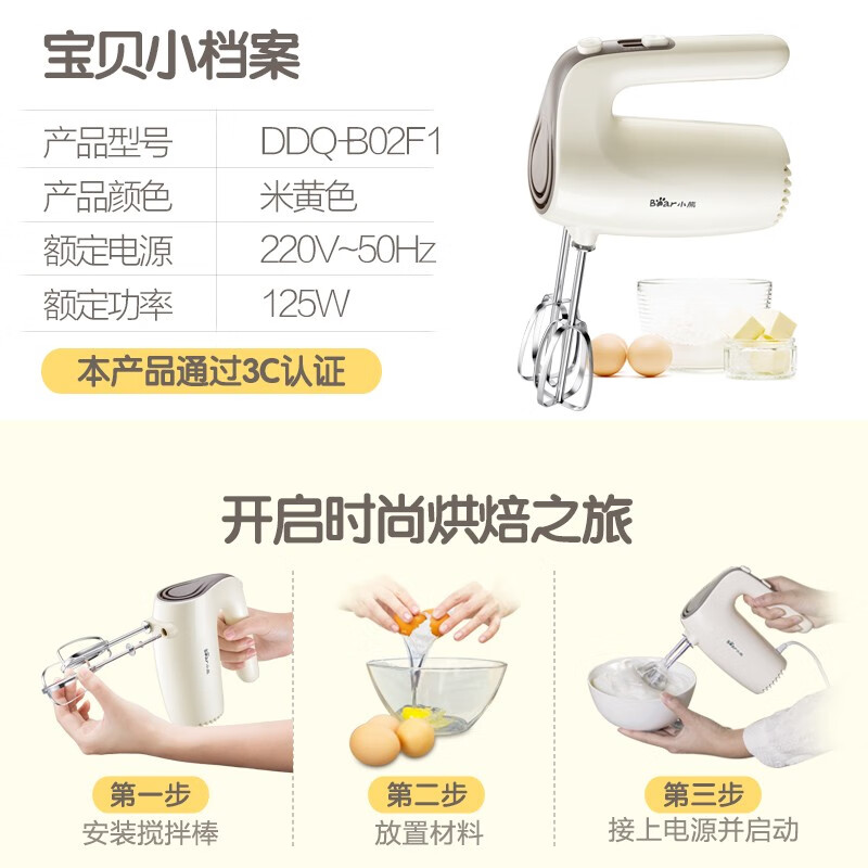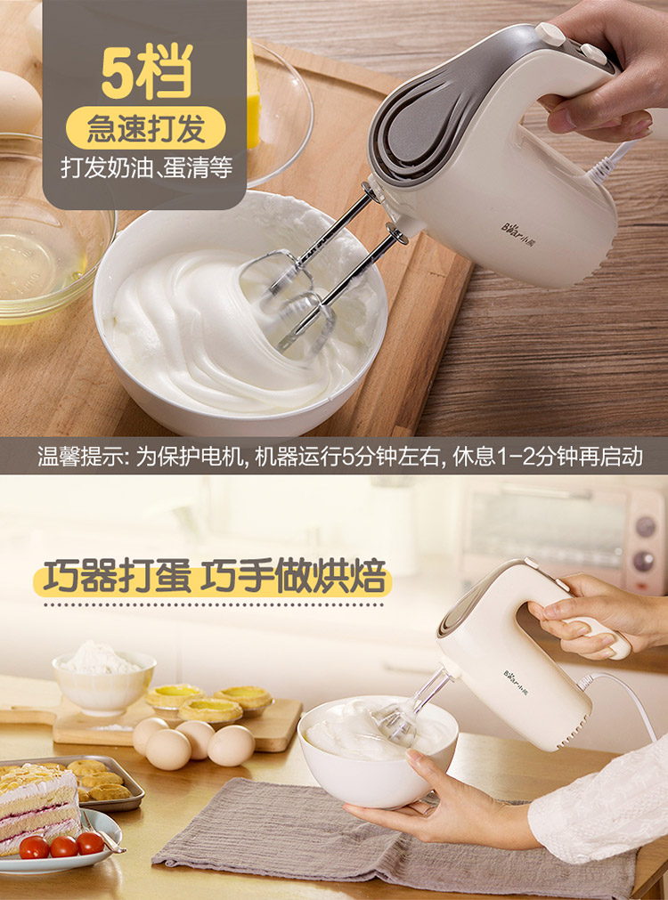 小熊(Bear) 电动手持打蛋器家用打蛋机小型烘焙搅拌器打发器打奶油机 双棒配置丨五档调速丨DDQ-B02F1 自营