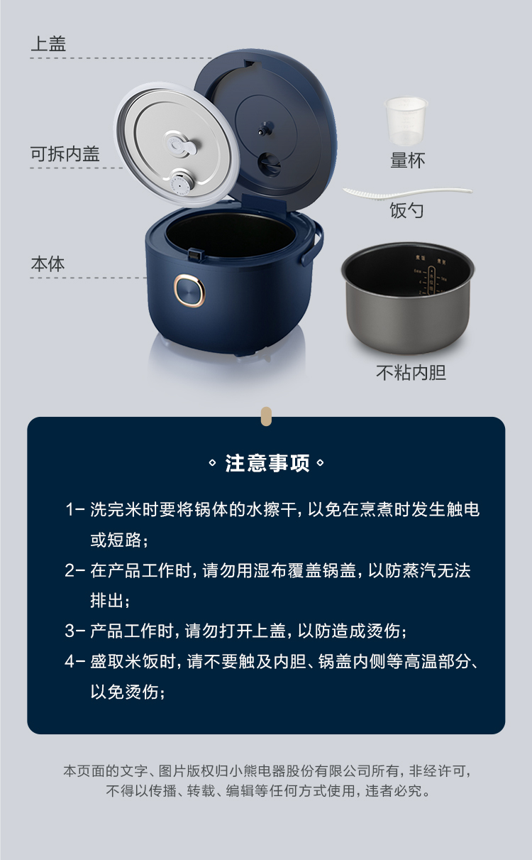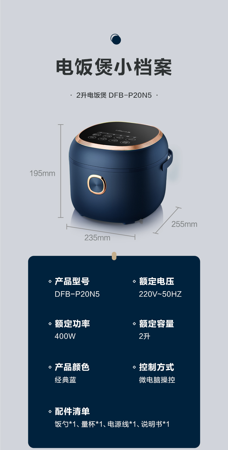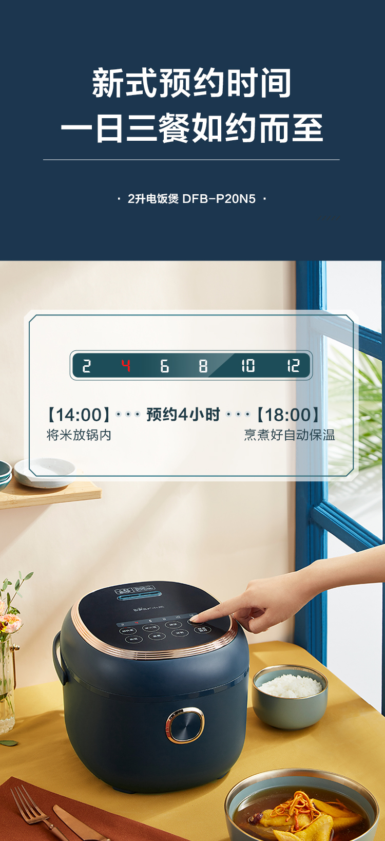 小熊(Bear)电饭煲 电饭锅家用2升智能预约不粘锅内胆迷你小2人多功能米饭锅 DFB-P20N5 自营