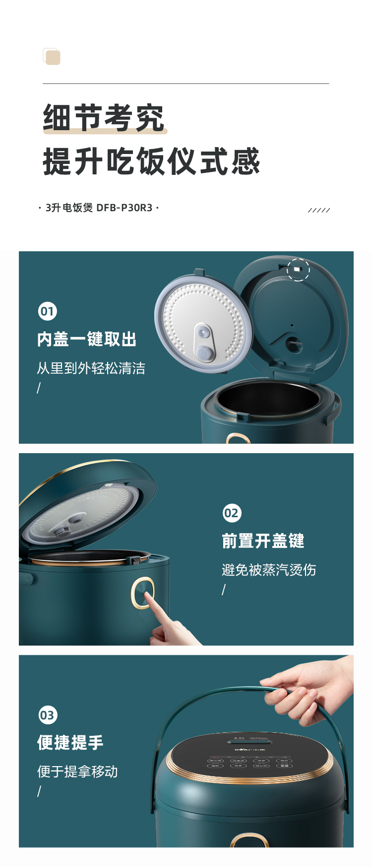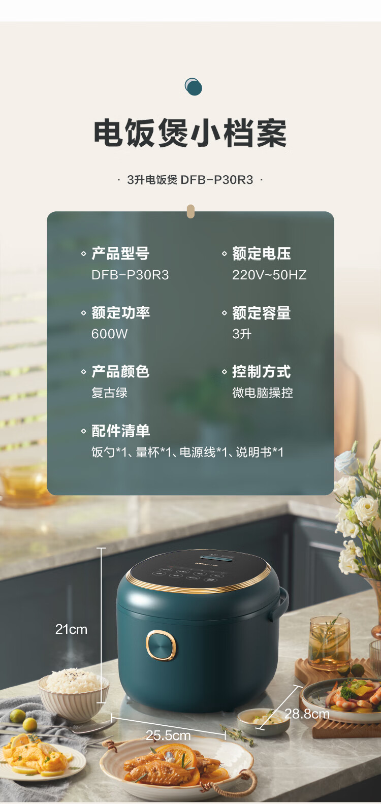 小熊(Bear)电饭煲 电饭锅 家用多功能3升智能预约定时迷你米饭锅蒸饭器2-3人 DFB-P30R3 自营