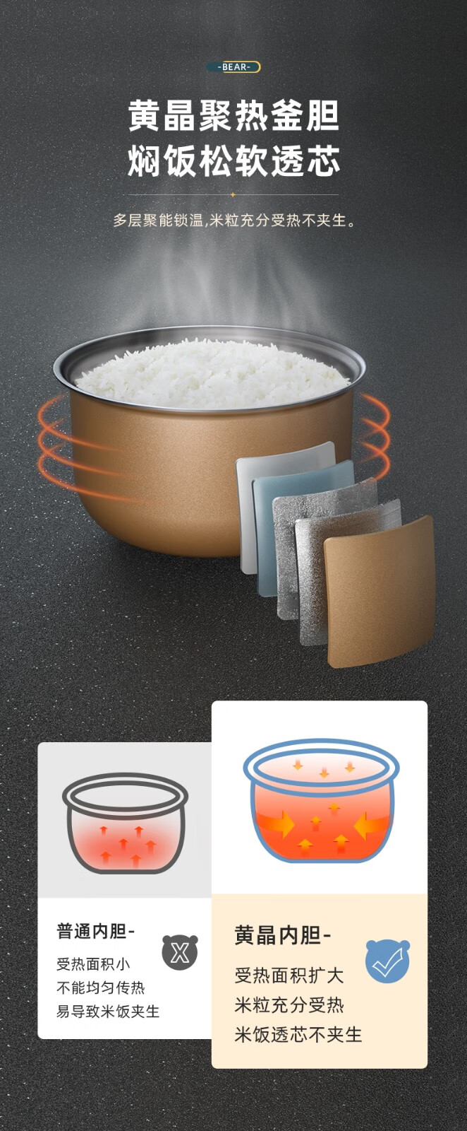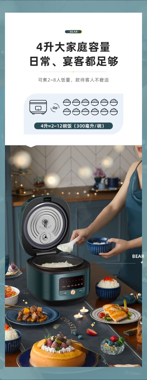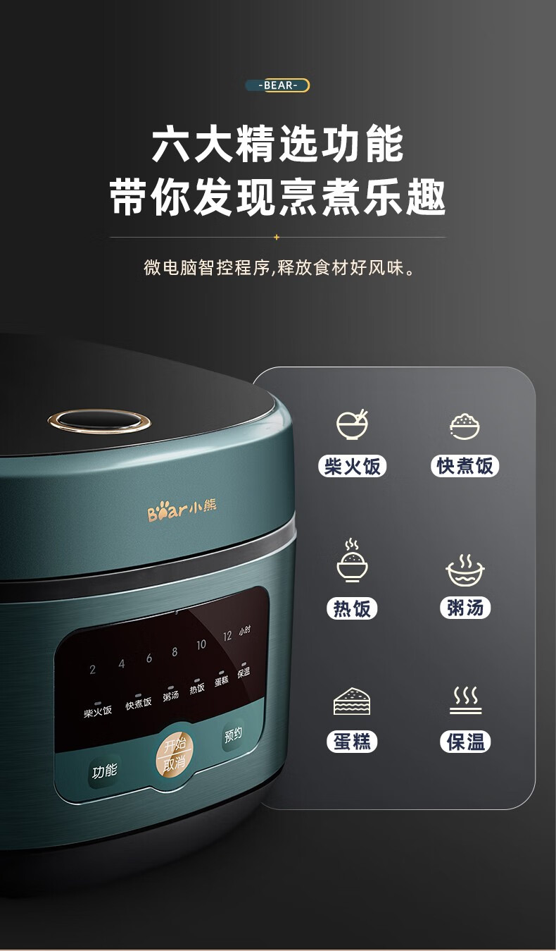 小熊(Bear)电饭煲电饭锅 4升家用智能预约定时不沾快煮饭不溢锅多功能一键柴火饭 配蒸笼 DFB-Q40L3 自营