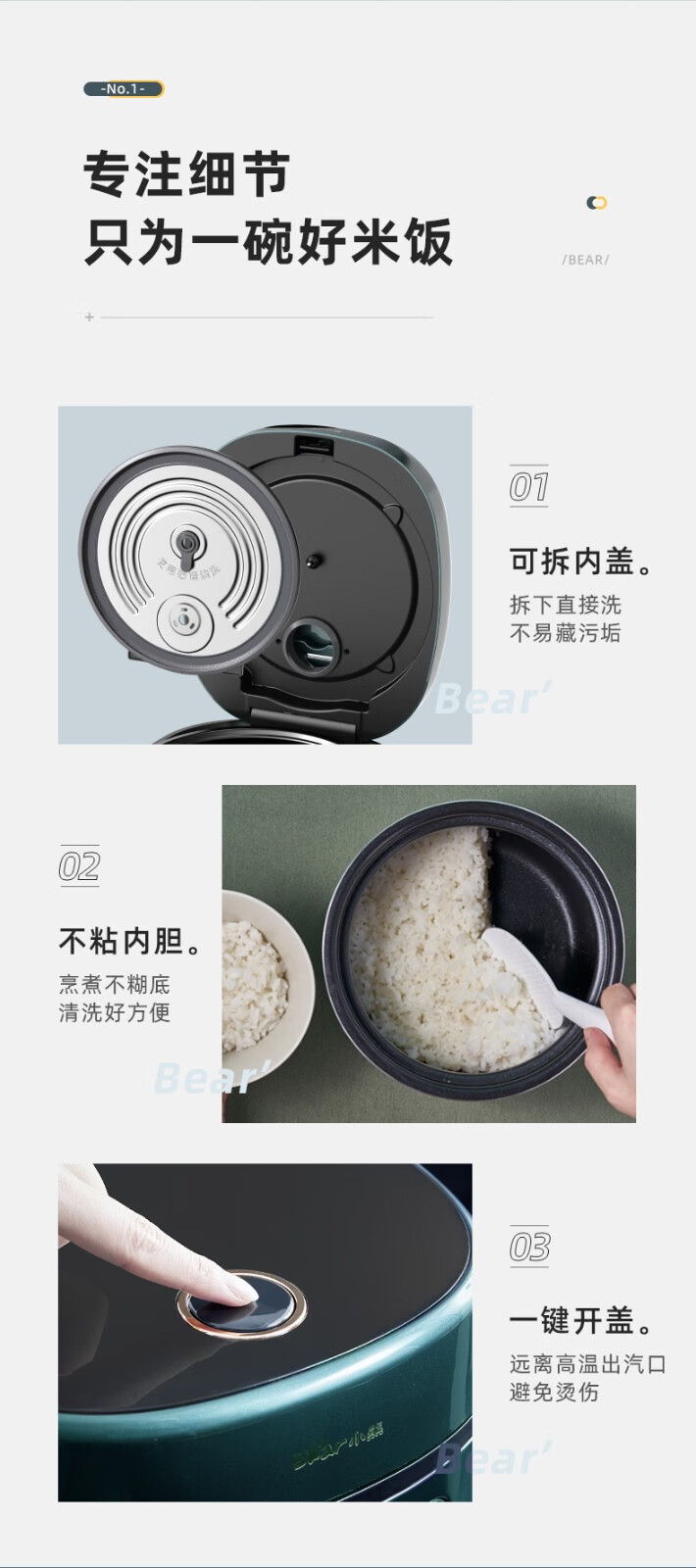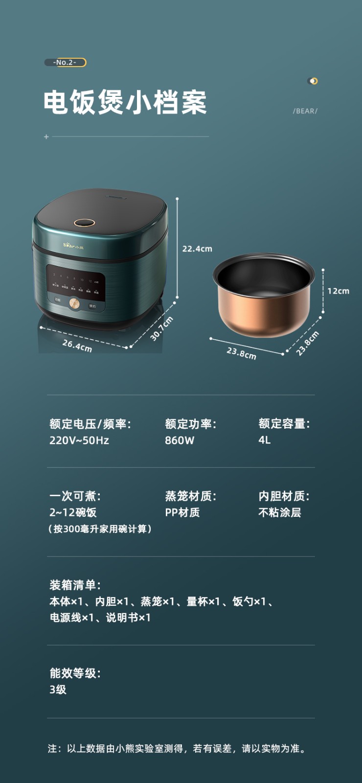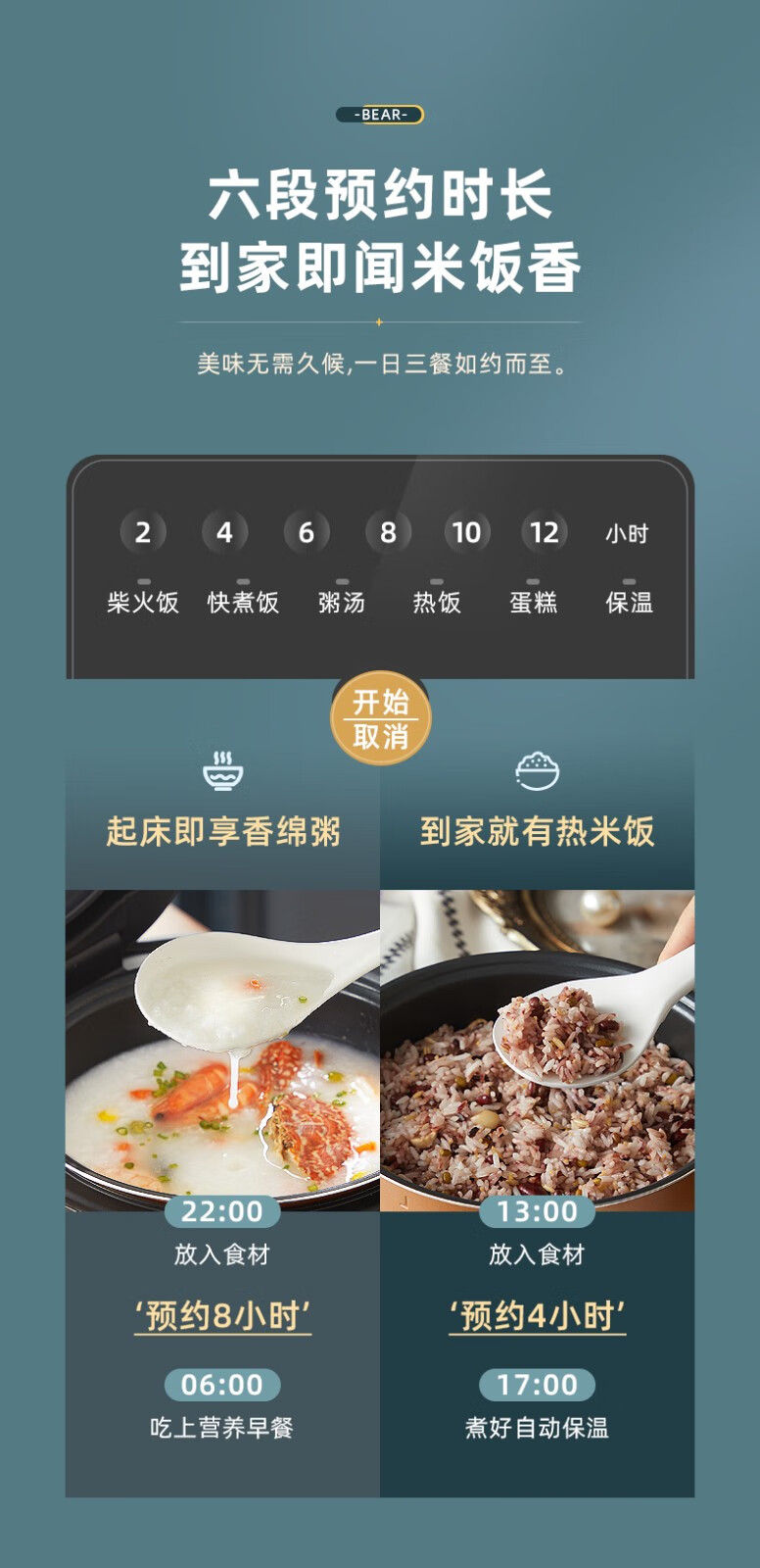 小熊(Bear)电饭煲电饭锅 4升家用智能预约定时不沾快煮饭不溢锅多功能一键柴火饭 配蒸笼 DFB-Q40L3 自营