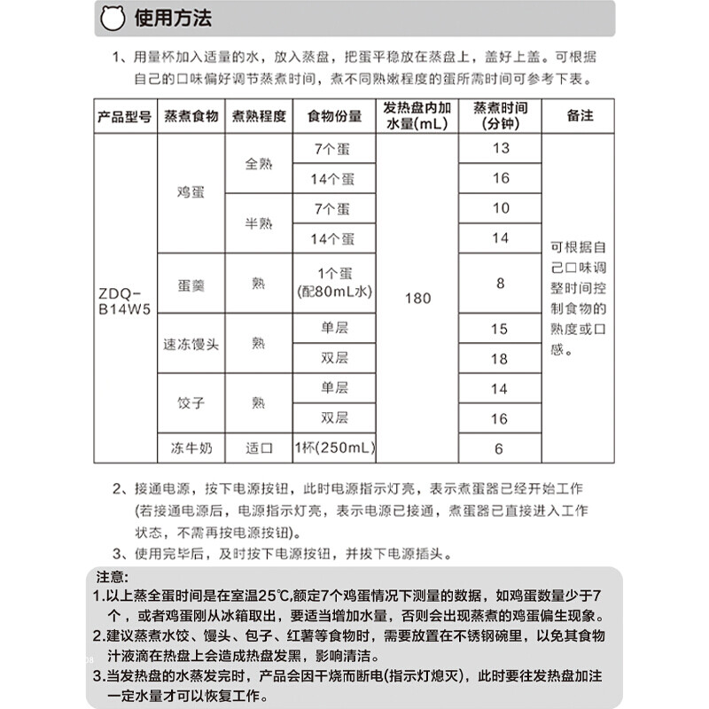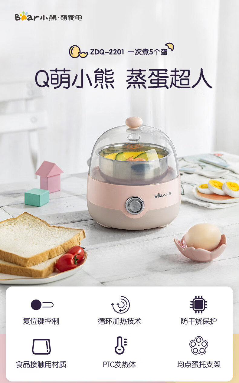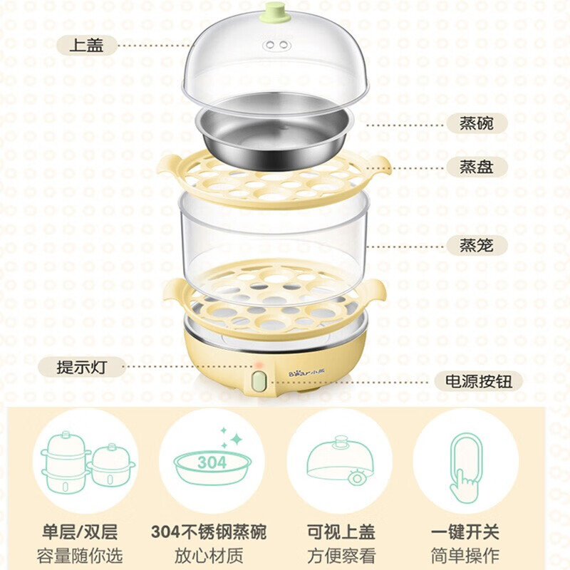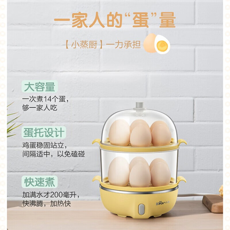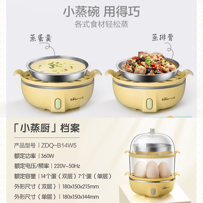 小熊(Bear)煮蛋器家用迷你蒸蛋器早餐鸡蛋羹机多功能神器小型蒸鸡蛋器蒸蛋机炖蛋器防干烧自动断电 【双层煮14个蛋 】配不锈钢蒸碗ZDQ-B14W5 自营