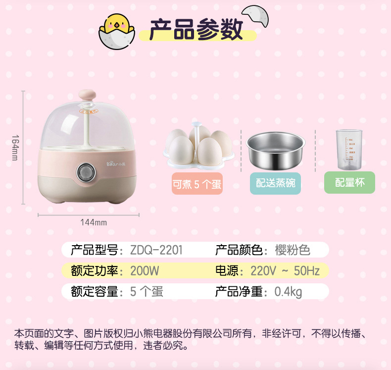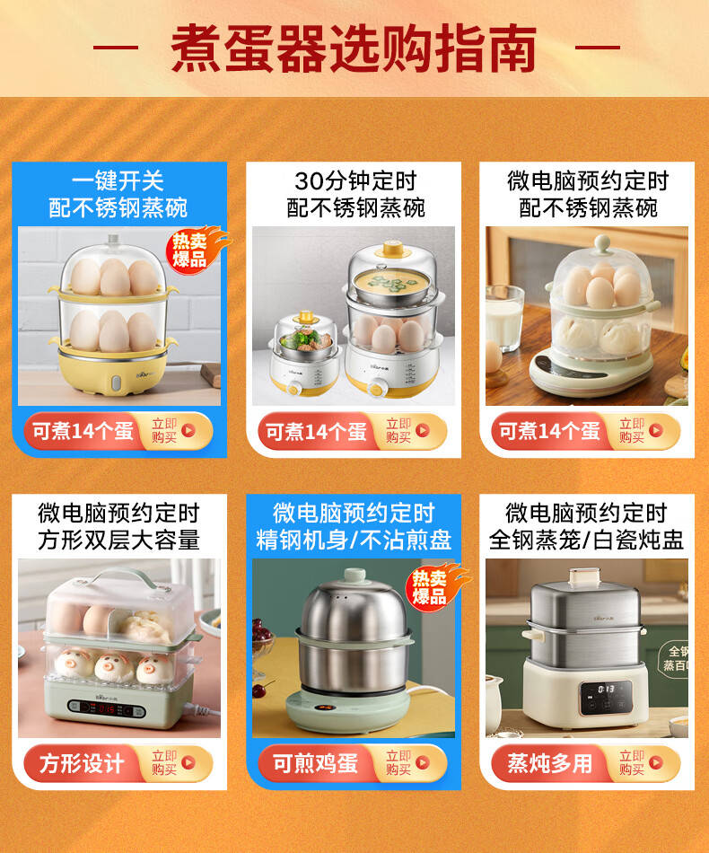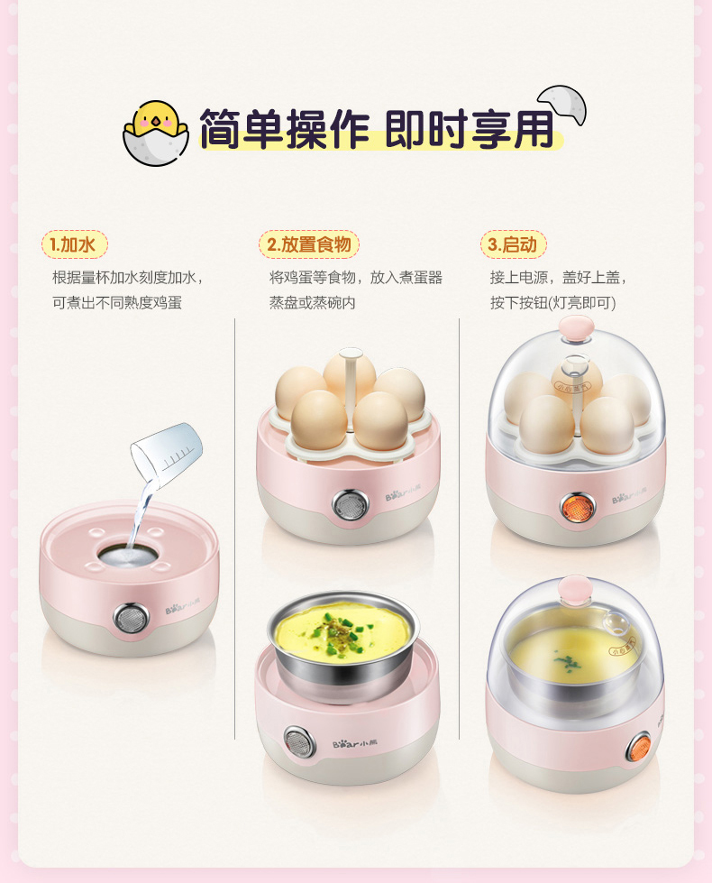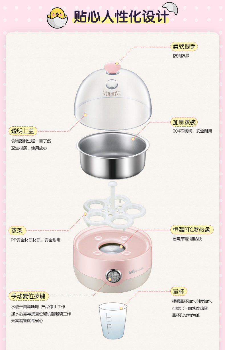小熊(Bear)煮蛋器家用迷你蒸蛋器早餐鸡蛋羹机多功能神器小型蒸鸡蛋器蒸蛋机炖蛋器防干烧自动断电 【双层煮14个蛋 】配不锈钢蒸碗ZDQ-B14W5 自营