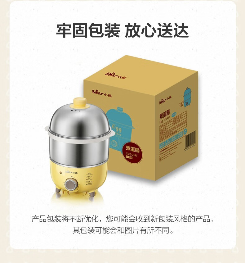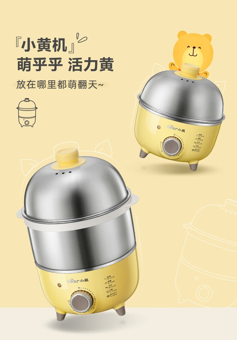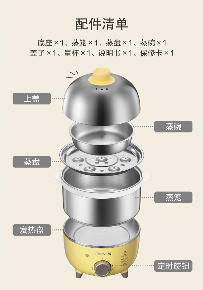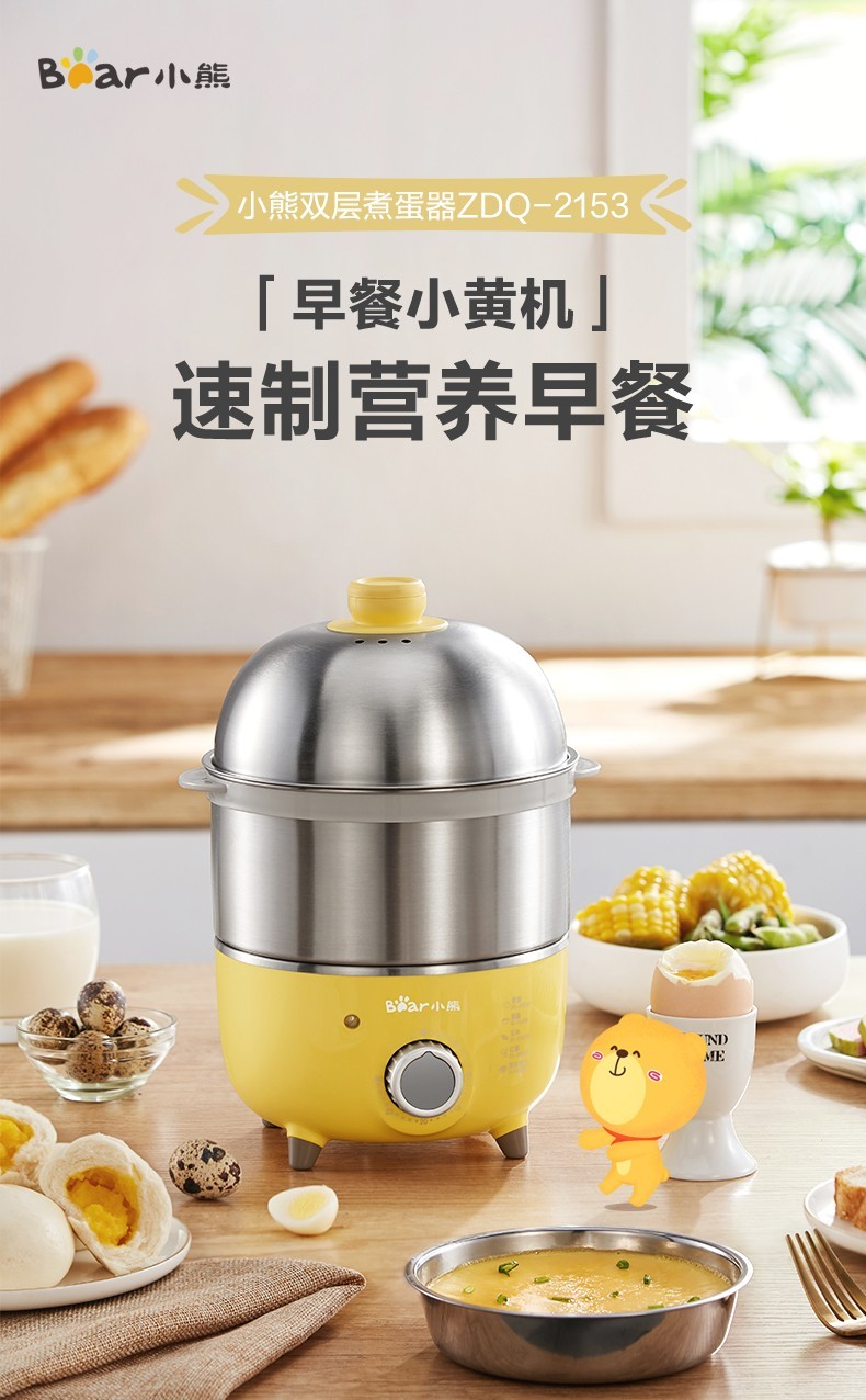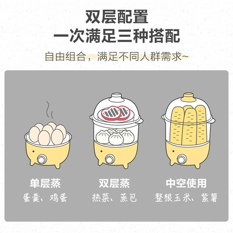 小熊(Bear) 双层定时煮蛋器蒸蛋器迷你煮蛋神器不锈钢早餐煮蛋器 可蒸14个蛋 ZDQ-2153 304不锈钢机身+30分钟定时 自营