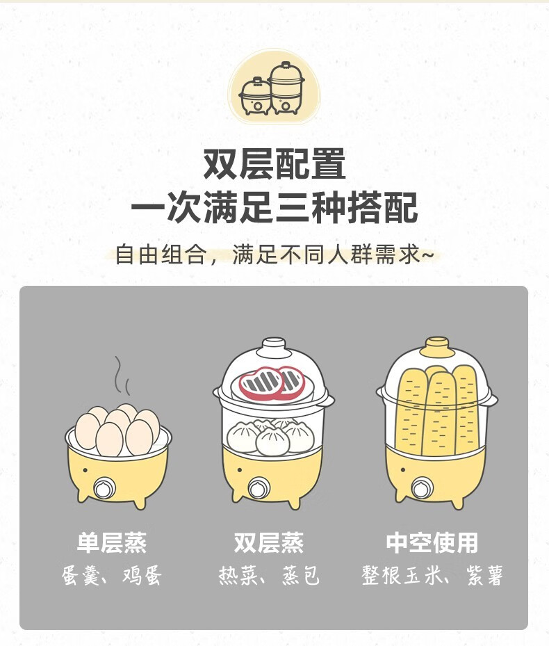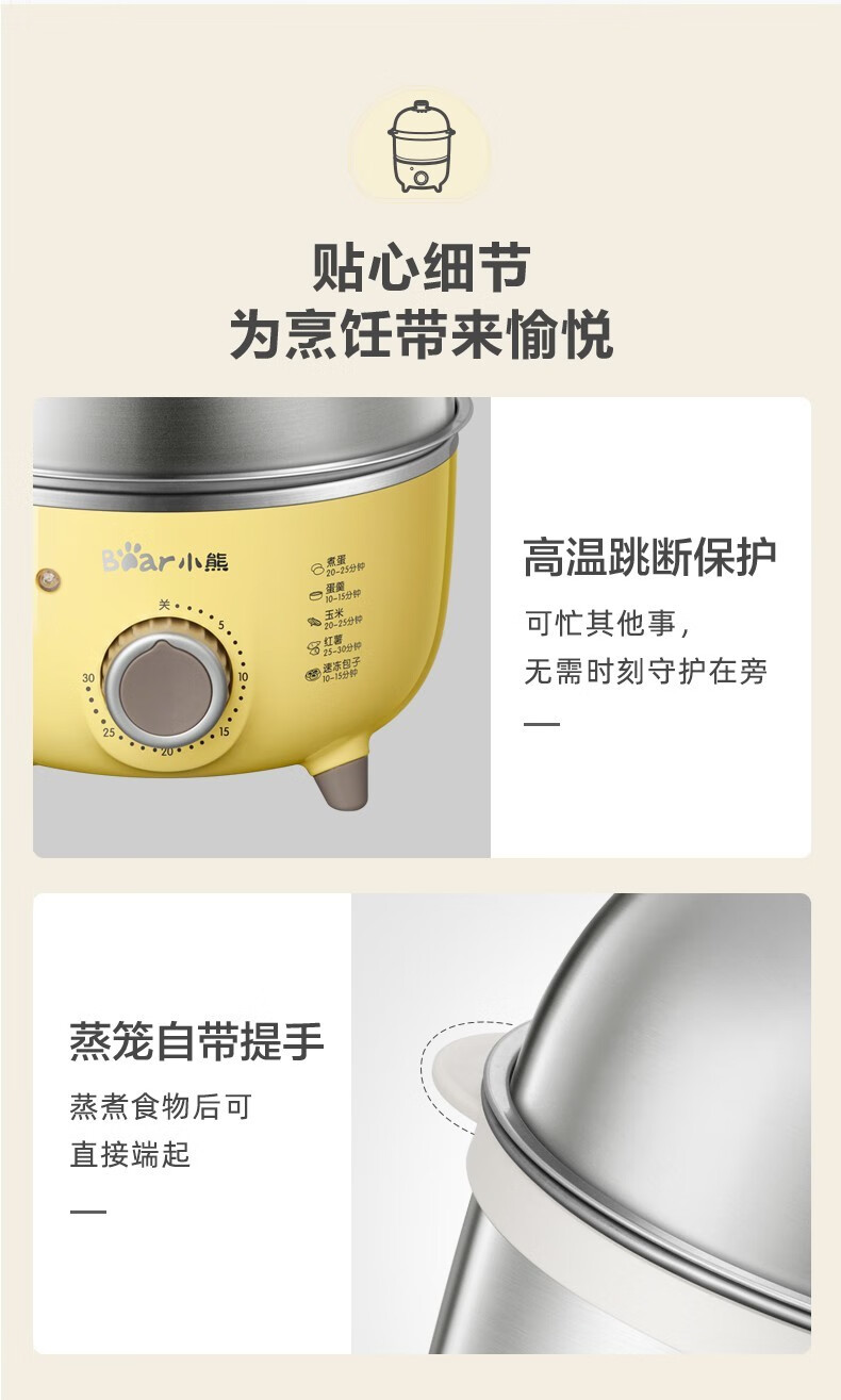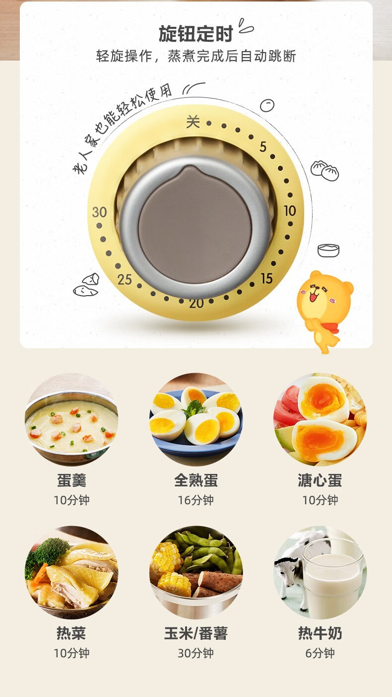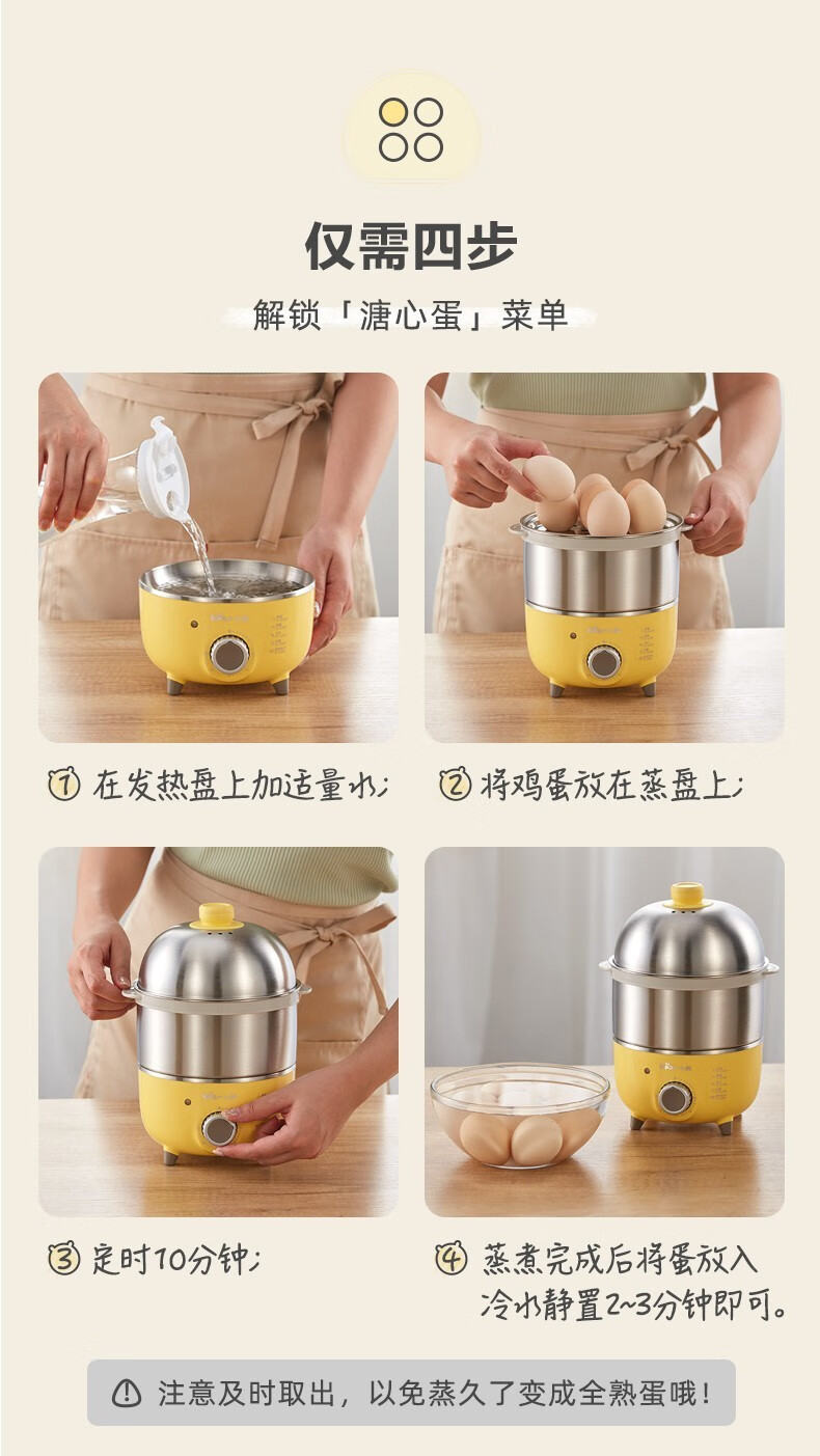小熊(Bear) 双层定时煮蛋器蒸蛋器迷你煮蛋神器不锈钢早餐煮蛋器 可蒸14个蛋 ZDQ-2153 304不锈钢机身+30分钟定时 自营