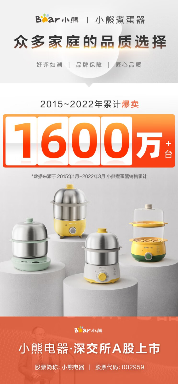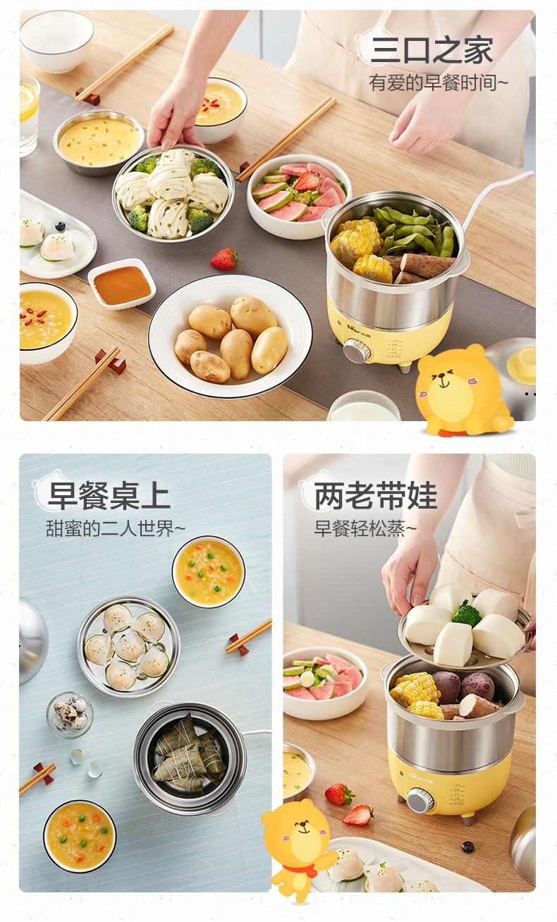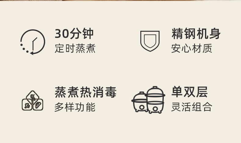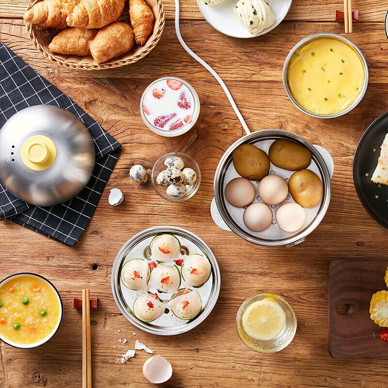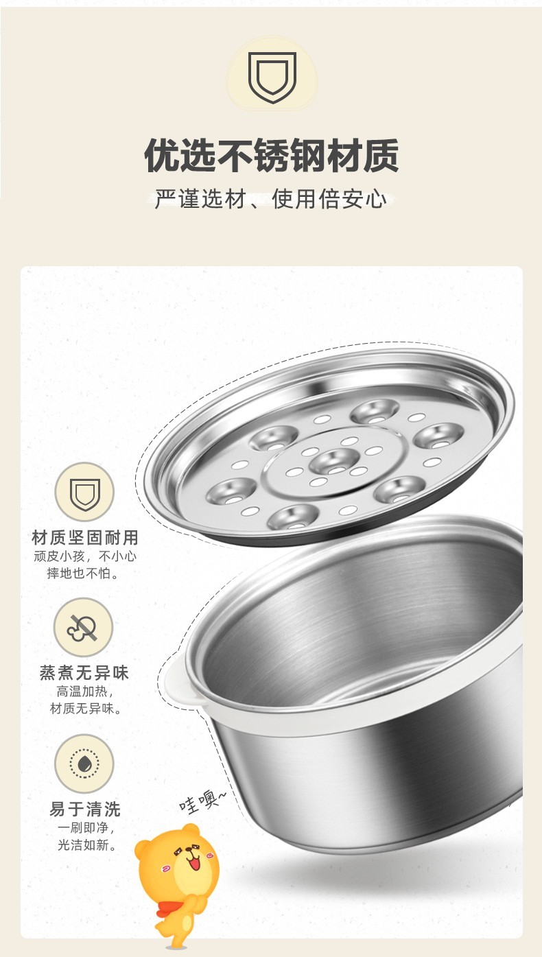 小熊(Bear) 双层定时煮蛋器蒸蛋器迷你煮蛋神器不锈钢早餐煮蛋器 可蒸14个蛋 ZDQ-2153 304不锈钢机身+30分钟定时 自营