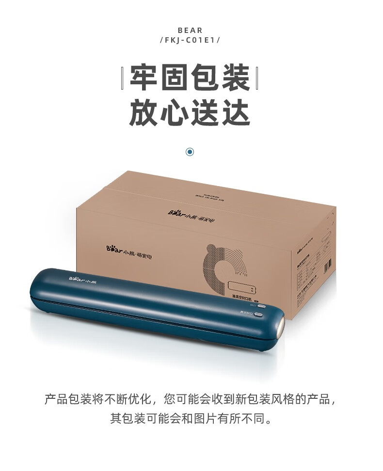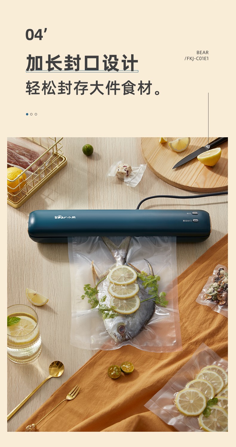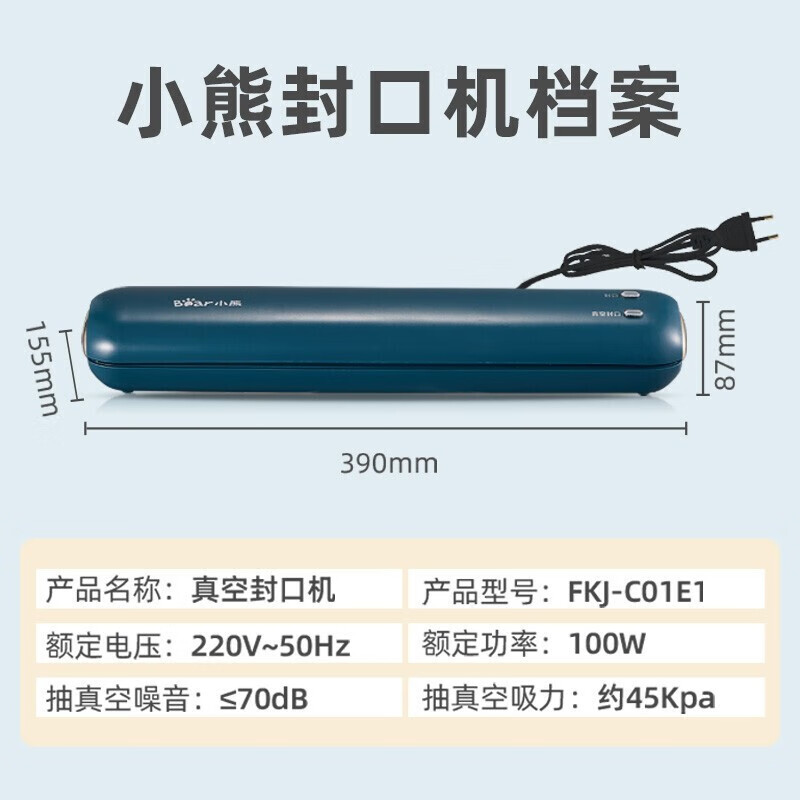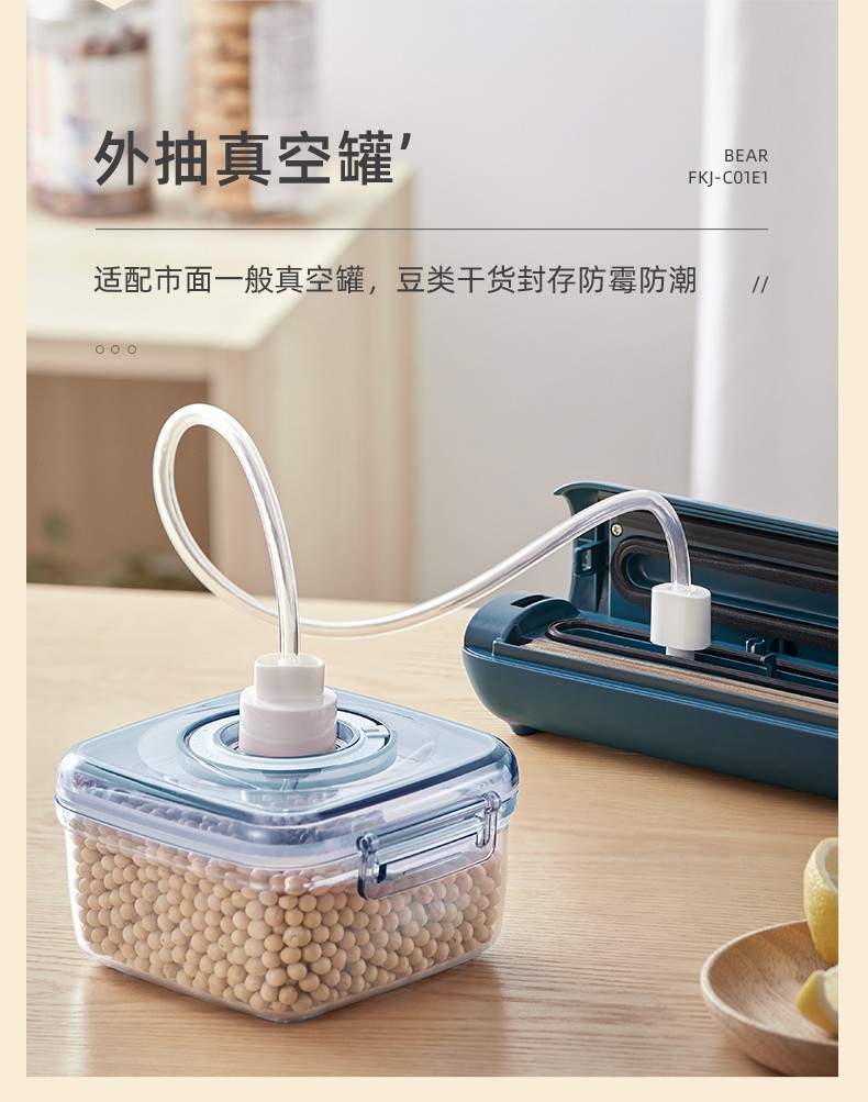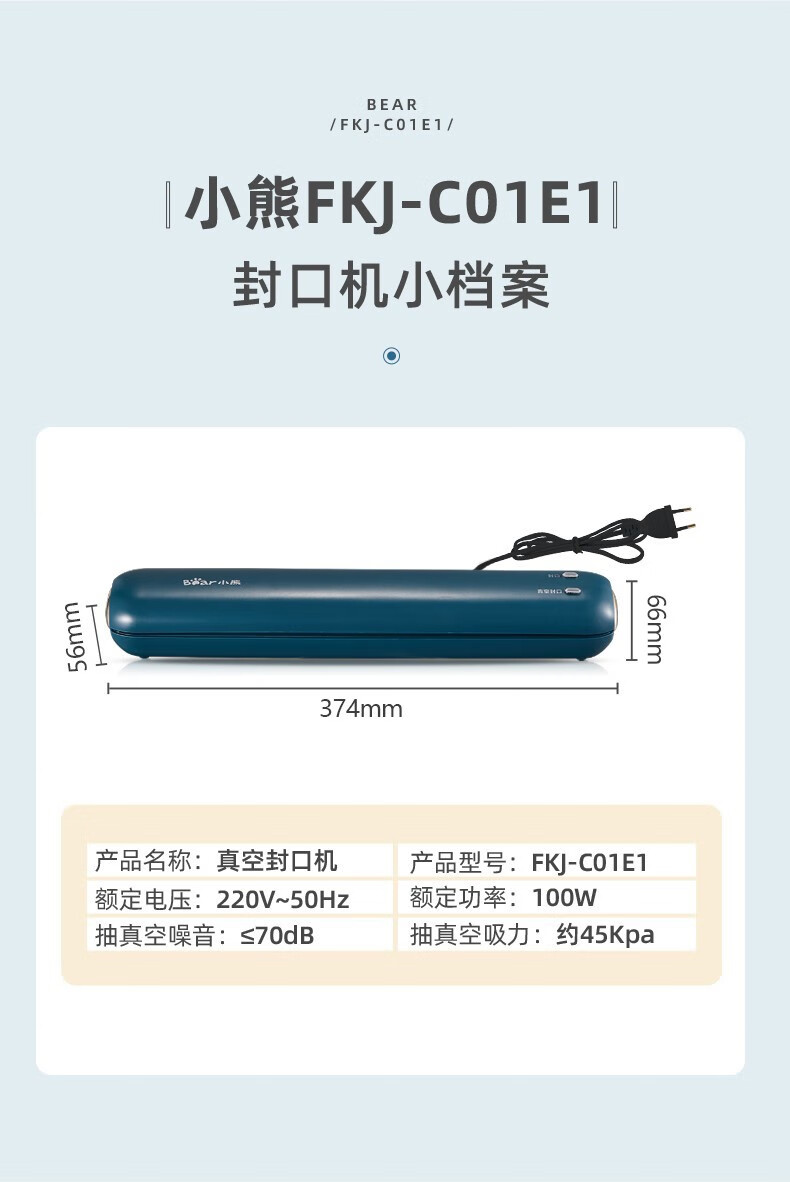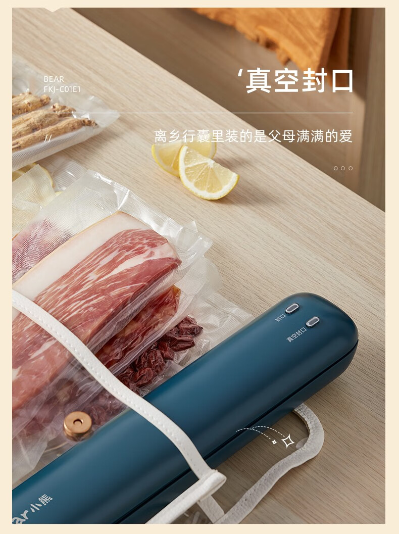 小熊(Bear)封口机 真空包装机 食品真空包装袋家用全自动抽真空塑封机保鲜包装机FKJ-C01E1 加长封口条+配抽真空管(不配保鲜盒)+配2个保鲜袋 自营