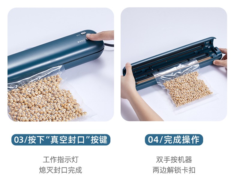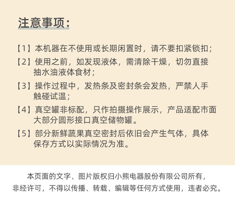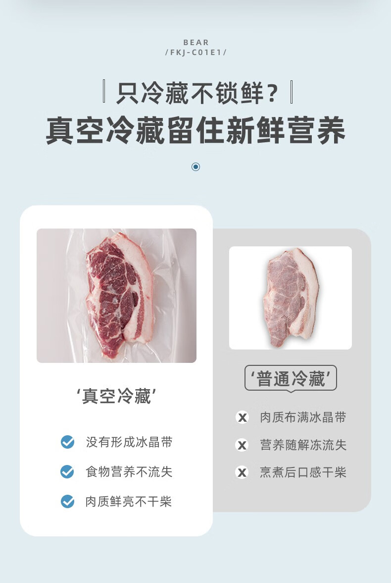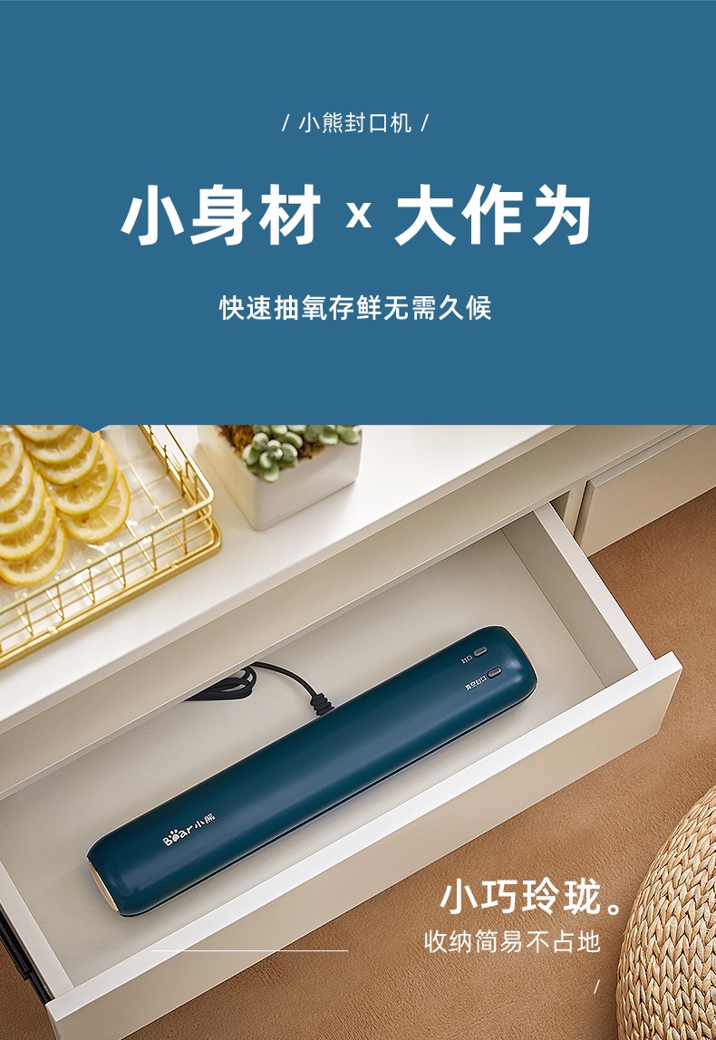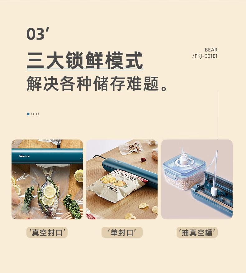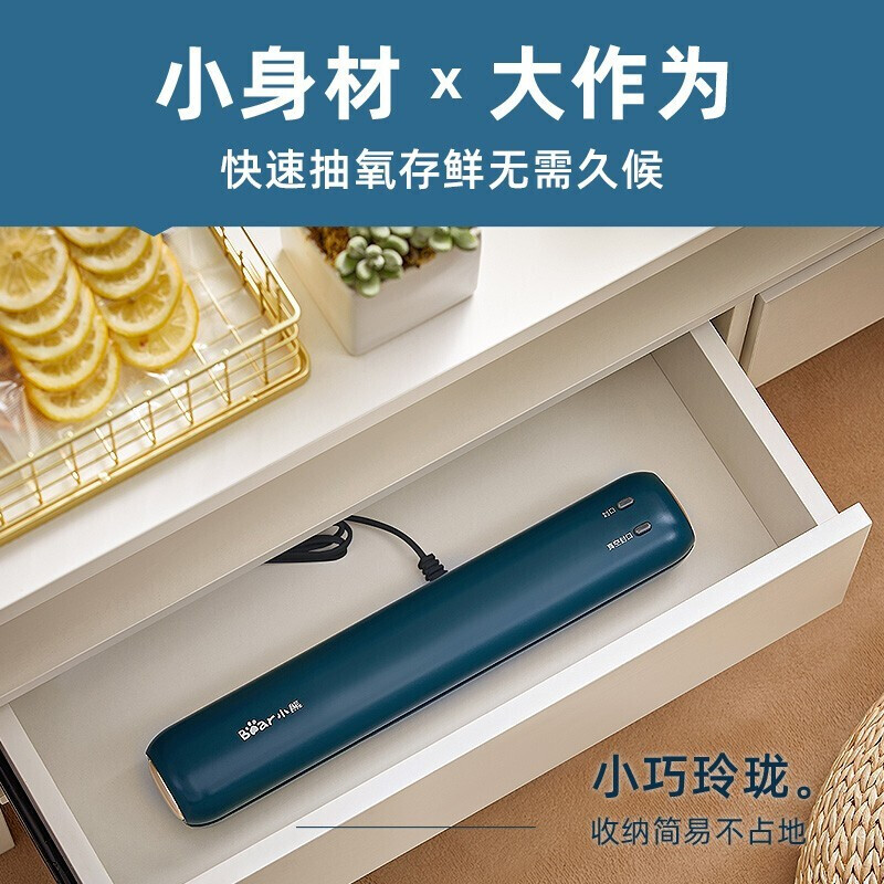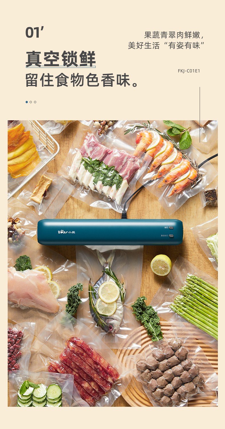 小熊(Bear)封口机 真空包装机 食品真空包装袋家用全自动抽真空塑封机保鲜包装机FKJ-C01E1 加长封口条+配抽真空管(不配保鲜盒)+配2个保鲜袋 自营